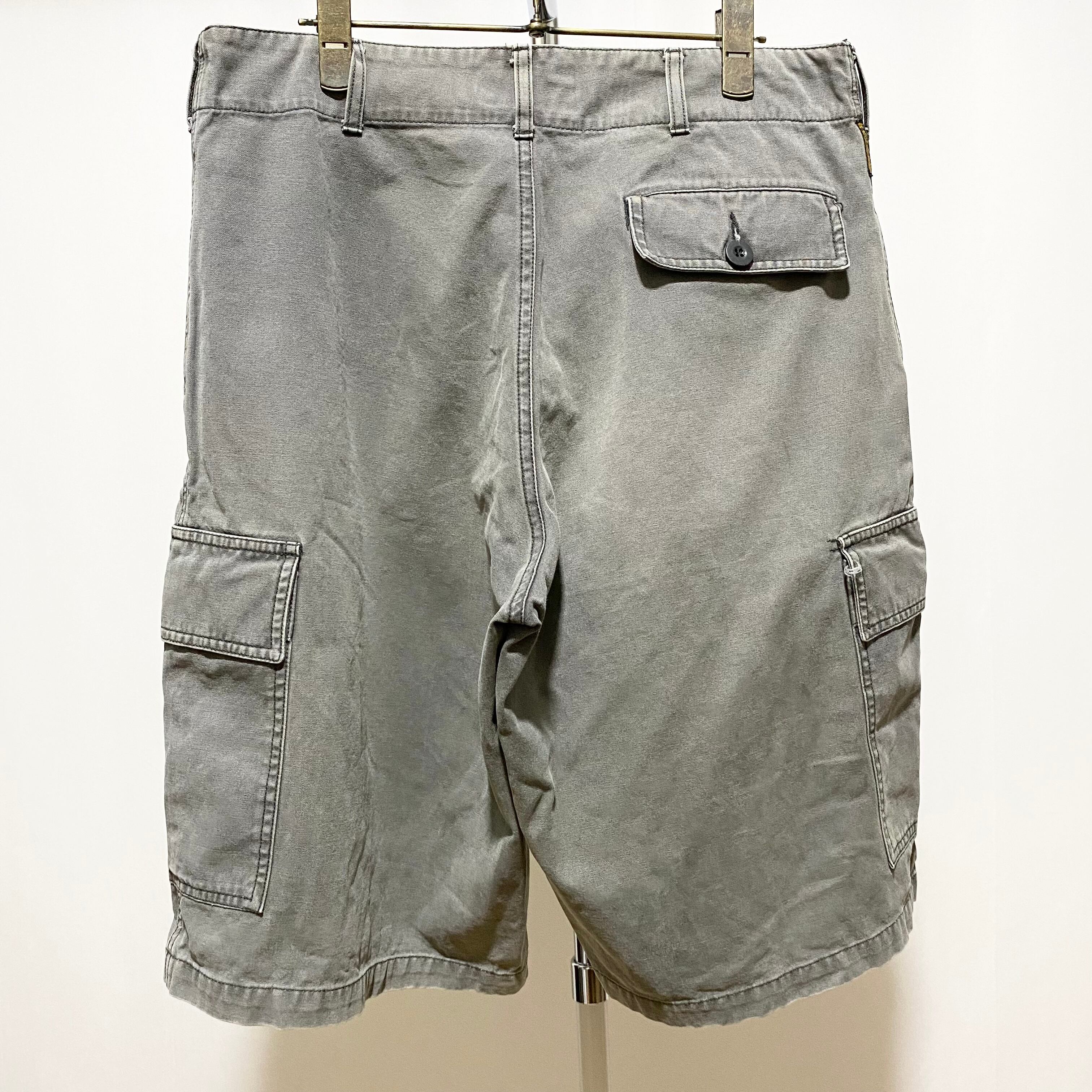 普通のカーゴショーツに見えてややユーロワークの匂いがするアルマーニジーンズ。フェード感がたまらない色落ち色褪せが最高◎ バギーなシルエットですがどこか品の良い感じも◎
