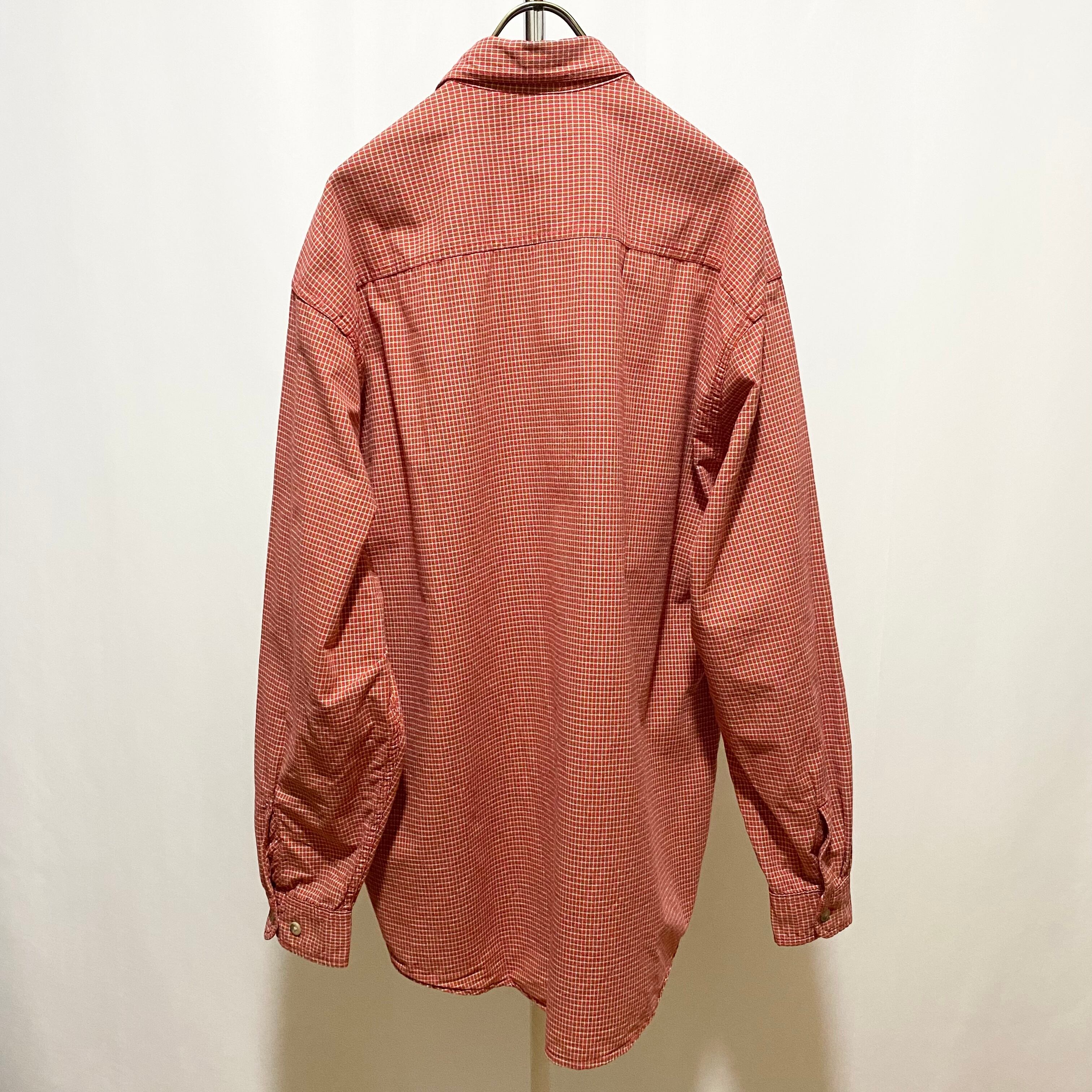 赤ベースですが色々な色のバランスで朱色やオレンジ系にも見えなくもない、実に90年代のアメリカンカジュアルといった印象のシャツが入荷です◎