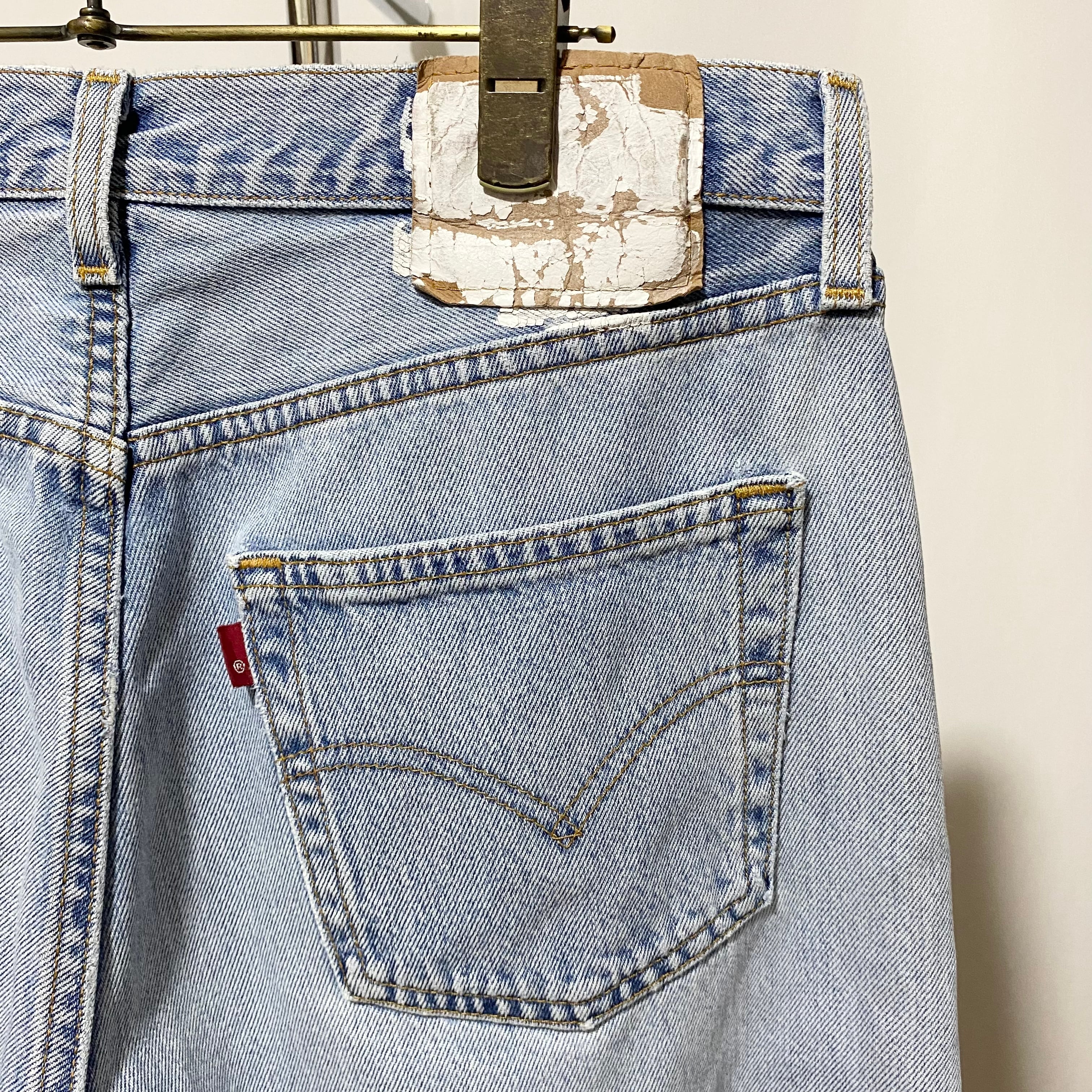 タグが残してあるのでわかりますがベースはウィメンズのアメリカ製リーバイス。90年代物ですね。それを再構築して仕上げた逸品。