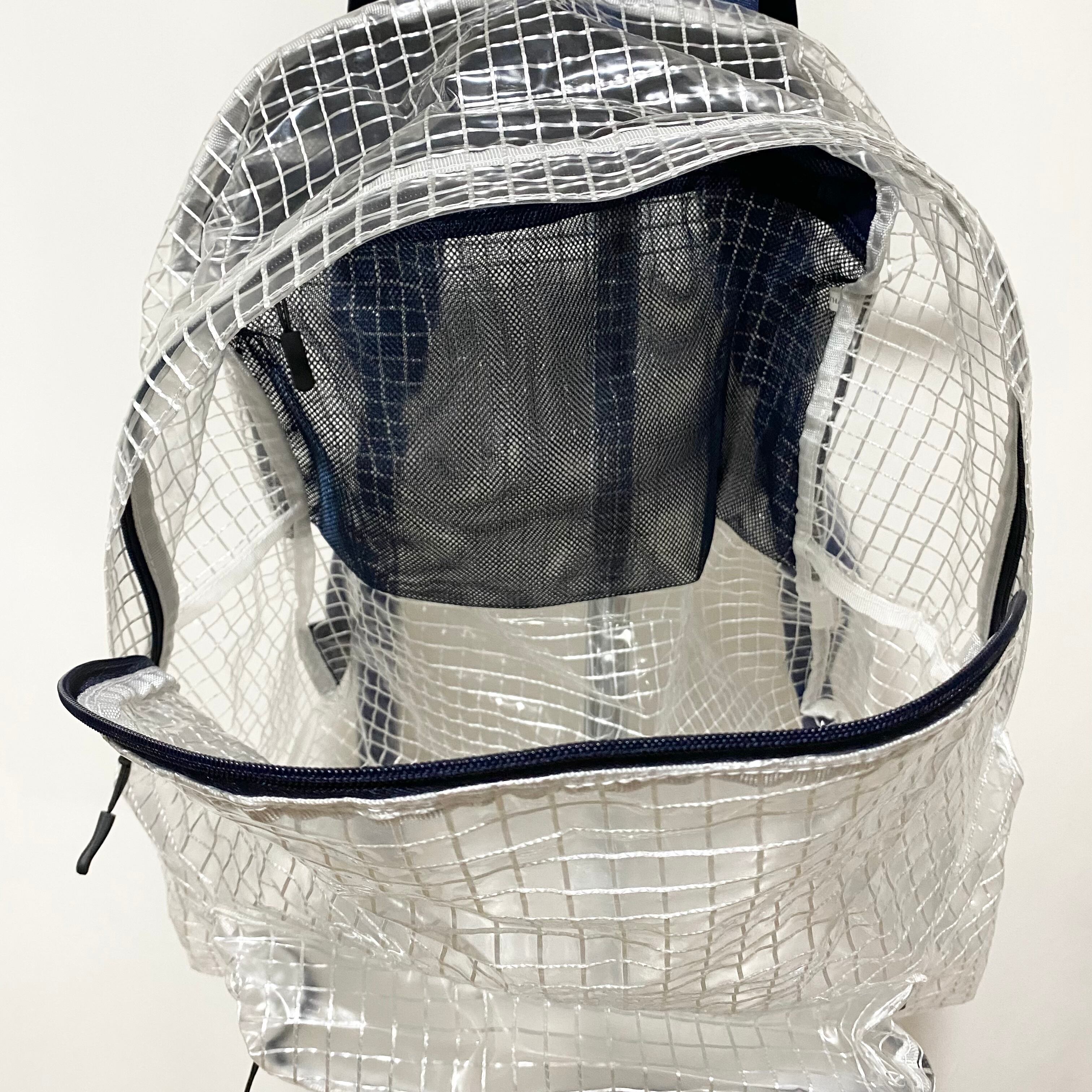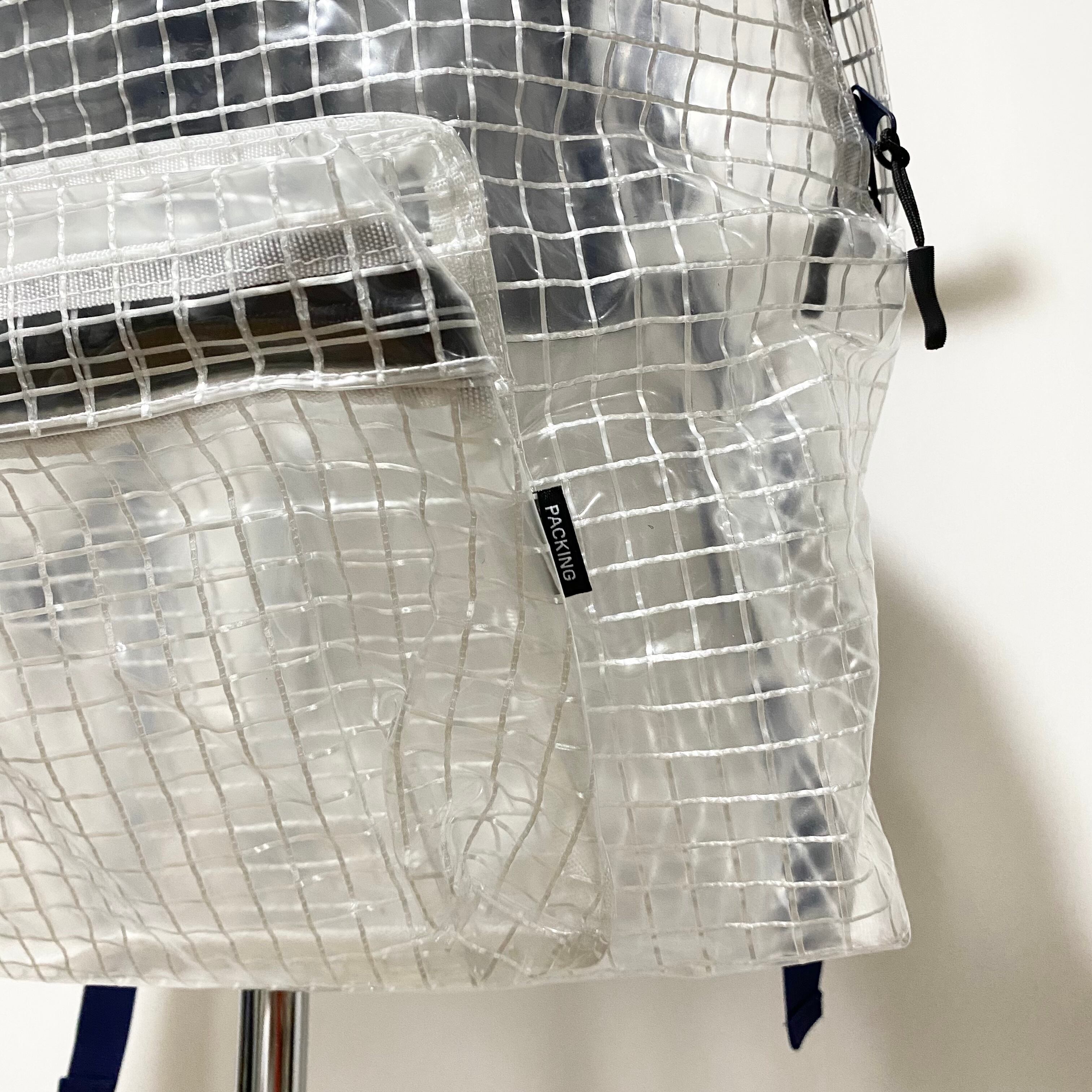 大き目の容量はそのままに、グリッドを入れたクリア素材を大胆に使ったインパクトの高いアイテム◎◎◎