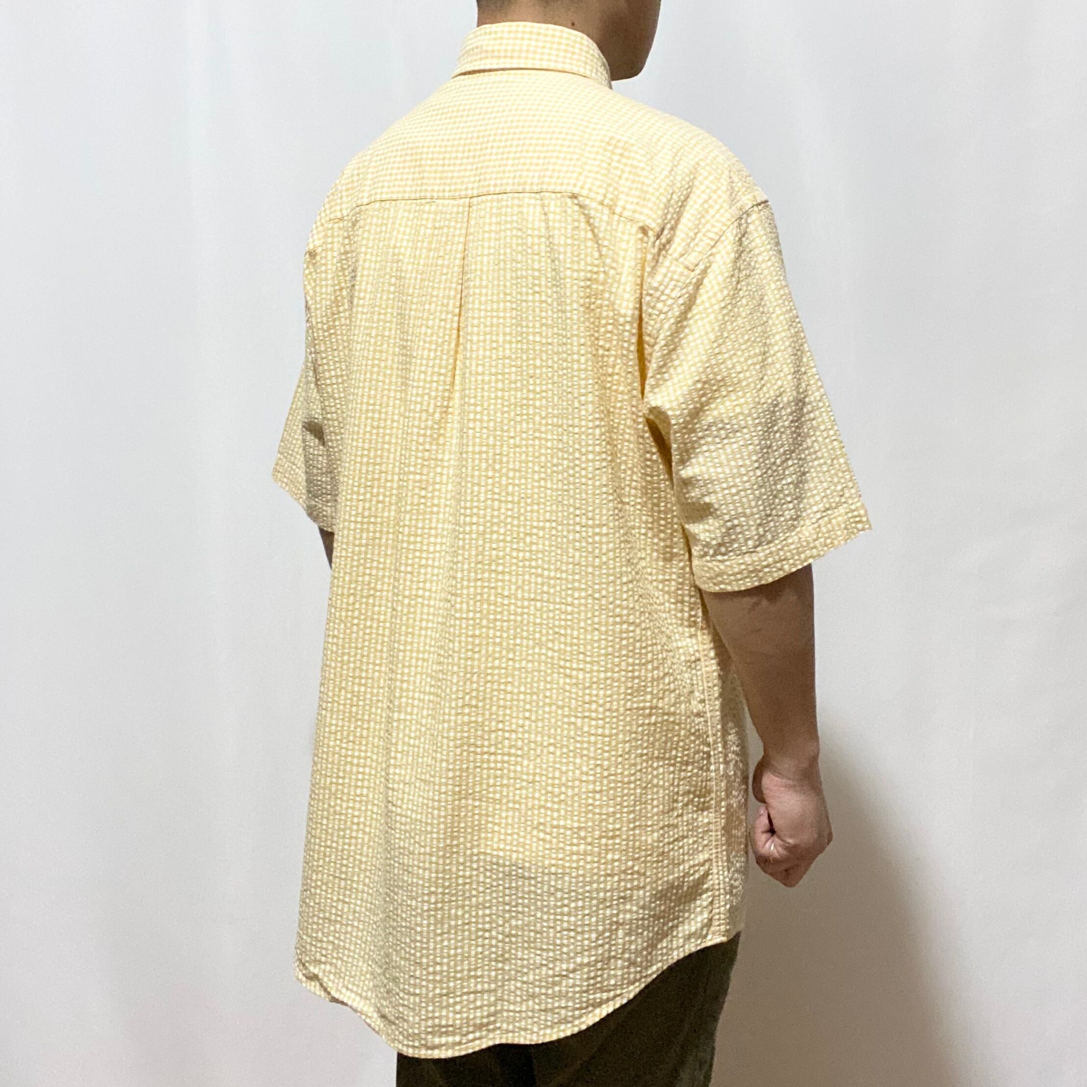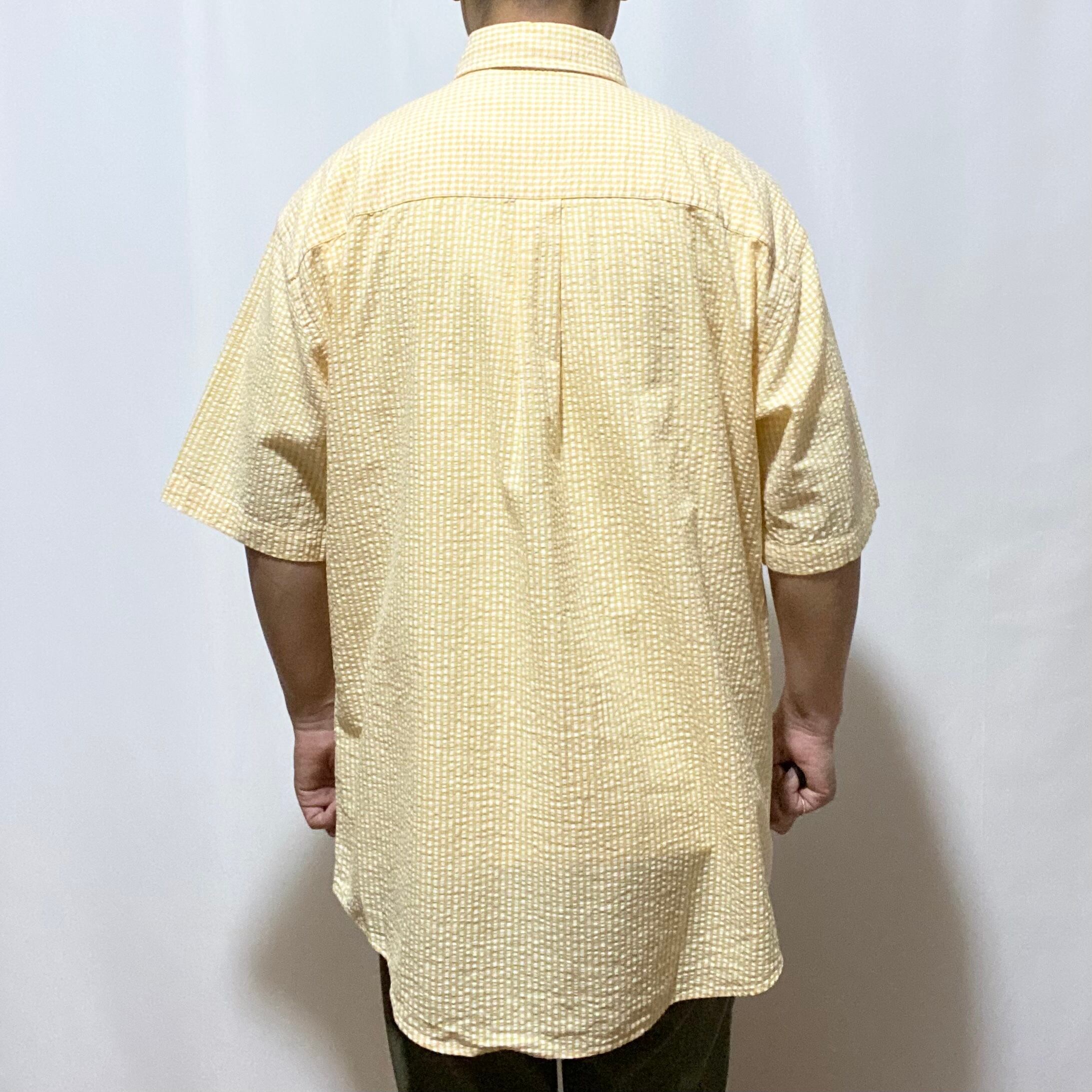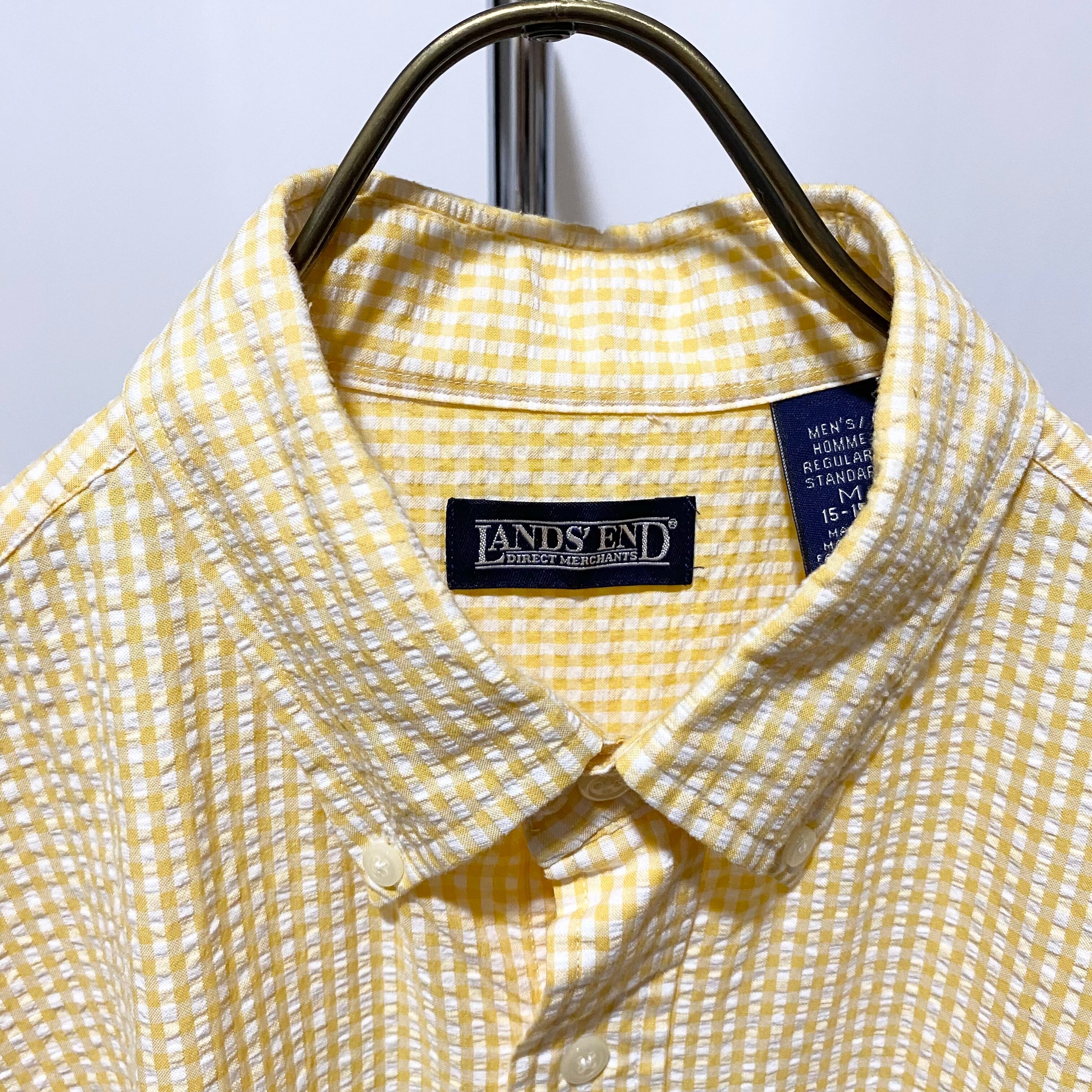 ランズエンドのギンガムチェックのサッカーシャツ。