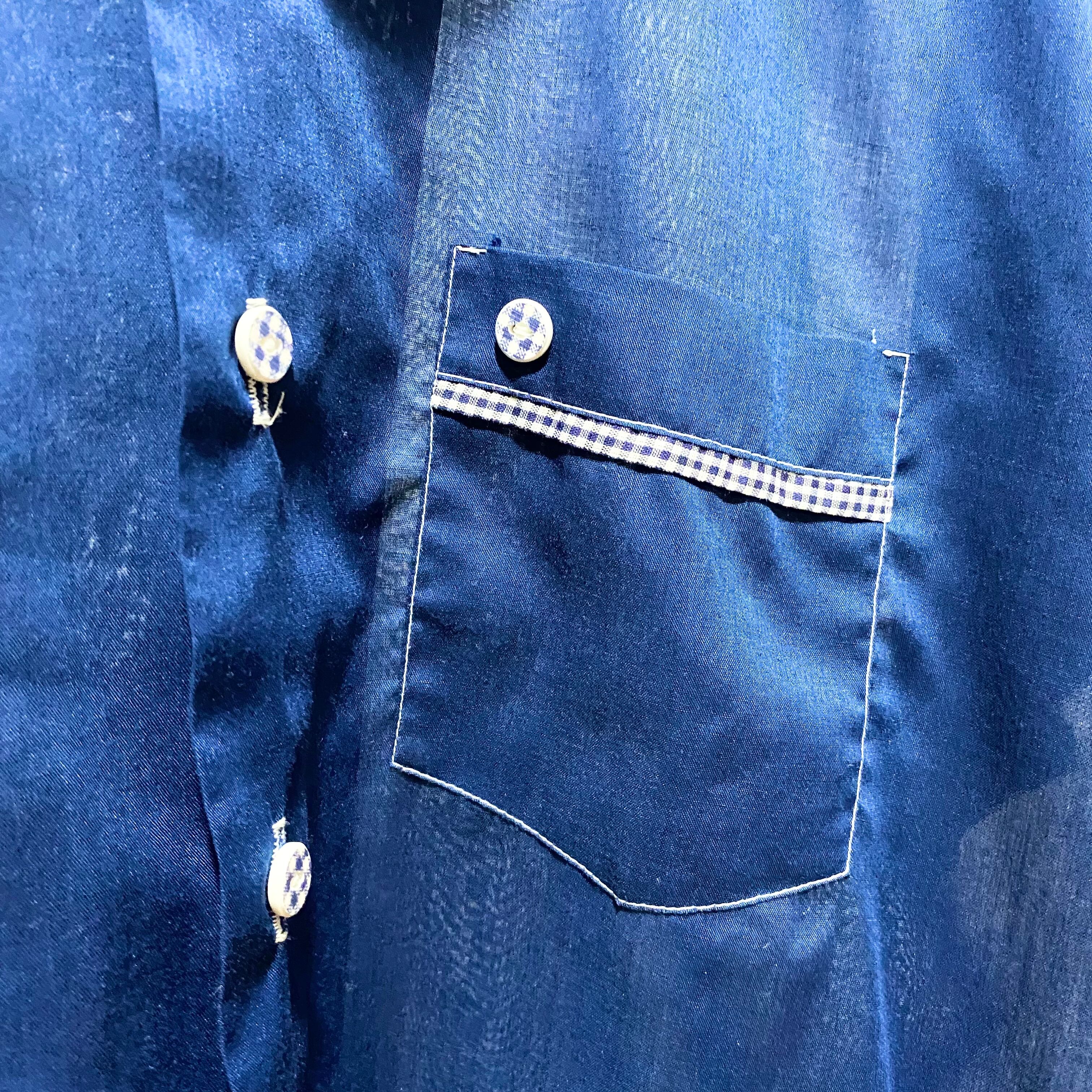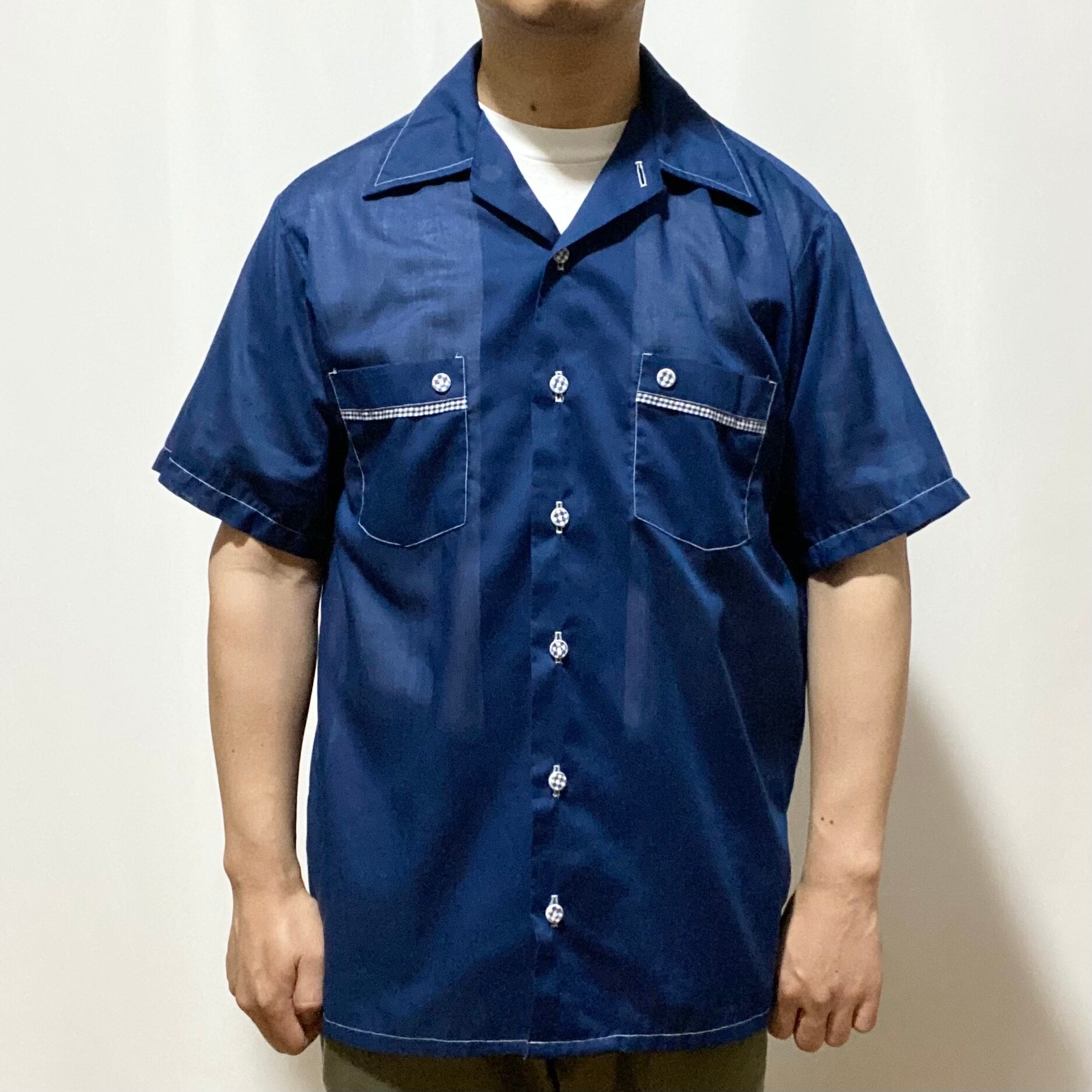 Unknown Vintage Open Collar Shirt Navy 80s 70s