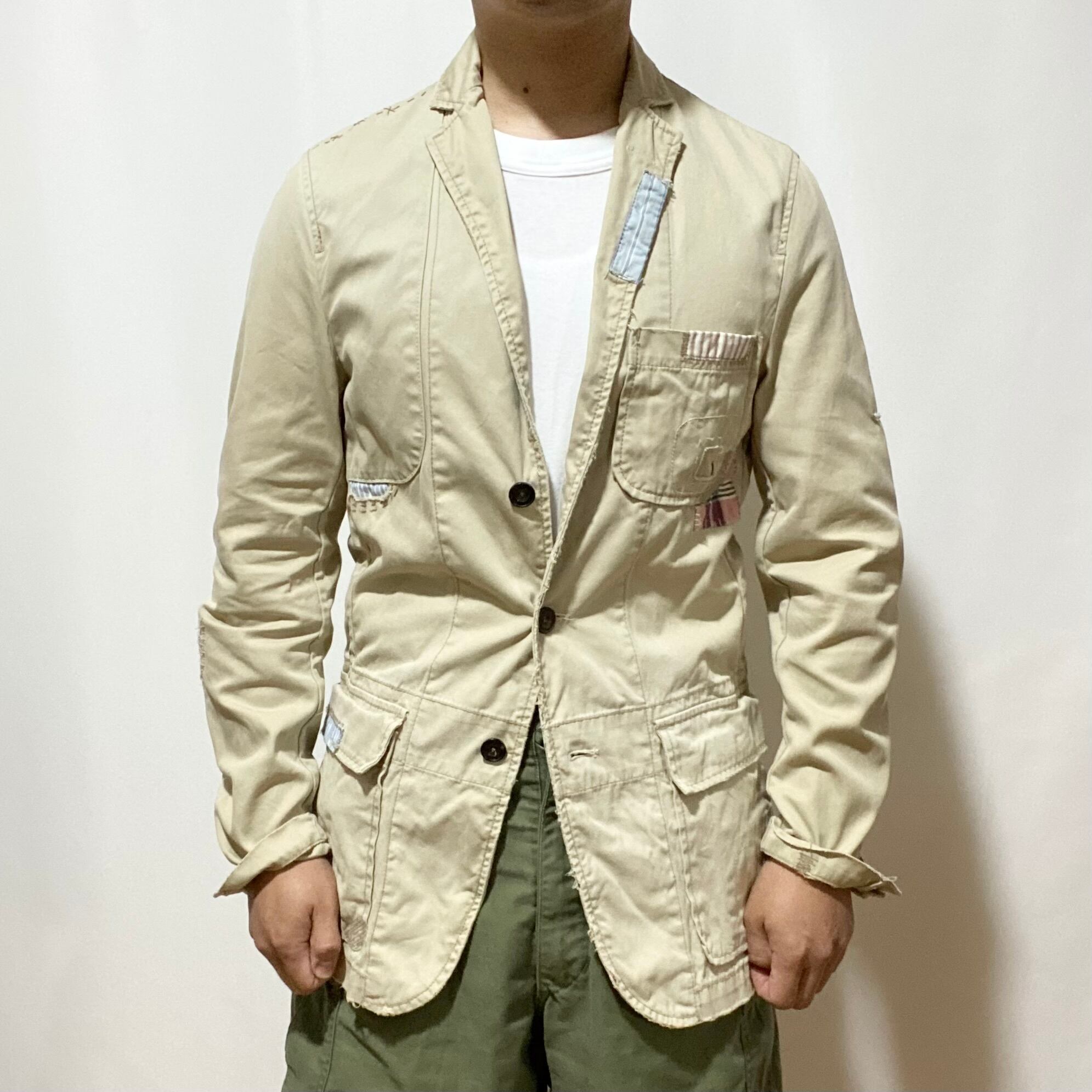 随所に施されたツギハギやパッチワーク、ハンドステッチにただ破いて塞いだだけのようなリアルな加工、総じて最高な逸品です◎◎◎