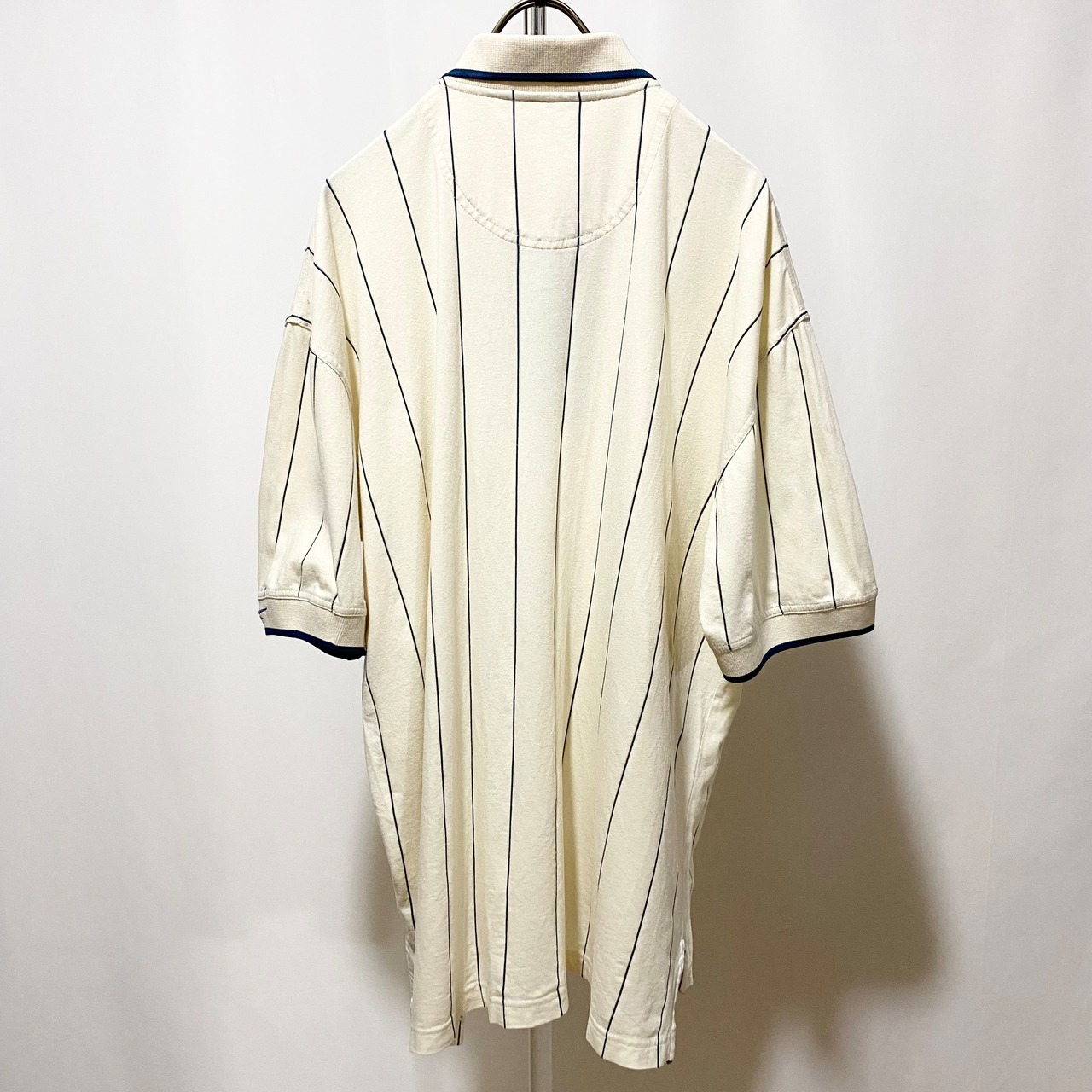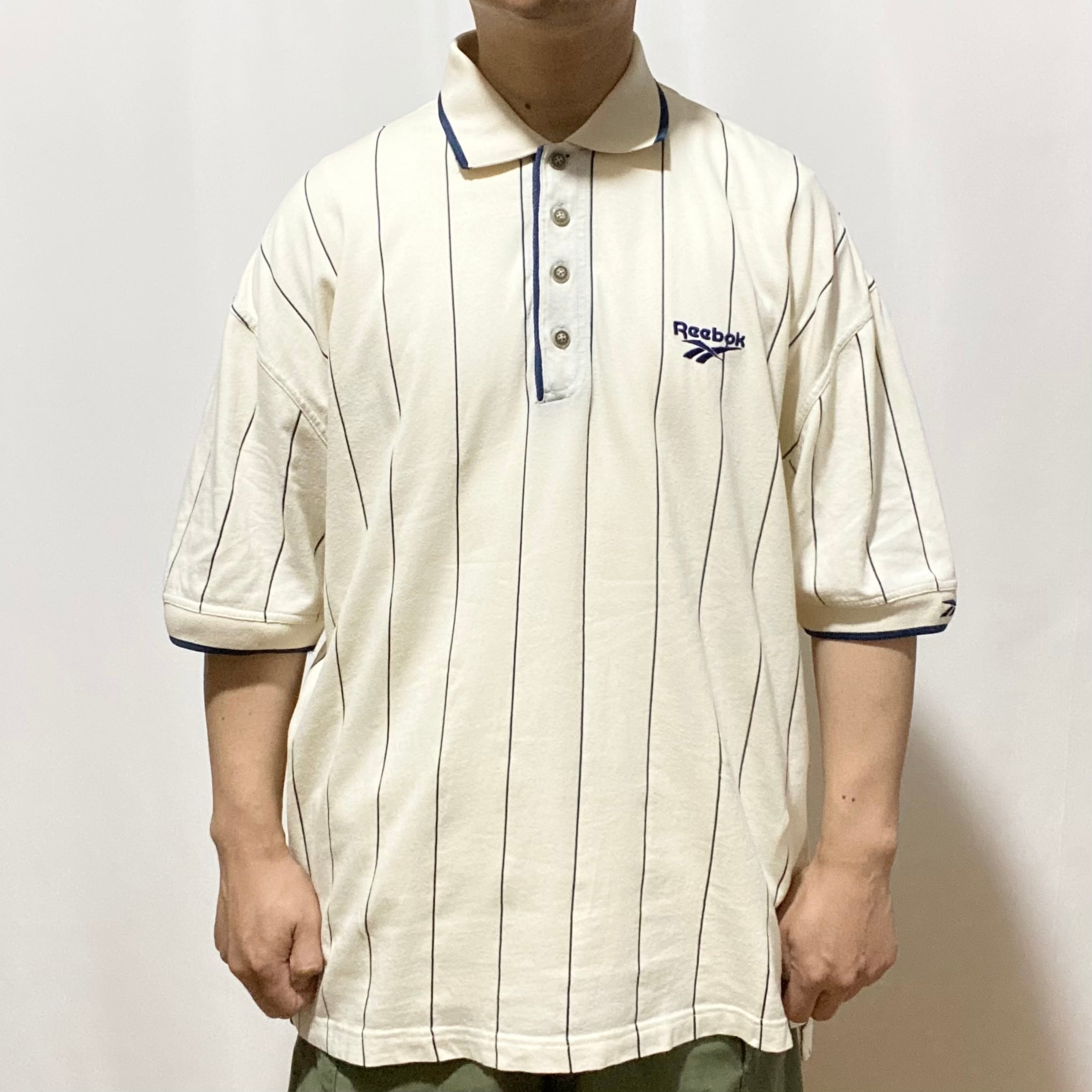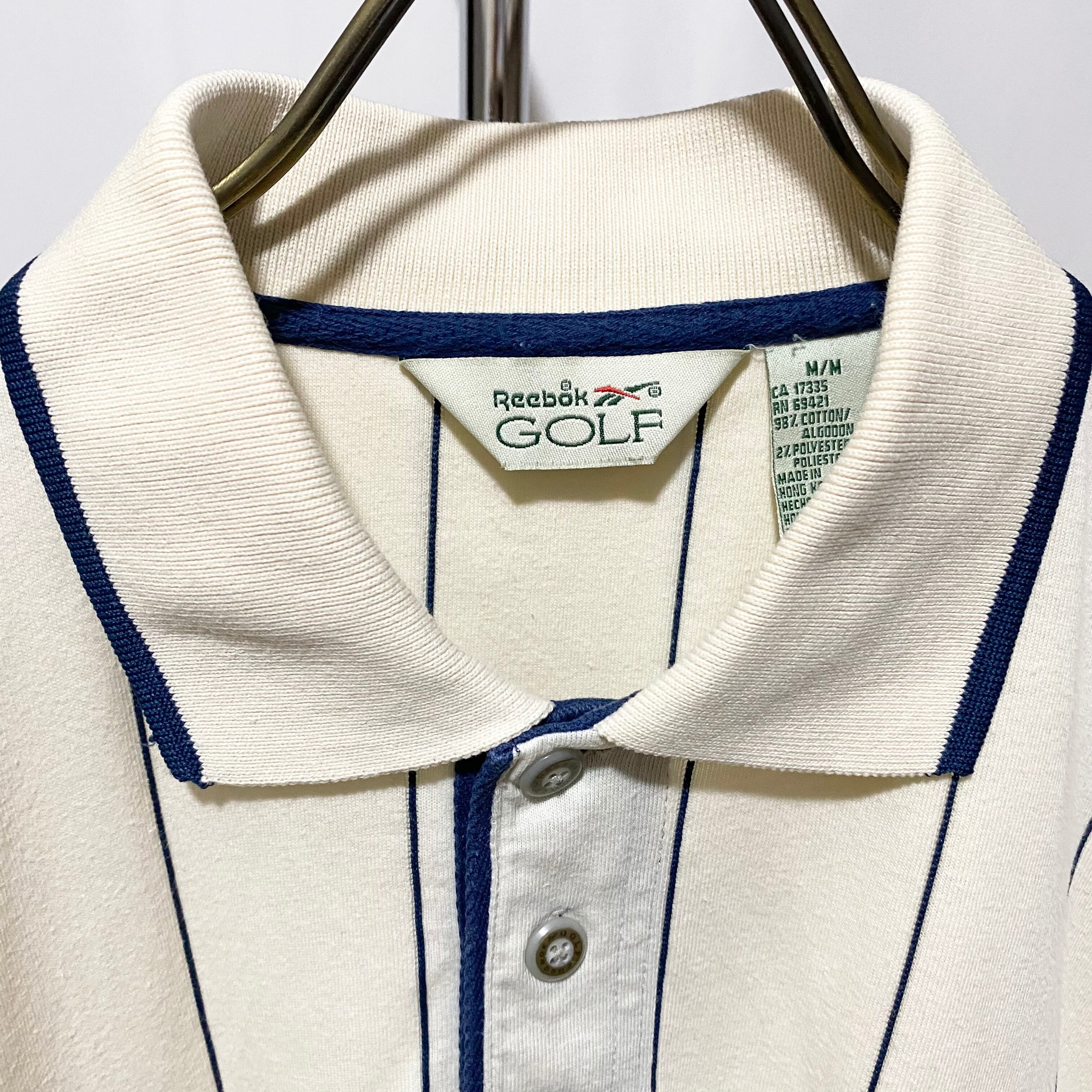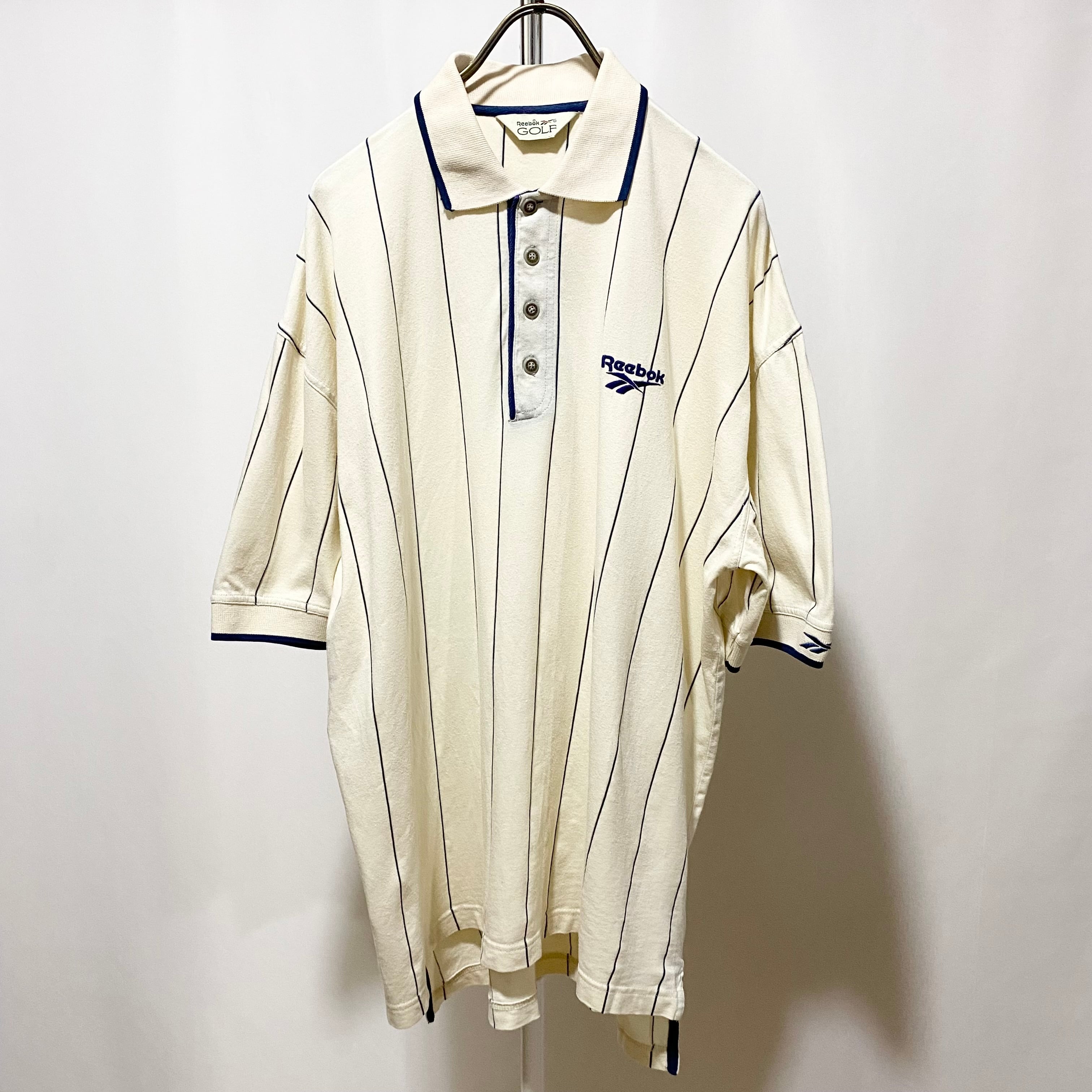 Reebok Golf Stripe Big Polo Shirt S/S Off White Navy 90s