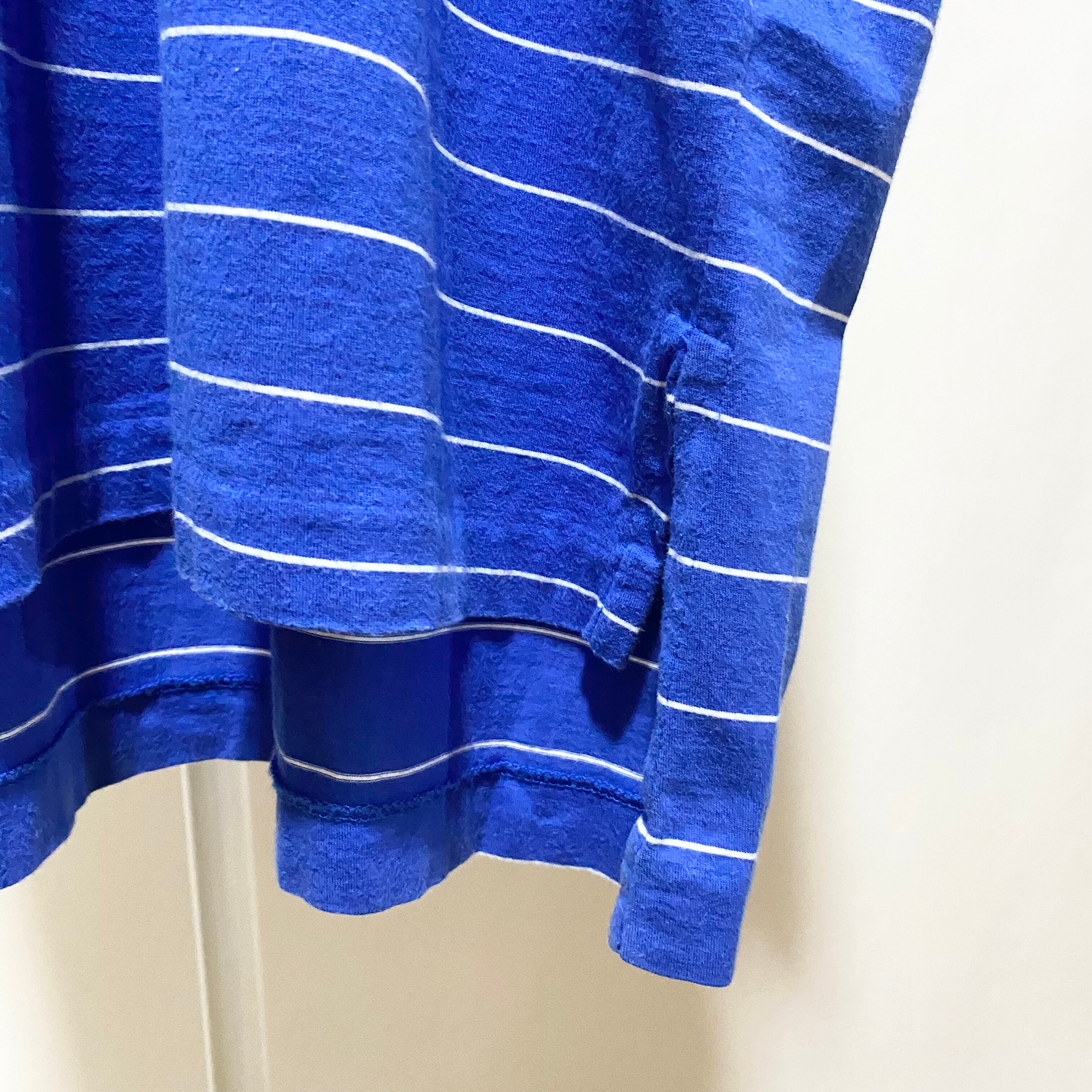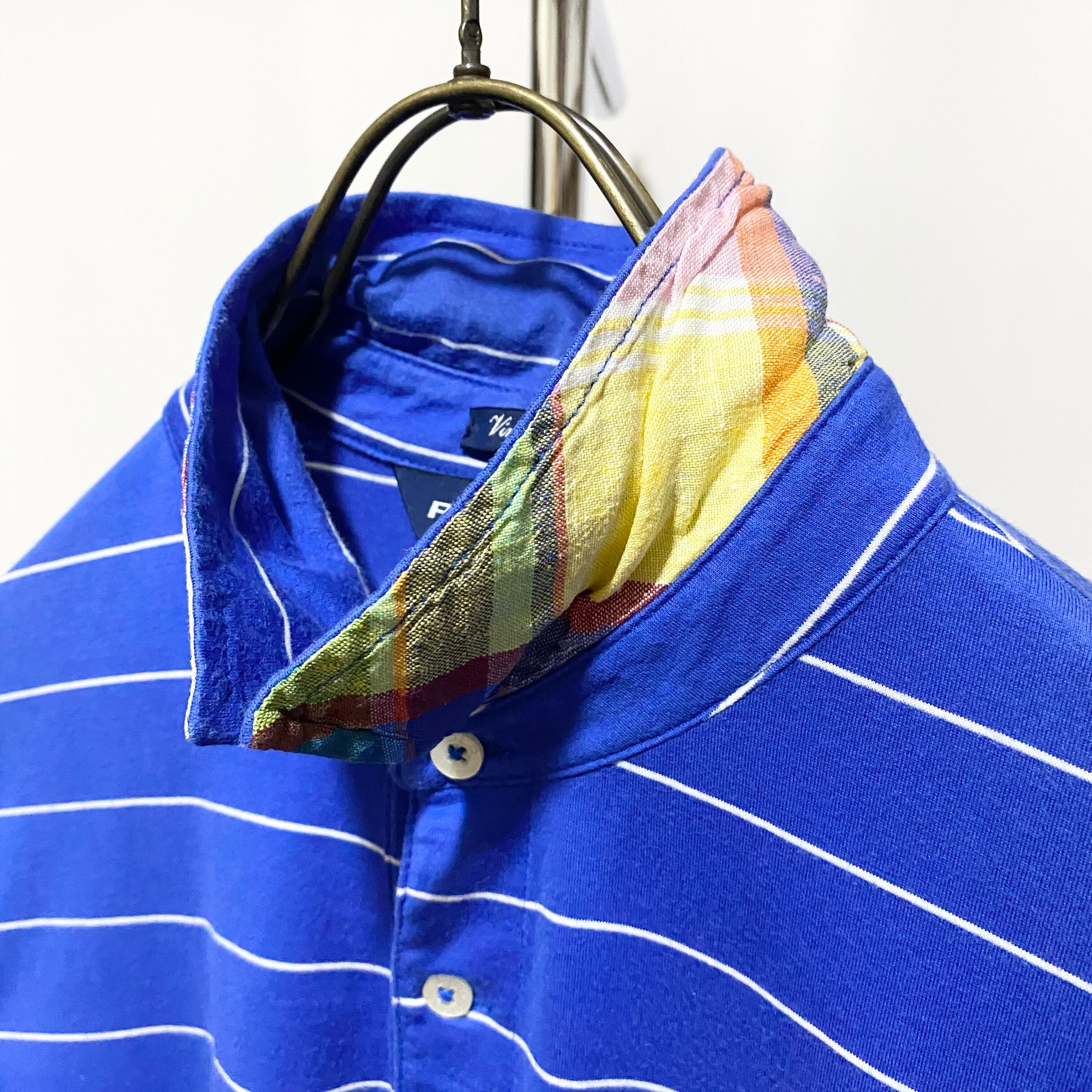 綺麗なブルーに細いピッチのボーダー、ロゴなど入らないアイテムですが襟裏にマドラスチェックのリネン生地が当ててあって見えないとこへのこだわりが◎◎◎