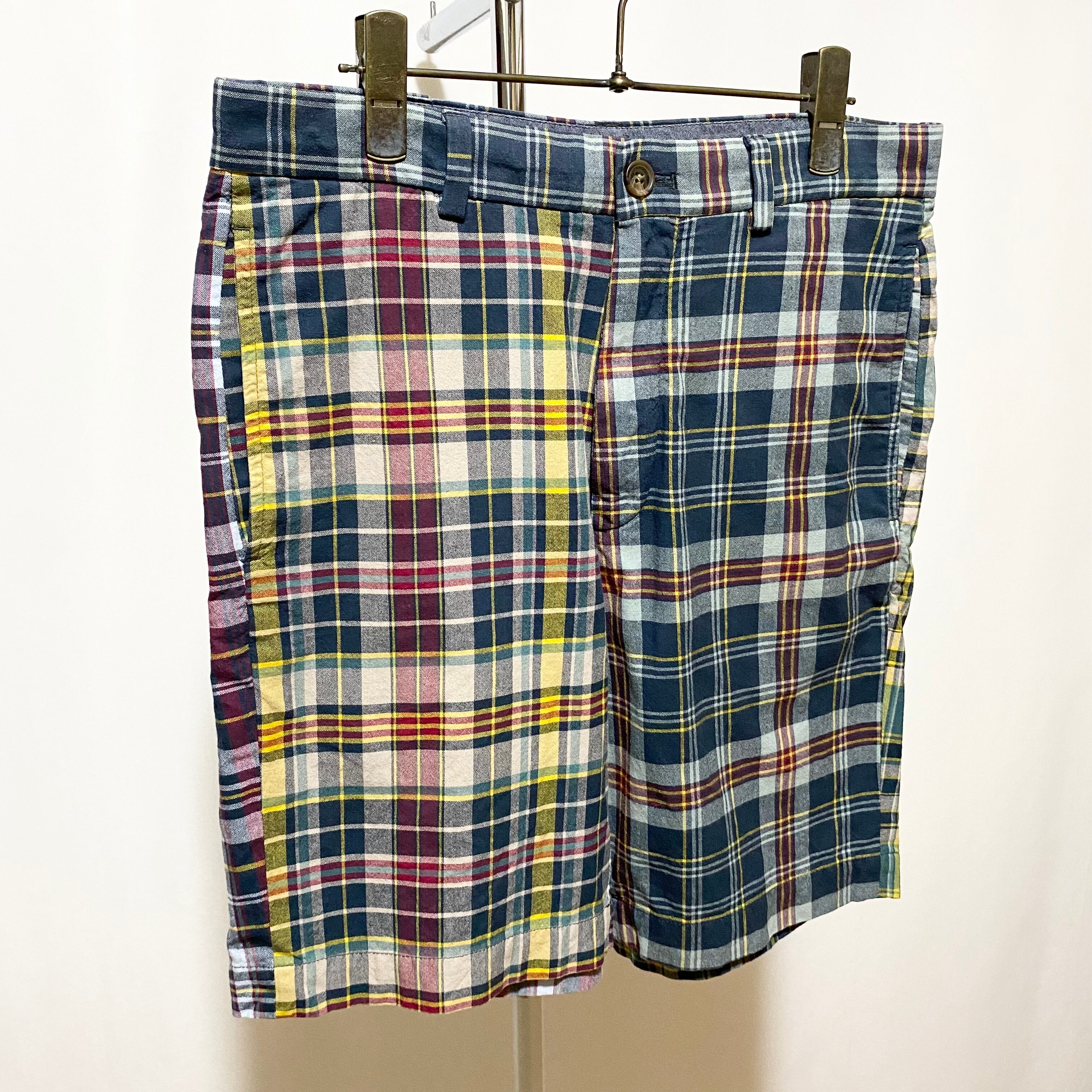 一見普通のショーツに見えて前身後身の計4パターンが全て違うチェックで構成されているアイテム。マドラス生地も本格的なインドマドラスだし腰回りの内側もシャンブレー生地を当て込んでいて完璧な仕上がり◎◎◎