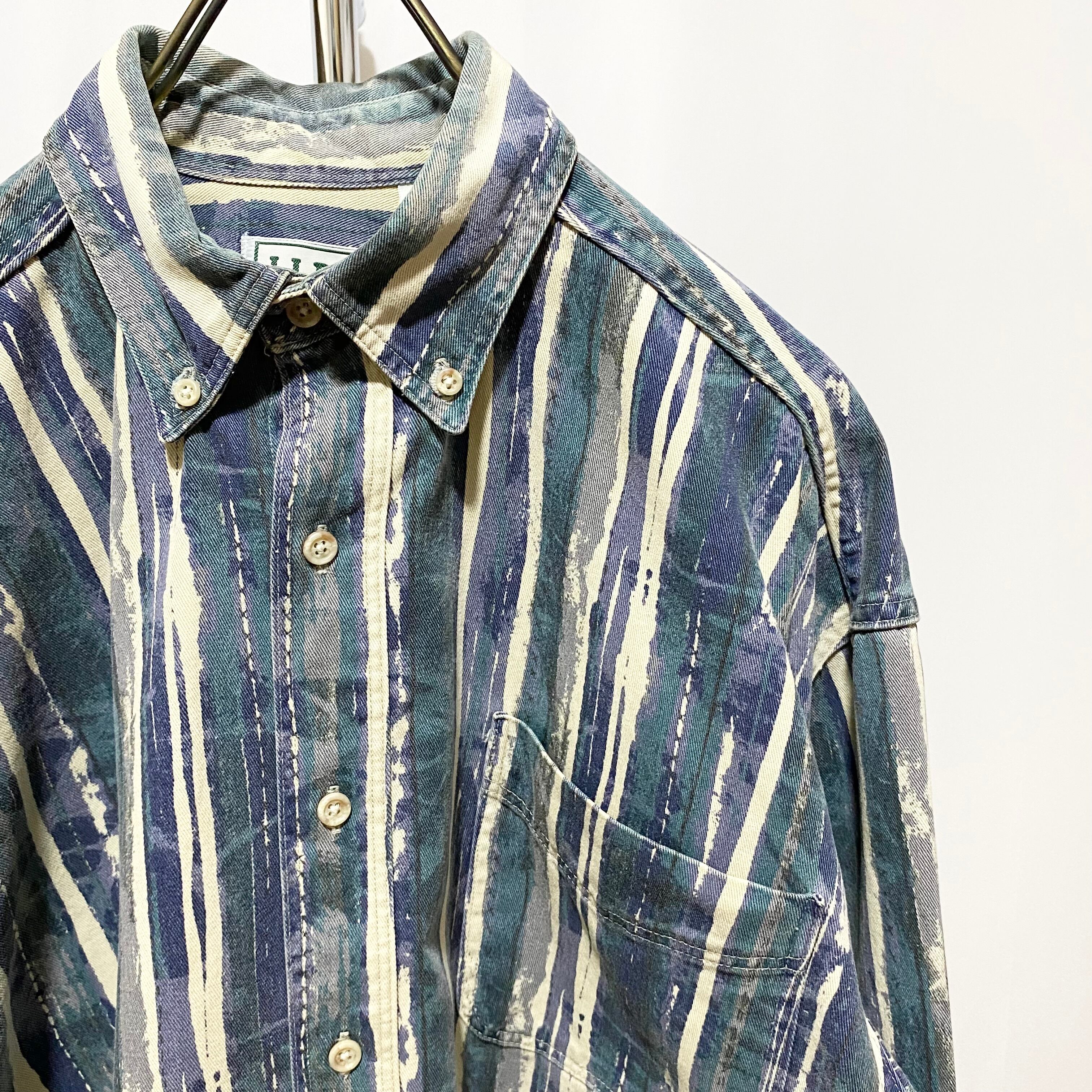 L.L.Bean ”Art Stripe" Chino B.D Shirt Made in USA 90s 80s