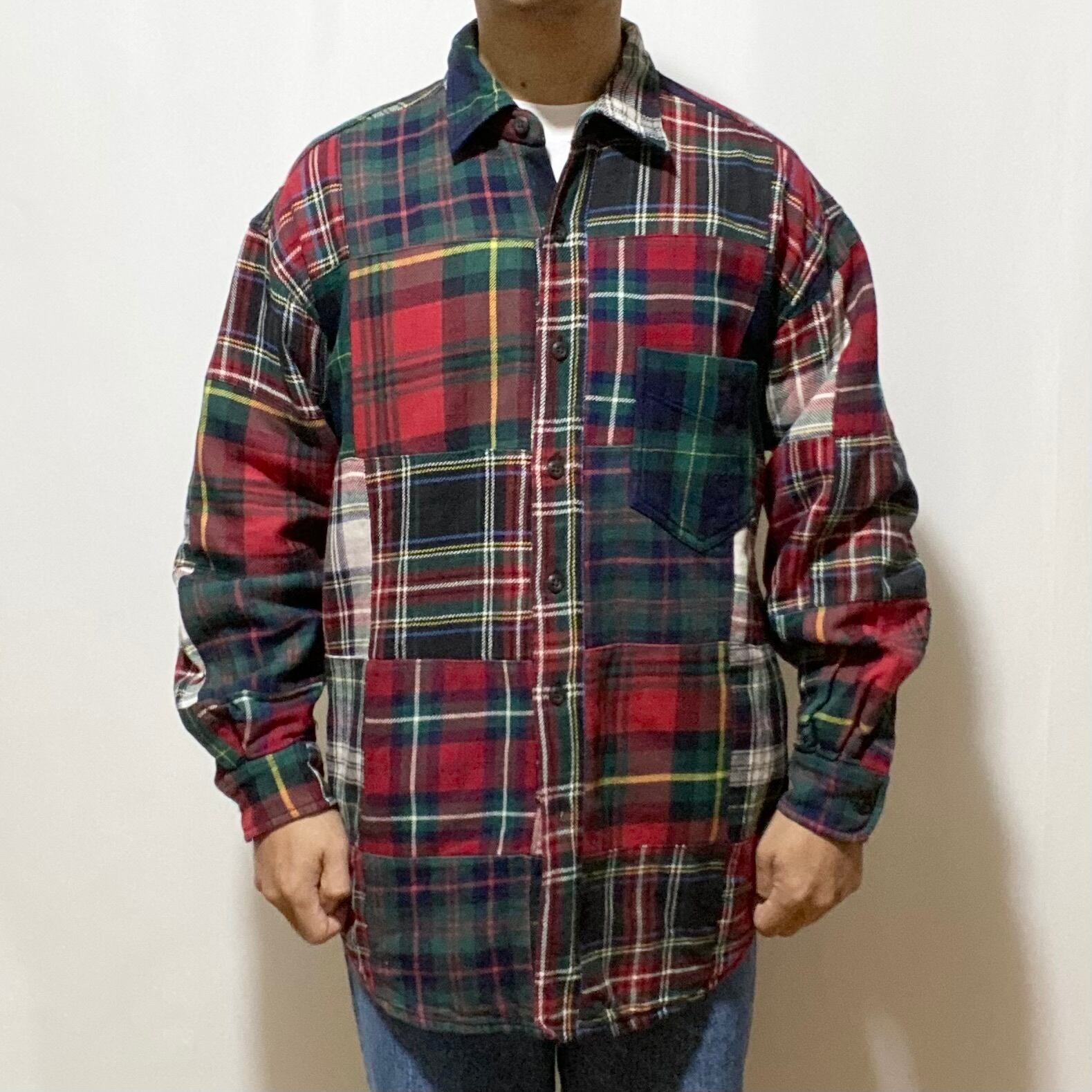 90年代のジェイクルーにおけるトラディショナルとカジュアルが完璧に融合した素晴らしい奴◎◎◎ ジェイクルーのパッチワークネルのシャツジャケットでございます◎◎◎