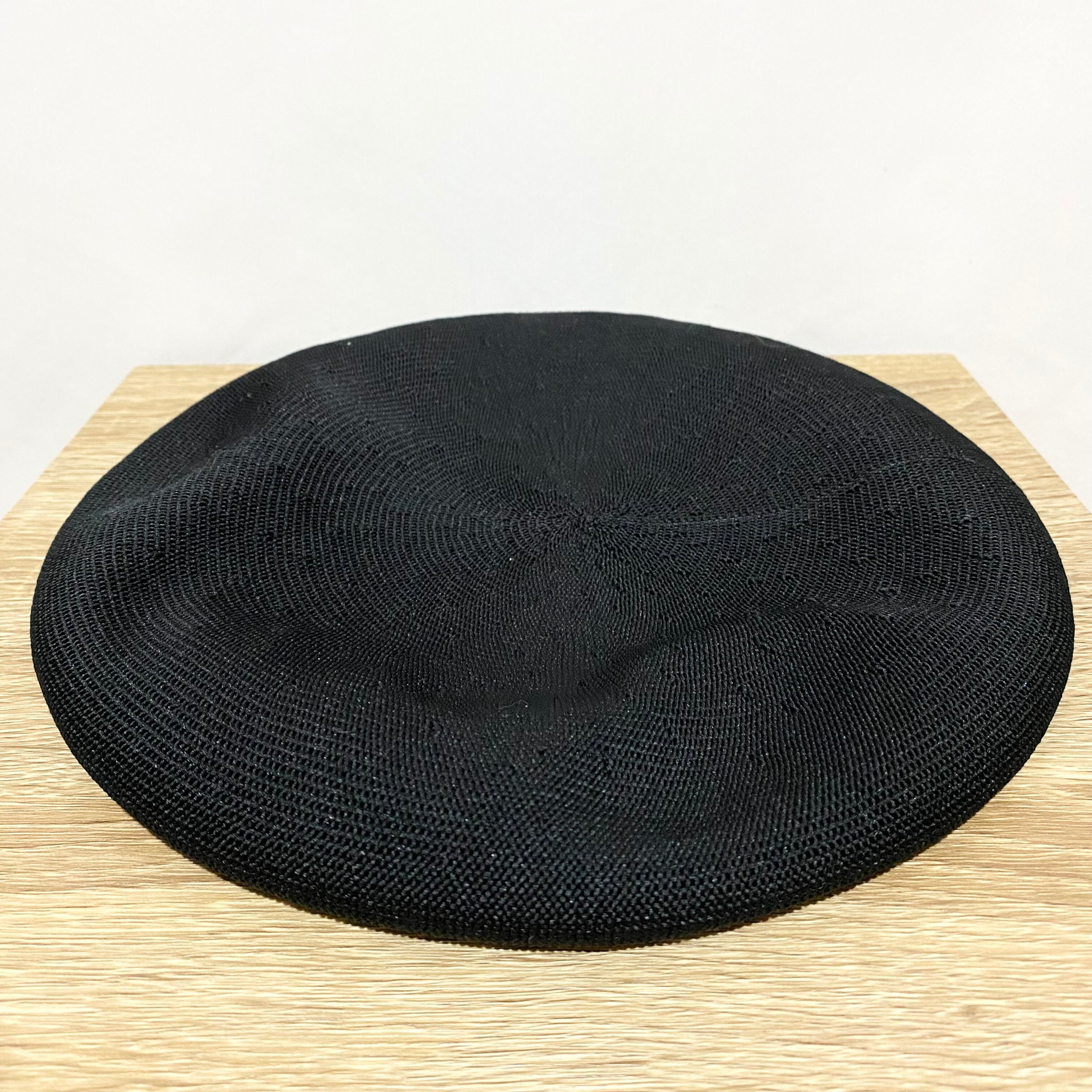 レザー(こちらは合皮)のパイピングに紐を通した王道のベレー。色は間違いないブラック◎◎◎