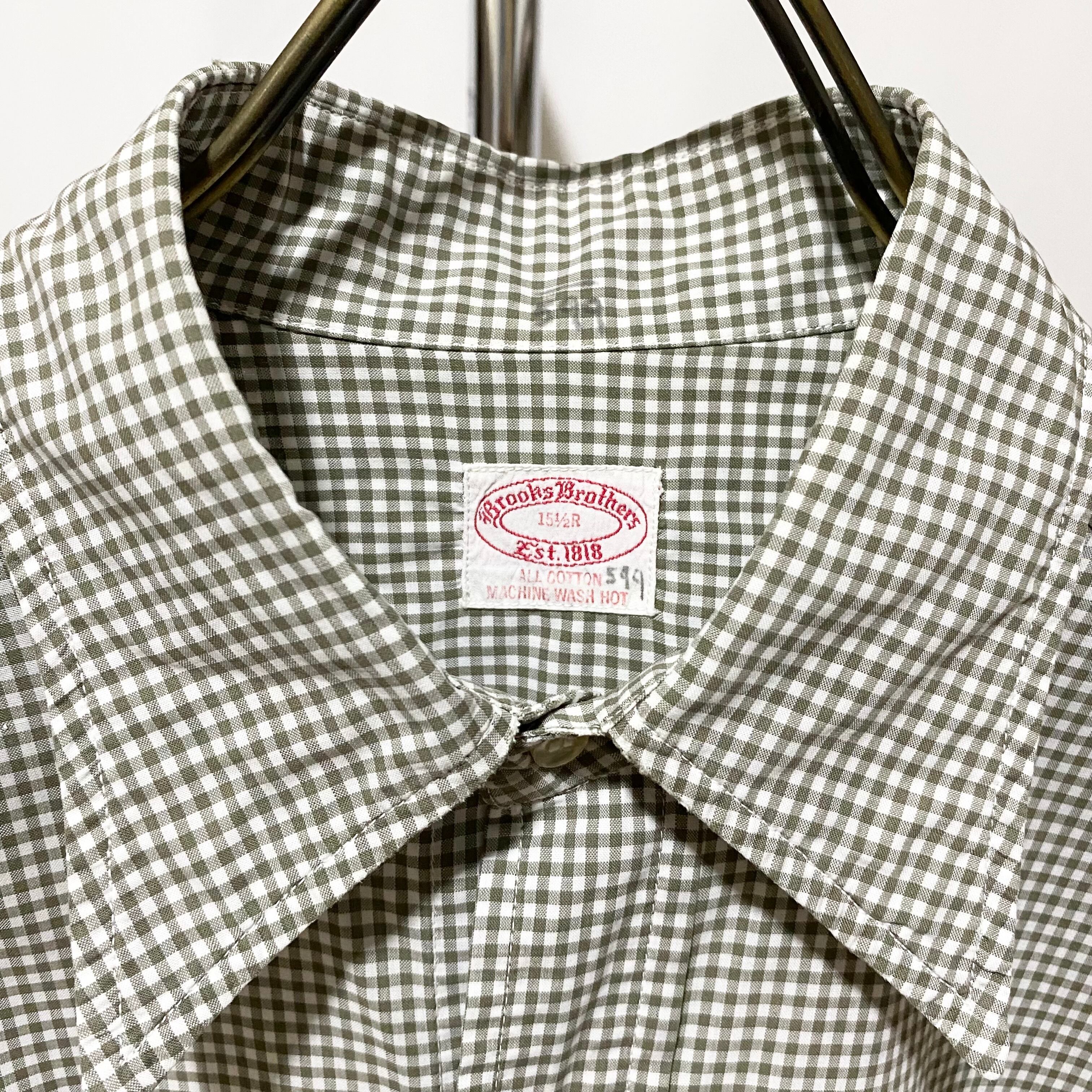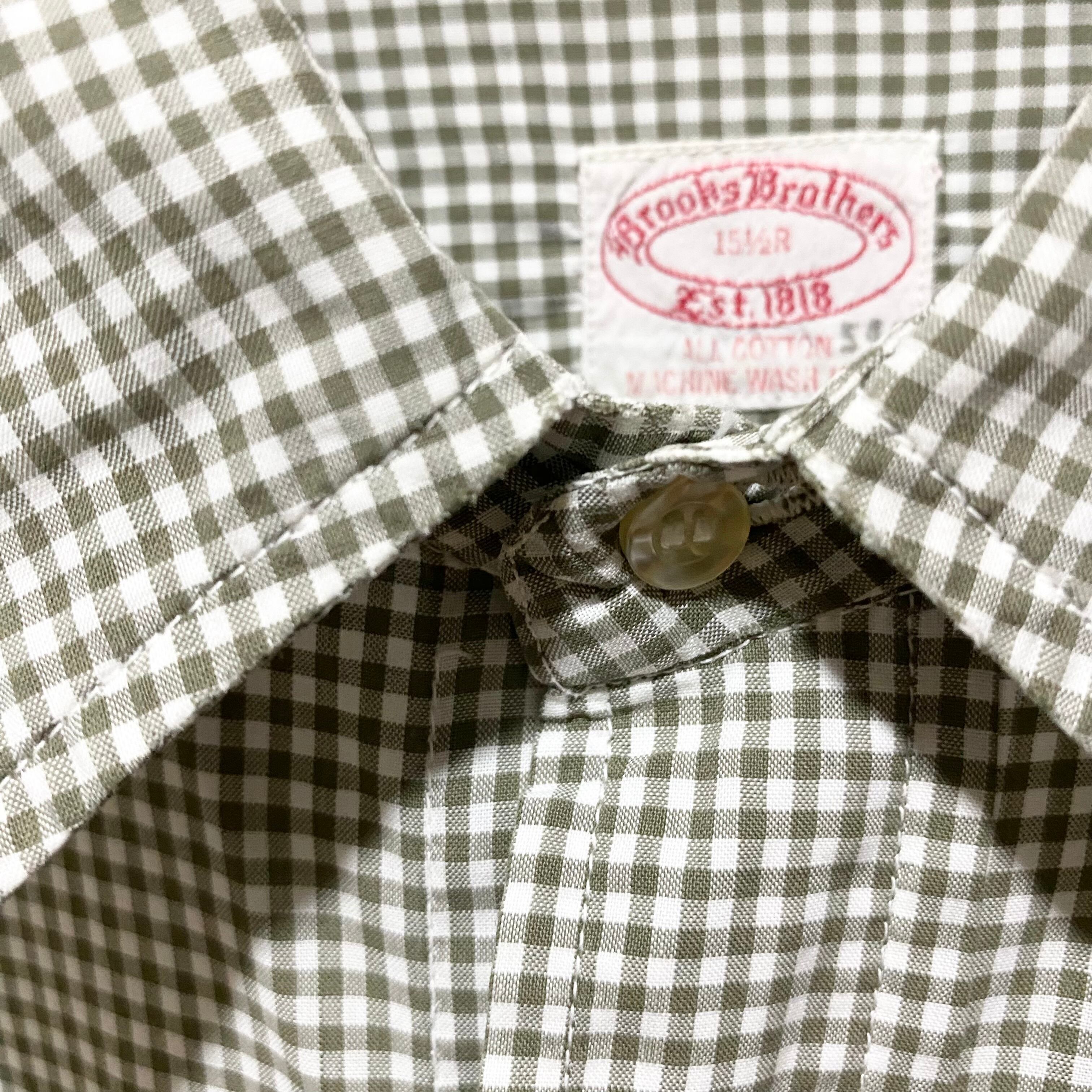 Brooks Brothers GGM CHK Regular Collar Shirt Khaki Made in USA 50s Vintage
