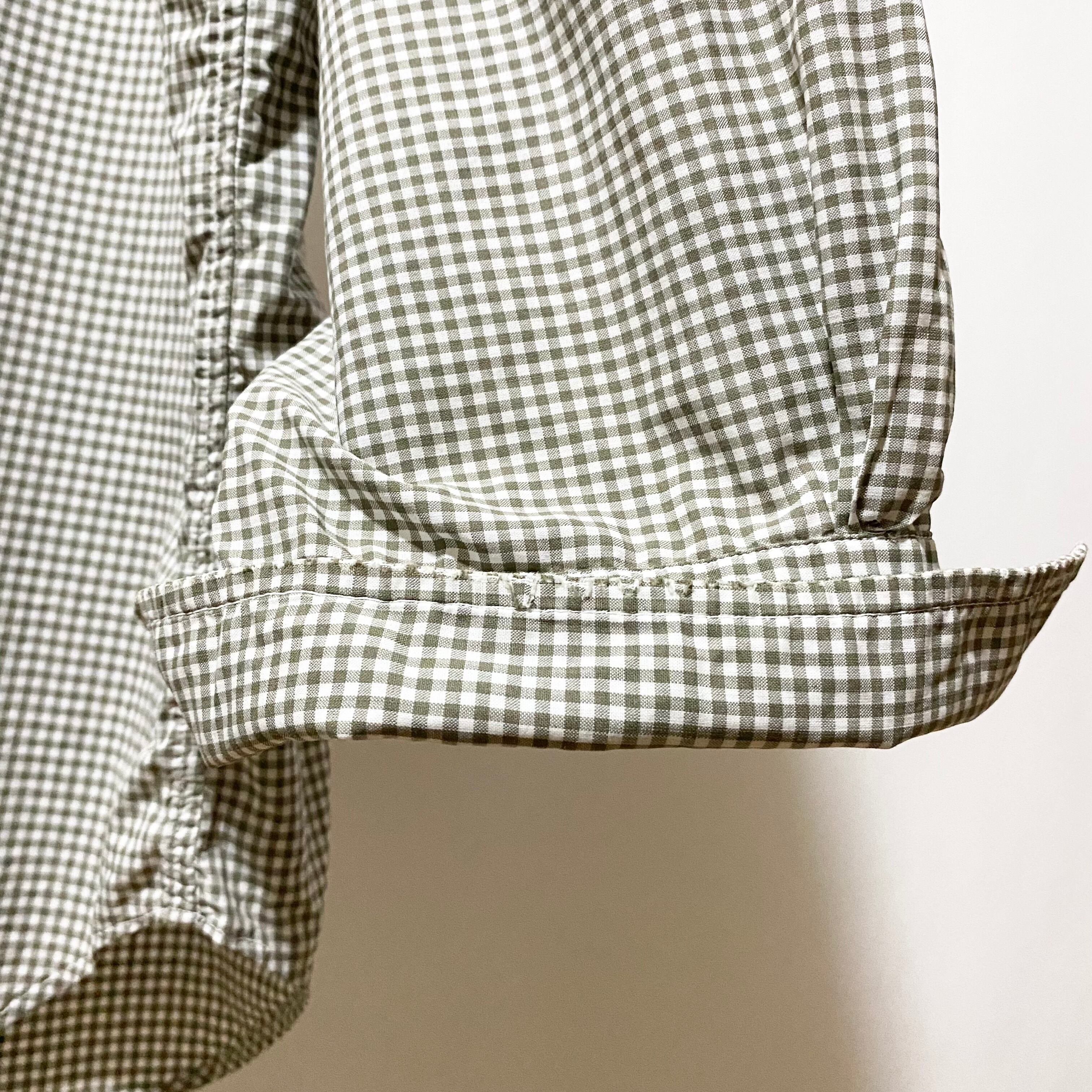 ボタンダウンでは無いレギュラーカラーでフロントは6つボタン。ギンガムチェックの生地は柔らかくしなやか。色味も渋いです。タグはサイズ表記などにプリントが入る非常に珍しいアイテム◎◎◎