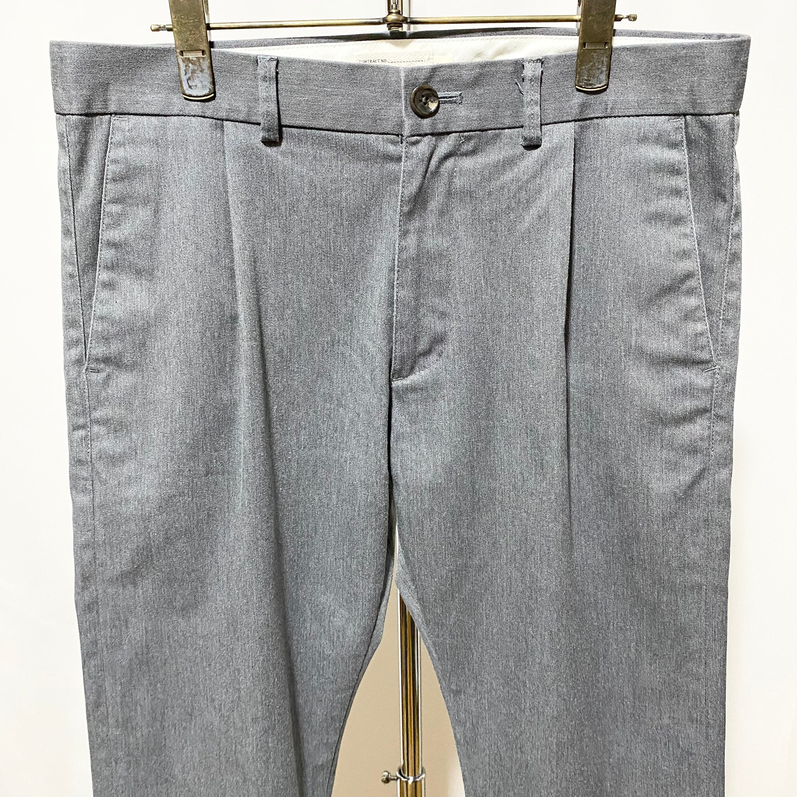 ウールに見えるようなコットンの生地にワンタックでテーパードで短丈。何もしなくてもそのまま店主好みのシルエットです 笑