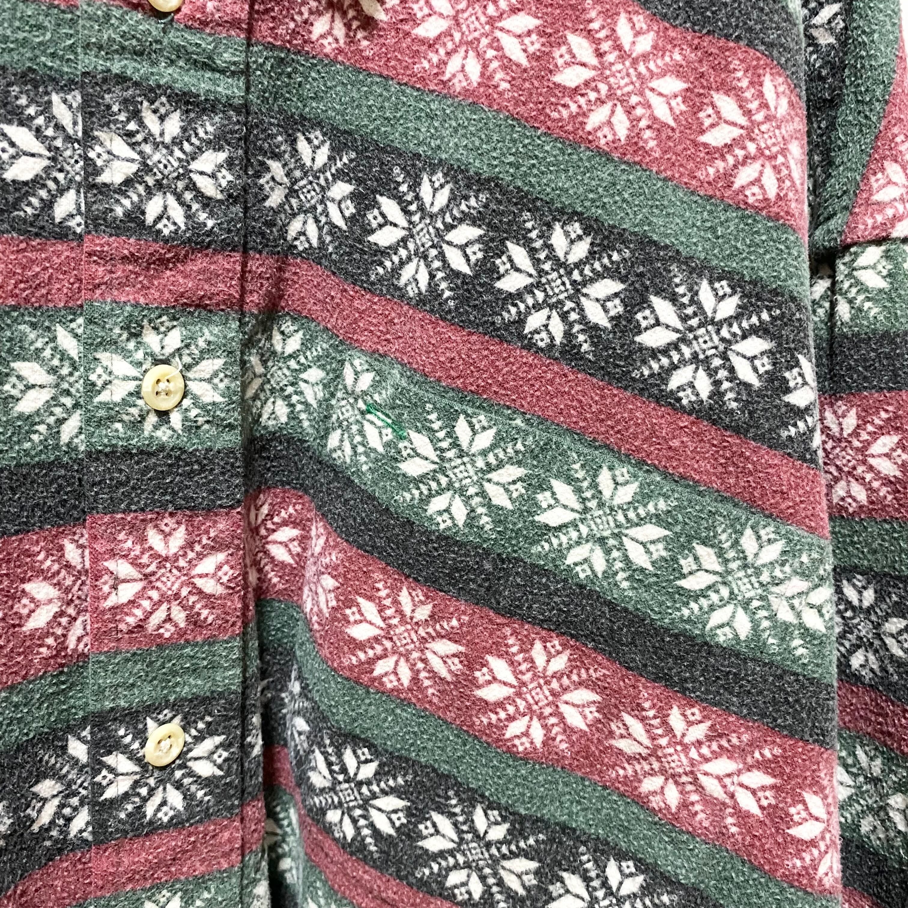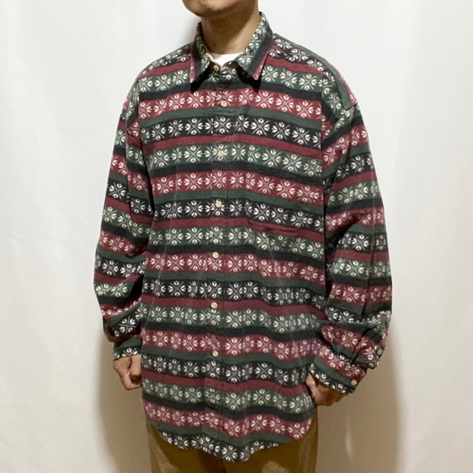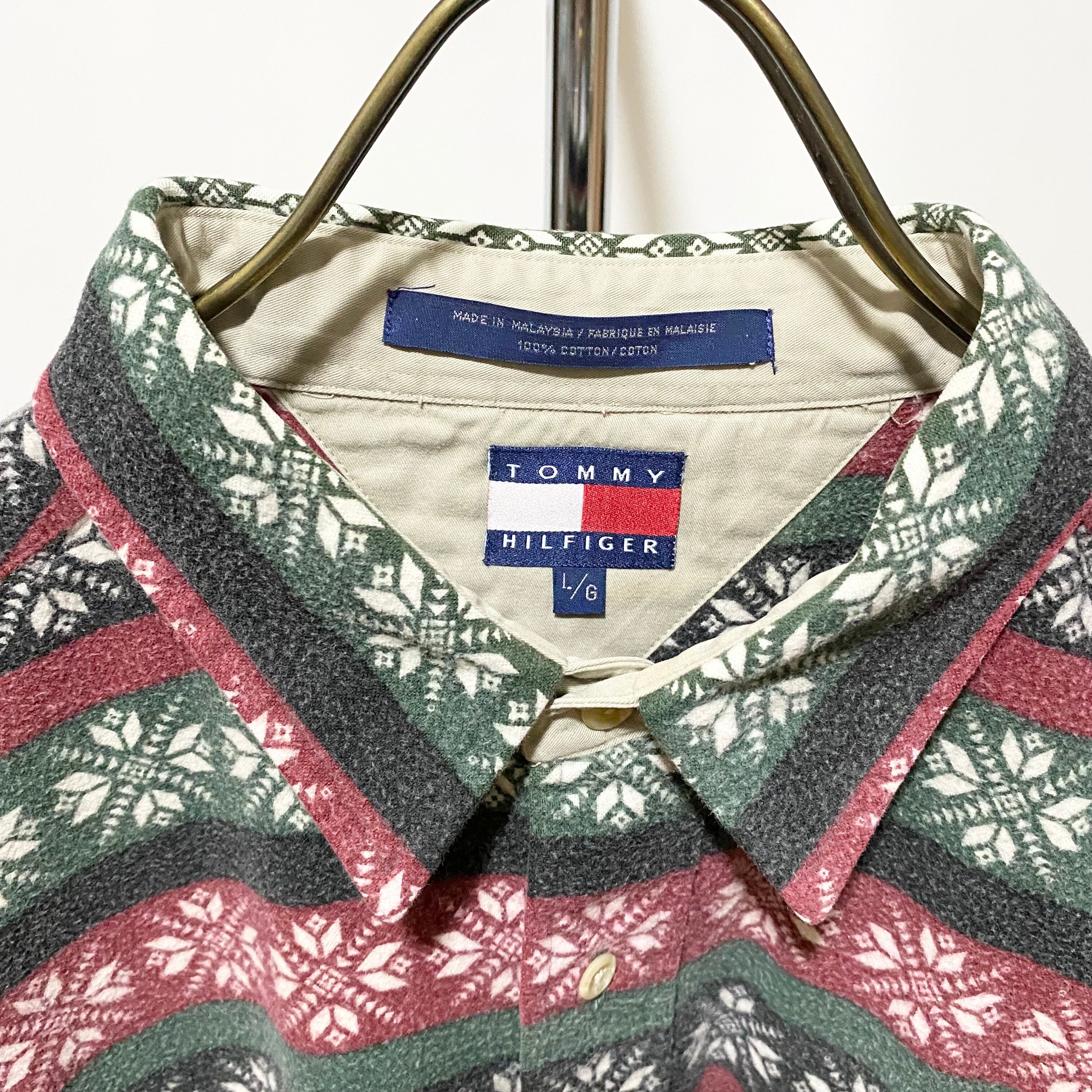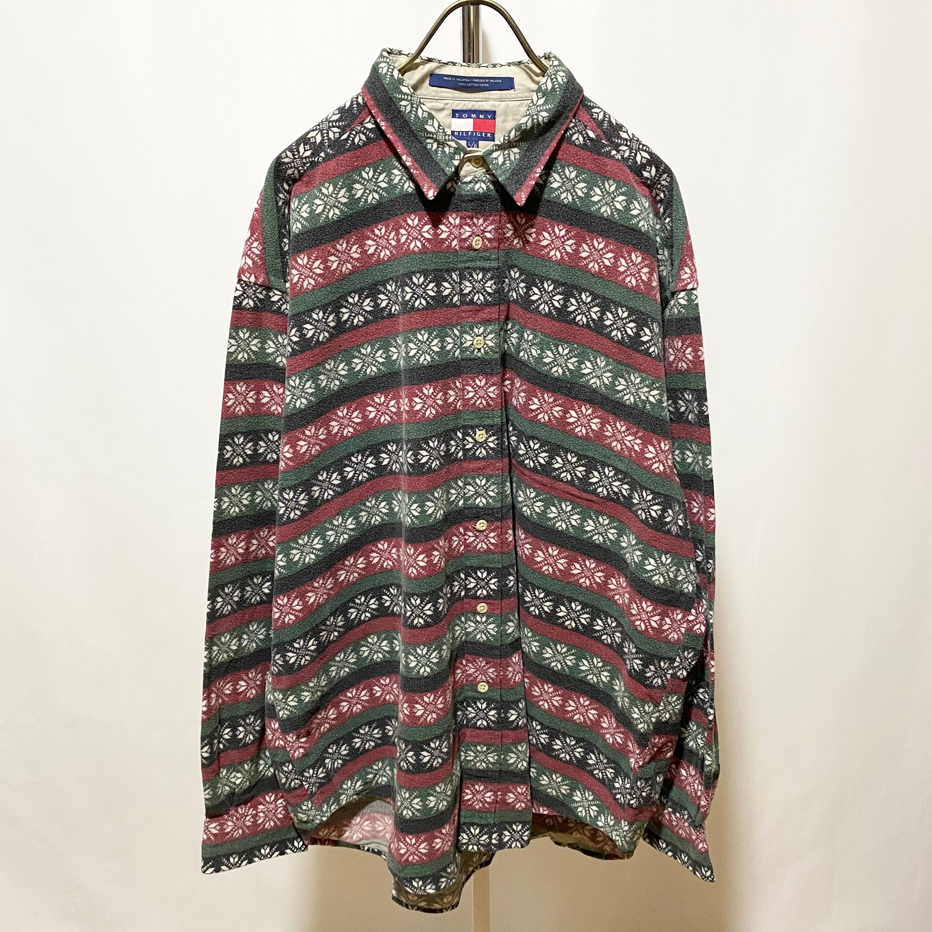 Tommy Hilfiger Snow Pattern Nel Shirt Green Burgundy 90s