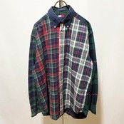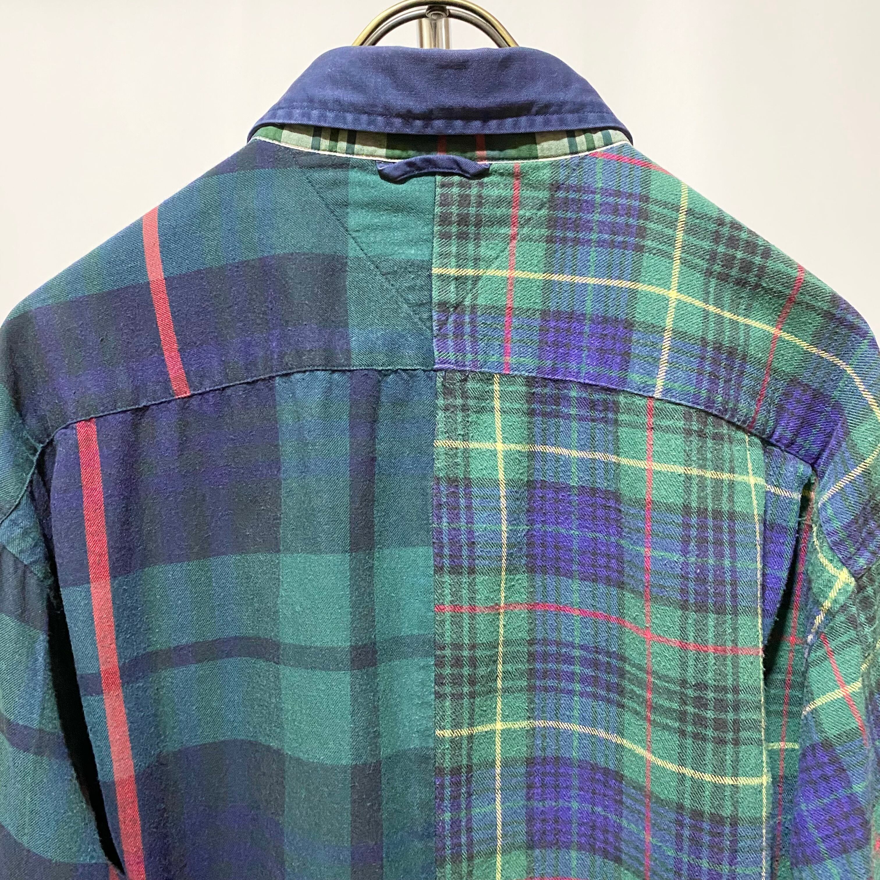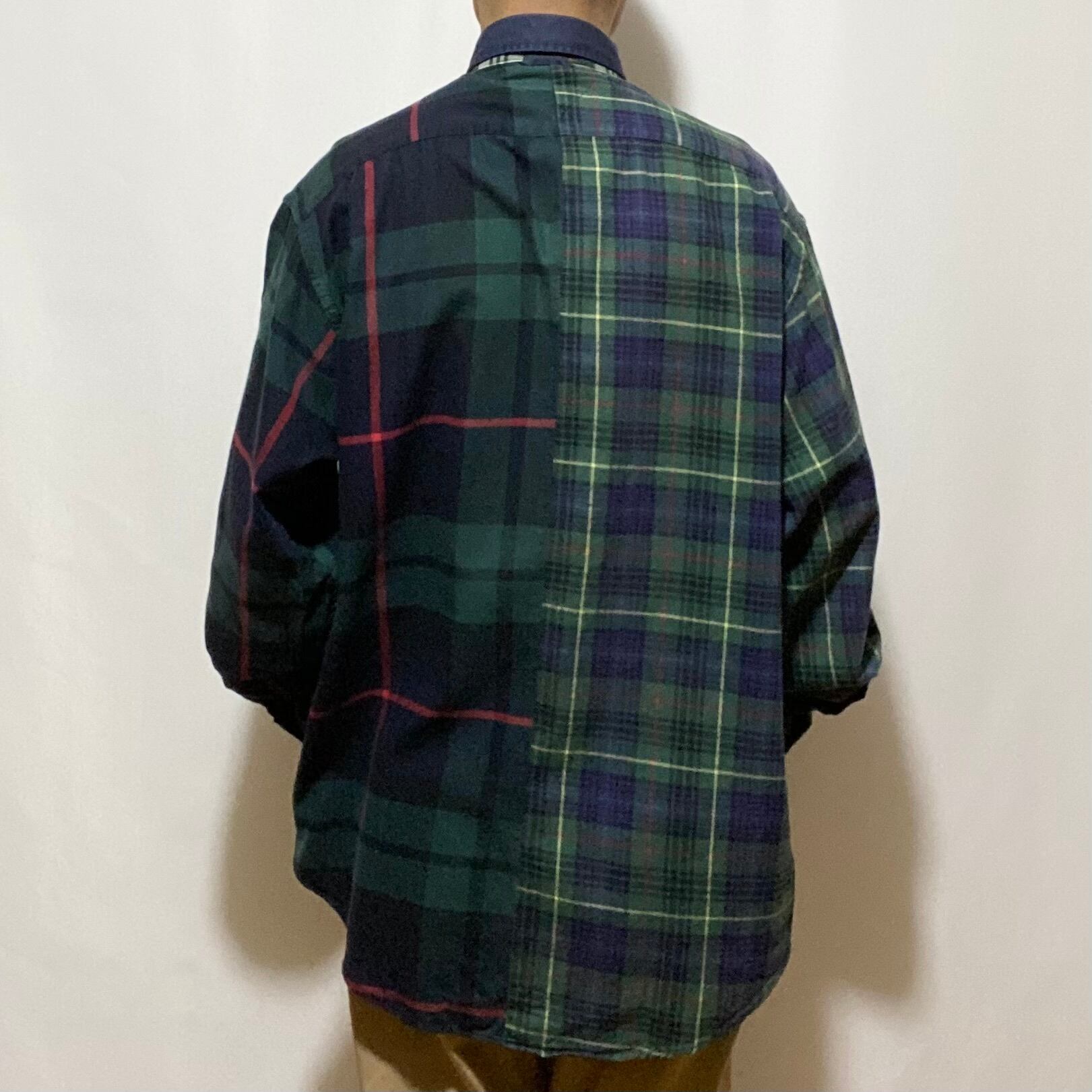 前身と後身の左右、そして両袖をクレイジーにしているシャツなのですが、なんとブロード生地と質感の違うネル生地を3種類組み合わせているという相当ヤバい奴です◎◎◎ (よく見たら襟は無地のネイビーだから全5種の生地)