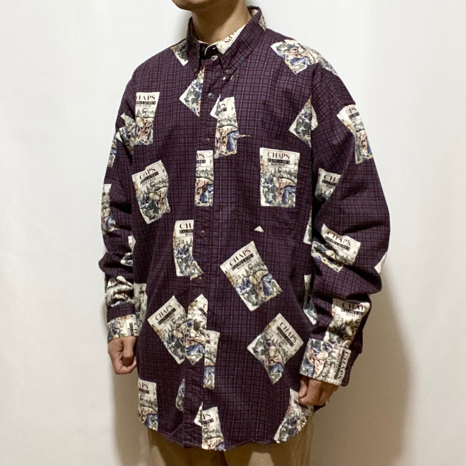 Chaps Ralph Lauren "Road Trip" Print B.D Shirt 80s