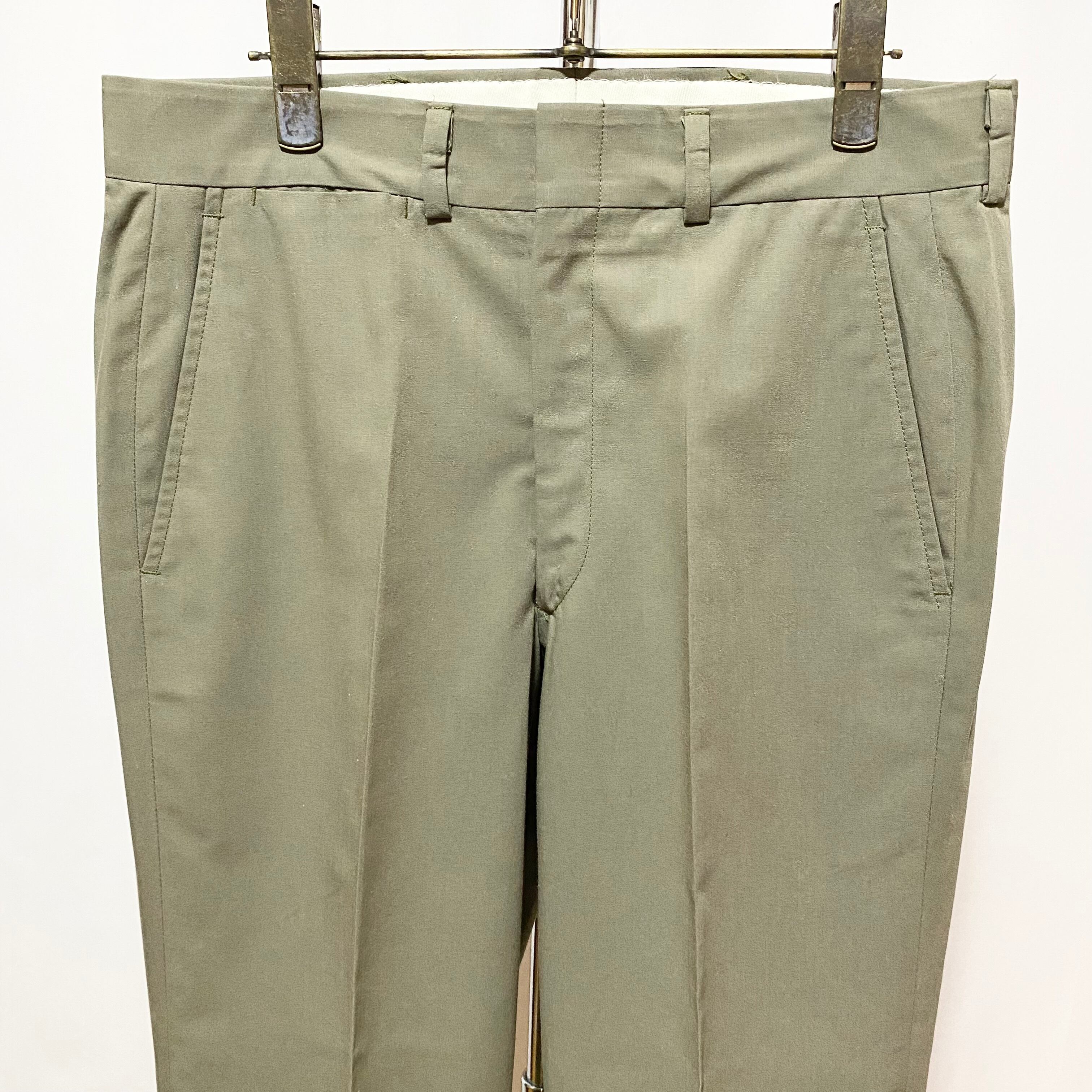 ノータックのパンツはジップもフロントフックもTALON製。ジップの色もカーキってのがたまりません◎◎◎ 裾はシングル仕上げ(短めの丈ならダブルに直せなくもないかと)でジャケット同様コンディションは良好。シワも落ちやすいので綿ポリでしょうかね?シャリシャリした良い風合いです。