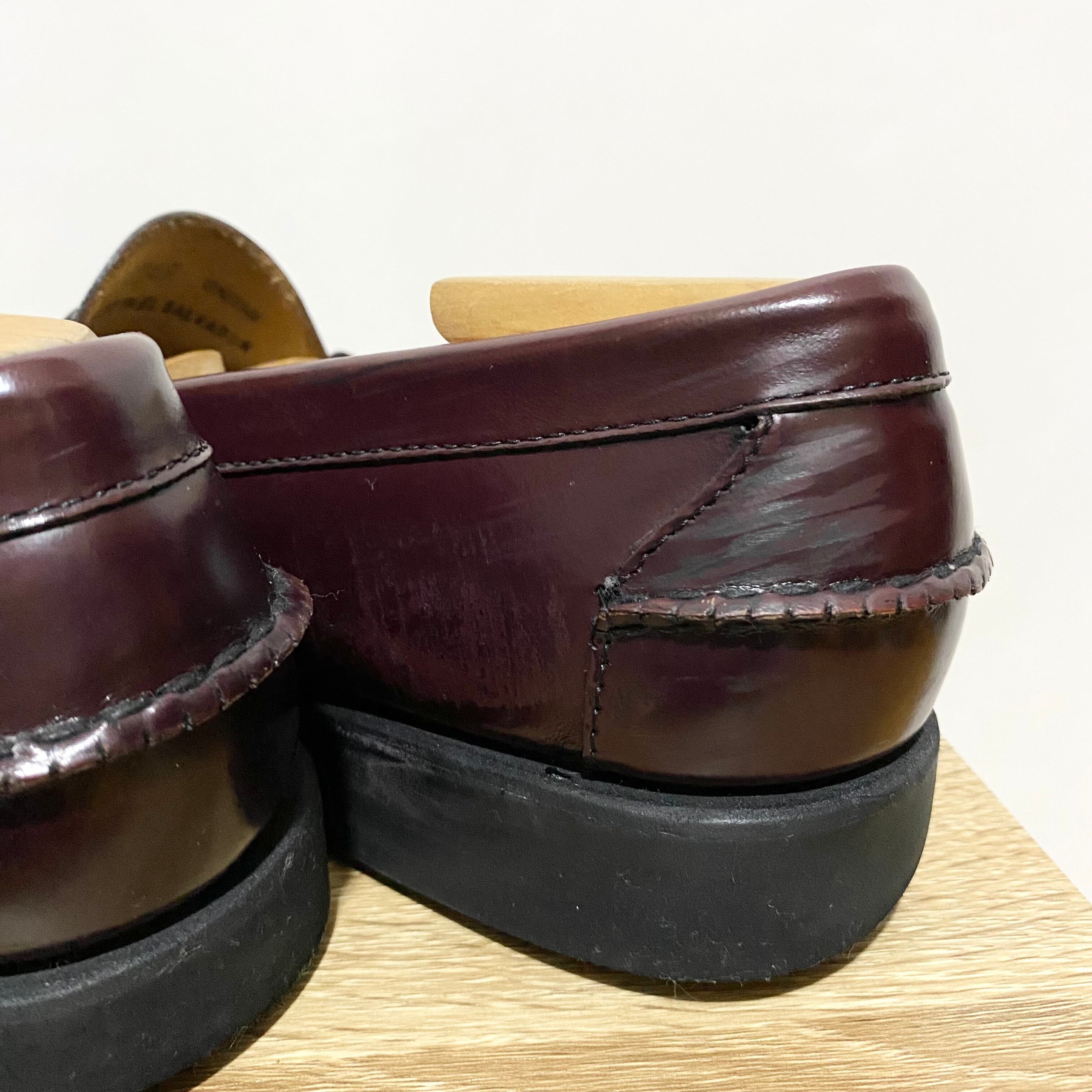 所謂ビーフロールスタイルのアッパーで間違いないバーガンディーブラウンのガラスレザー。