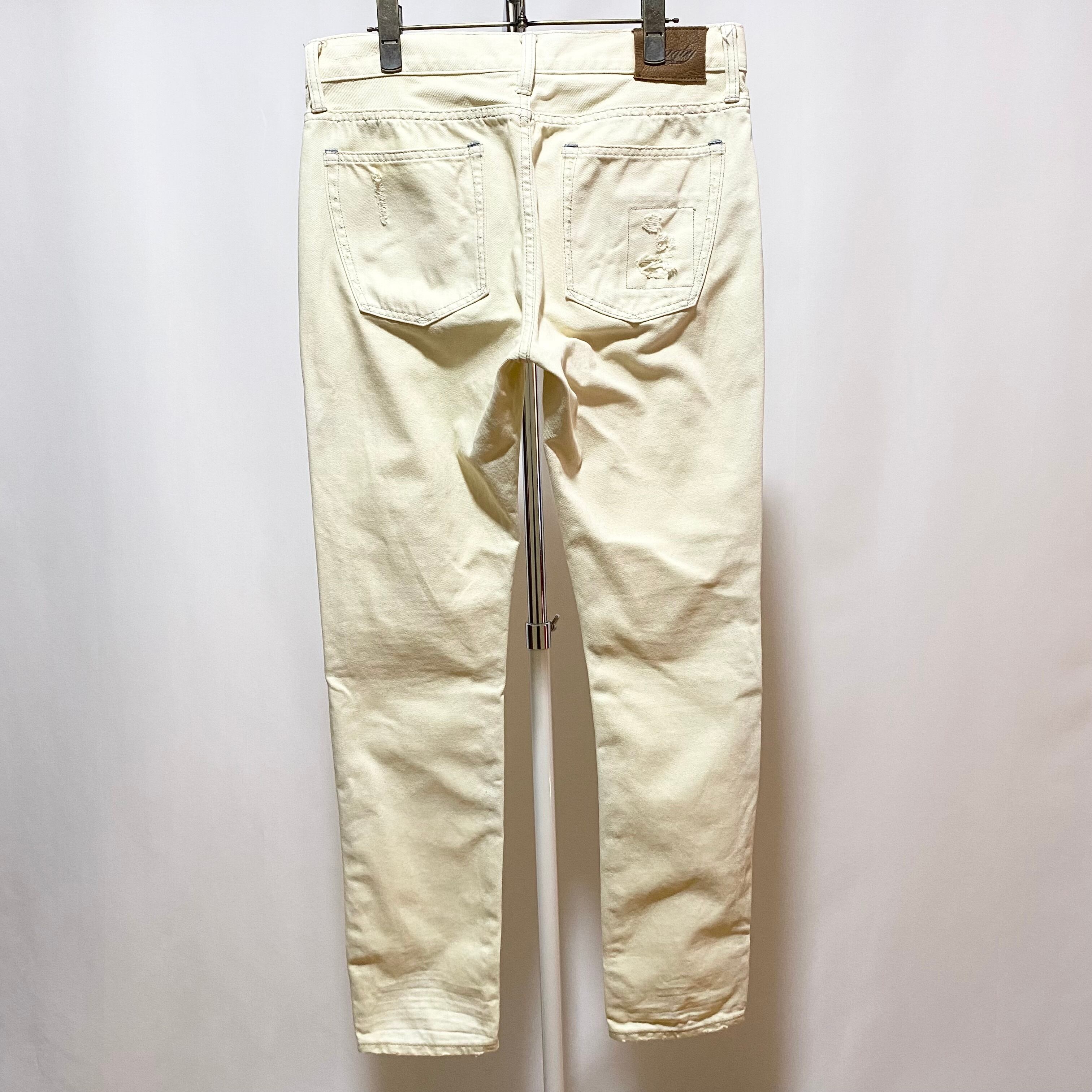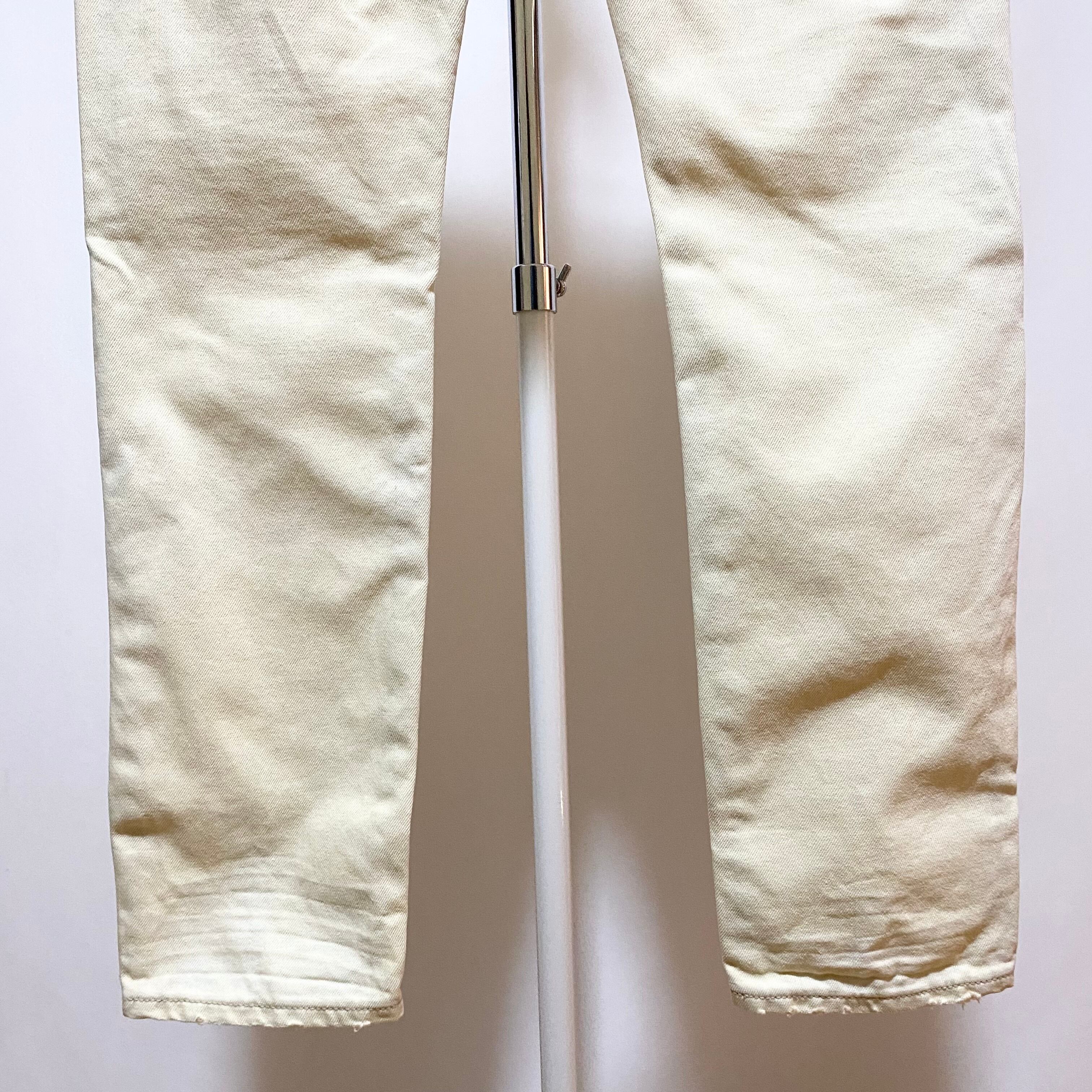 そしてこちらはイエローがかった明るめなカラーのデニムでストレートって書いてあるけど裾幅狭めのスリムシルエット 笑 レングスはやや長めでくしゅくしゅっと裾に溜める感じのメインストリーム丸出しなシルエットです。