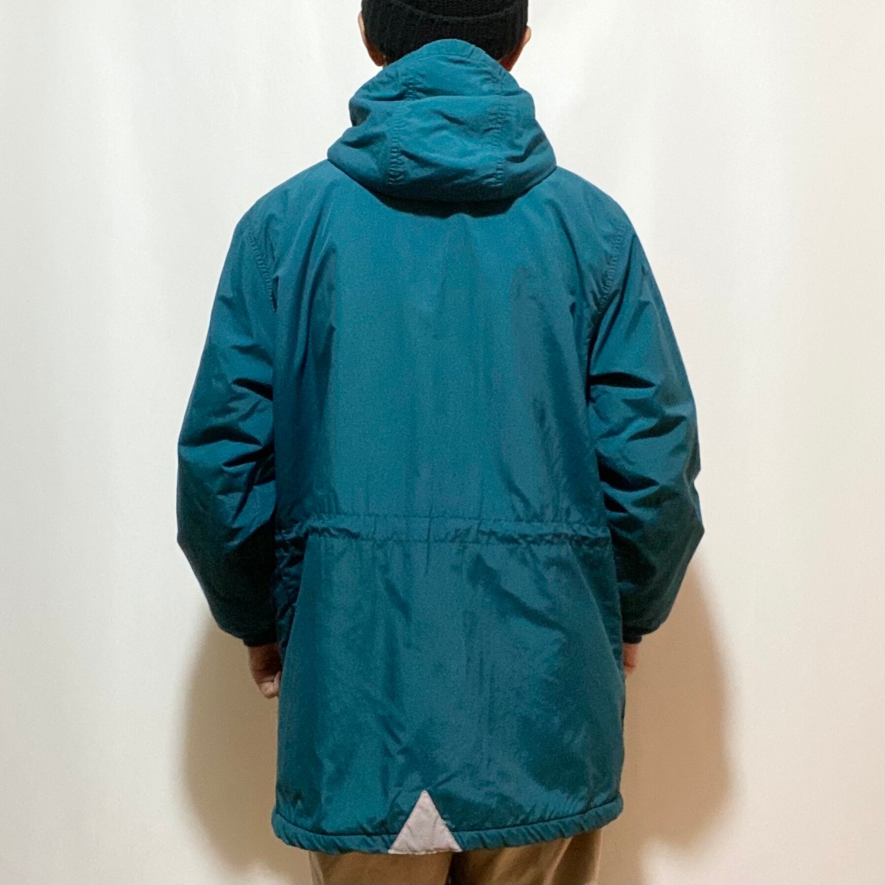 ナイロンシェルに裏はフリースですが丈が長くフードが付き、前立てはスナップボタンでも留めれる仕様。カラーリングもウォームアップジャケットまんまだし胸のネームタグもまんま。