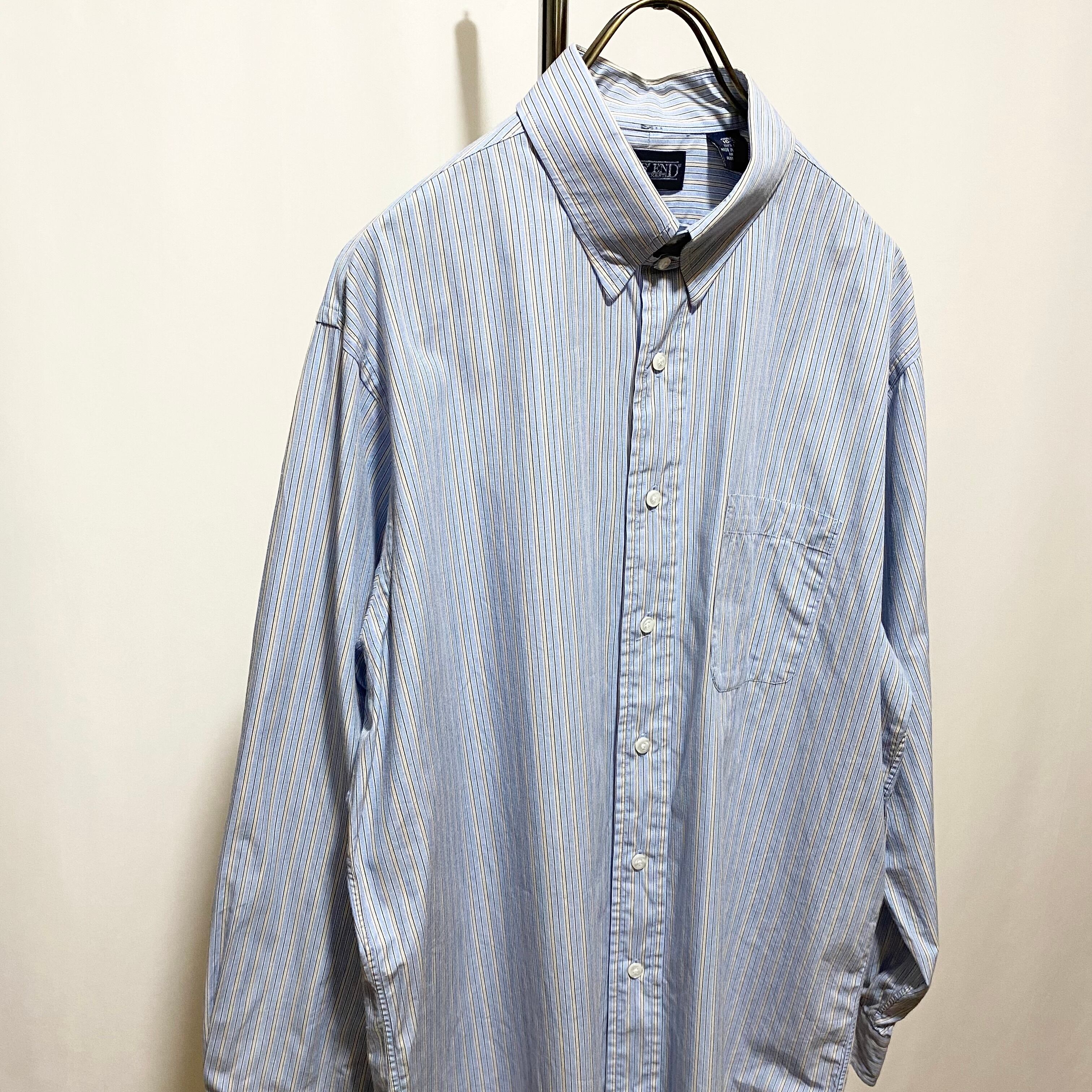 香港製の90年代物。多色使いだけど統一感のある色味のストライプの生地。この雰囲気ってアメリカ製にも無くて凄くイイ◎◎◎ 玄人好みな質感◎◎◎ ボタンダウンじゃなくてタブカラー、そしてビッグサイズってのもポイントです。