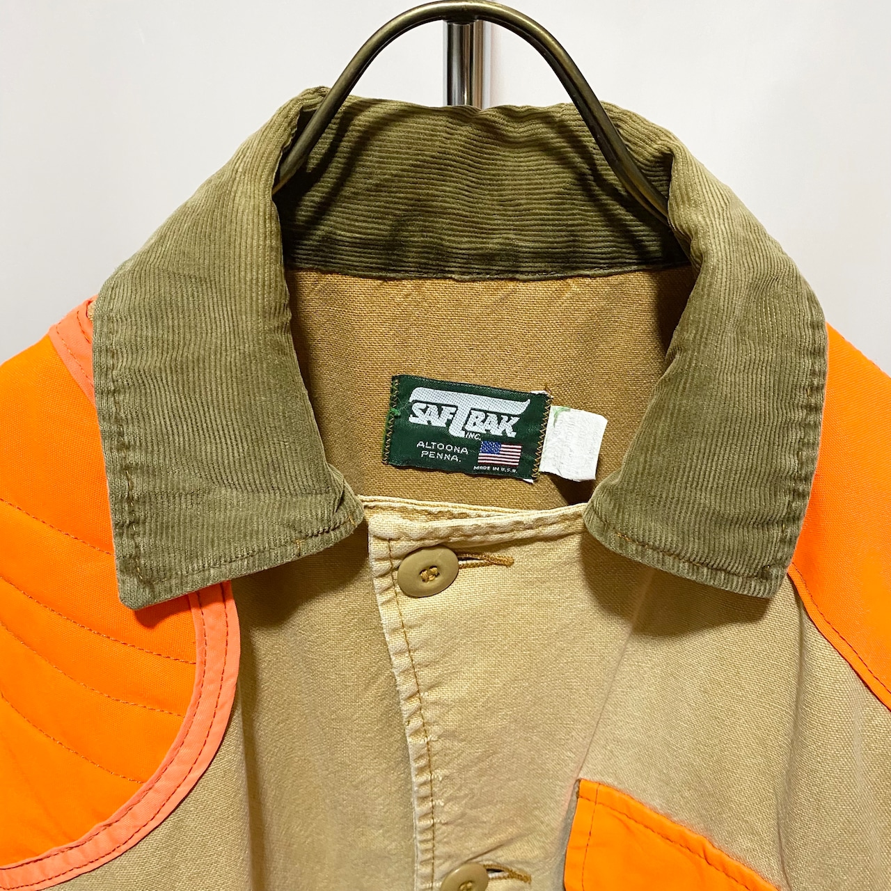 しっかりと着込まれ、そして洗われていい具合に退色したダック地にセーフティオレンジが眩しいこのジャケット。