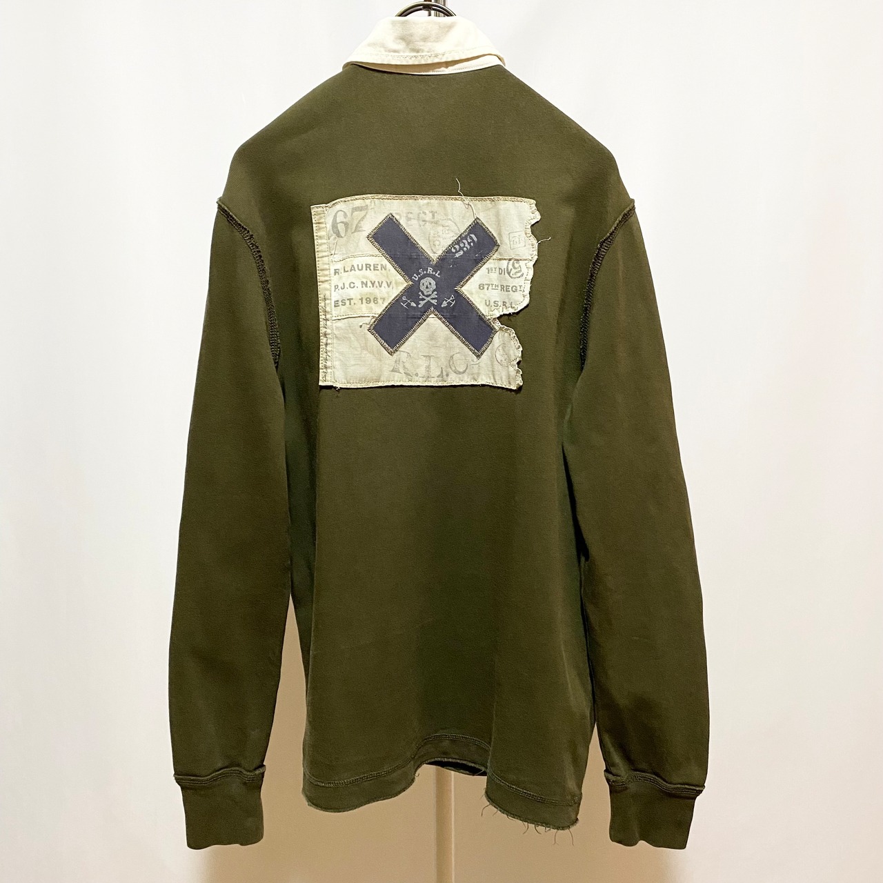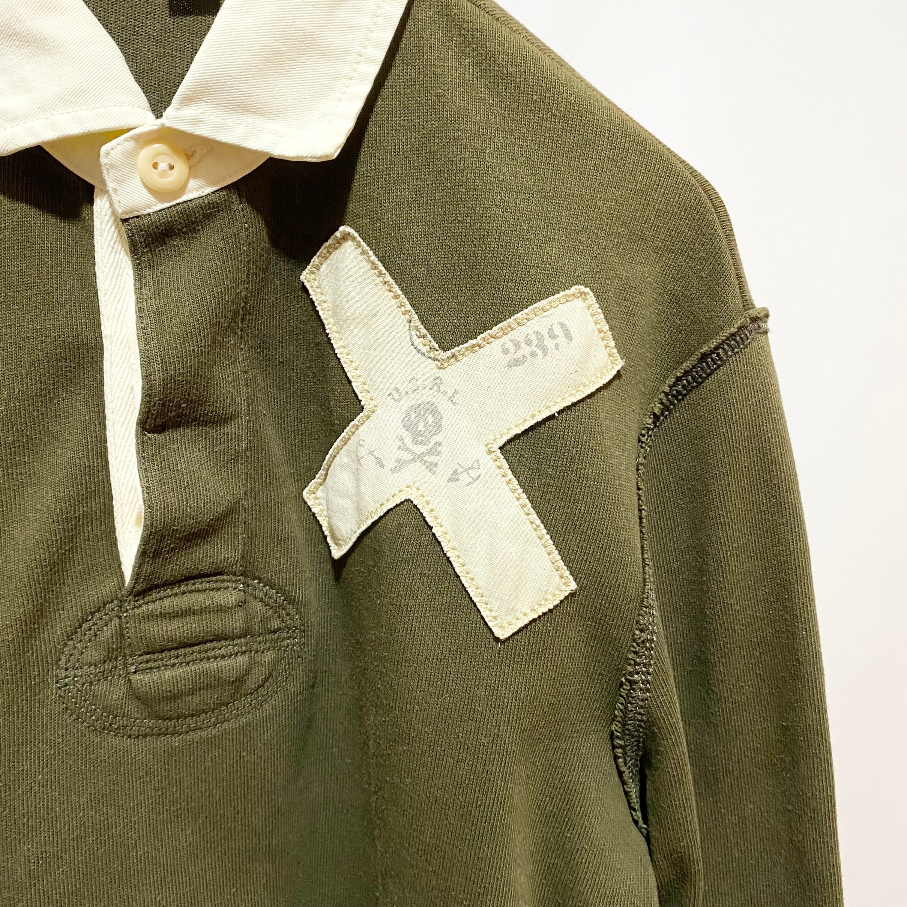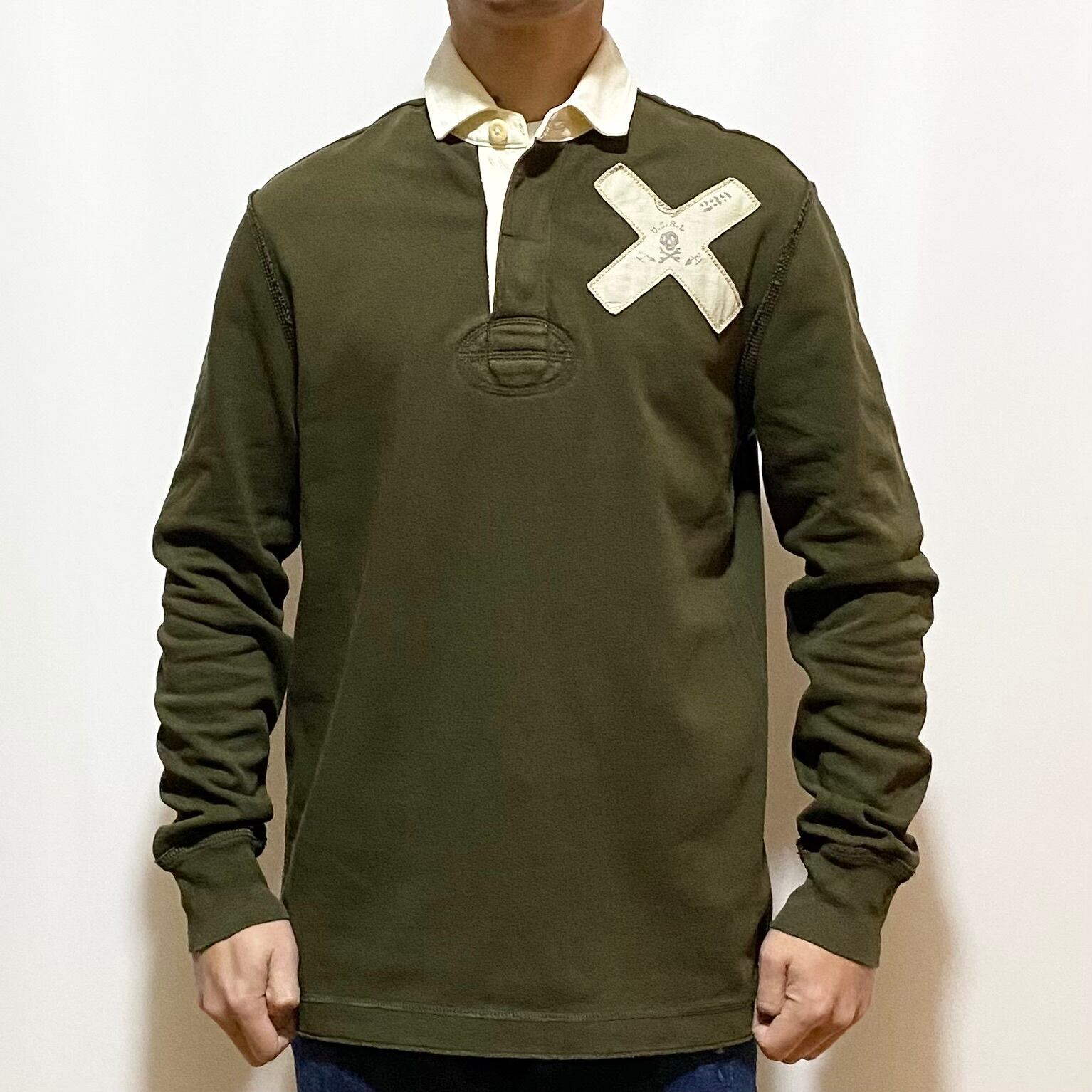 ラグビーお得意のスカルモチーフを本家っぽくパッチでアレンジ。胸と背中のデザインは極めて秀逸◎◎◎ そして現代的アメリカな縦長なシルエットに切りっぱなしやオーバーロック。色々仕事は多いけれども最終的にオリーブカラーで渋くまとめてる辺りが最高◎◎◎