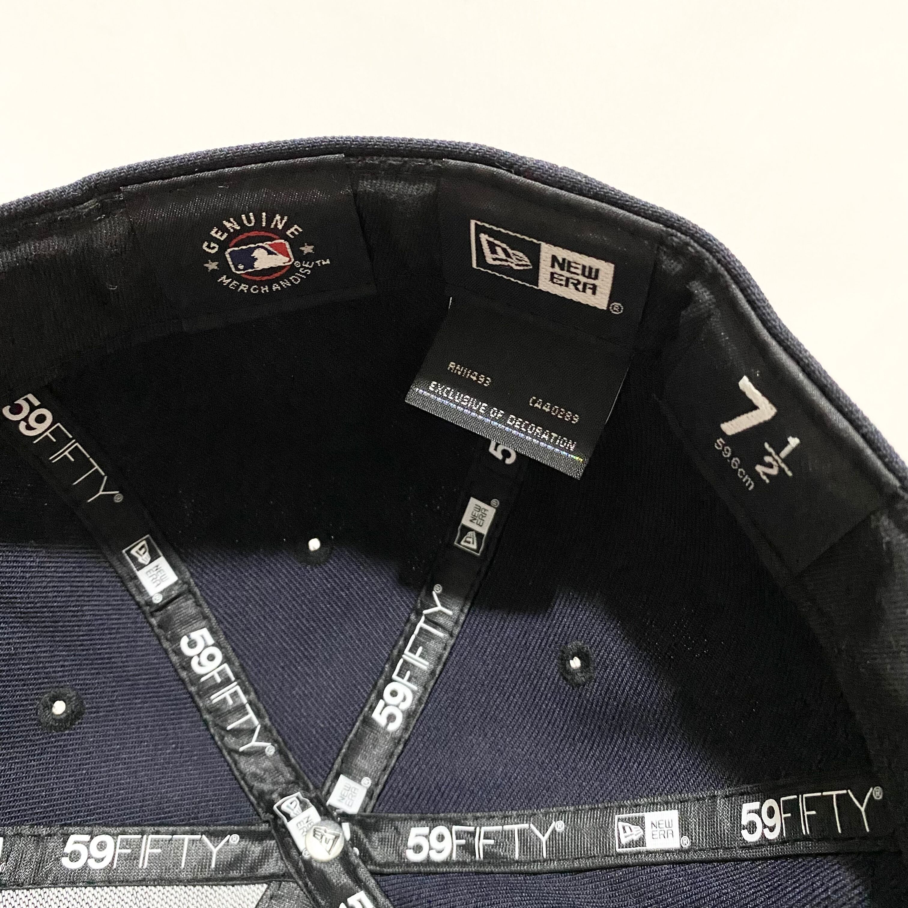 ネイビーのヤンキースならやっぱりグレーブリムが良いんですが、当時物も現行でこだわった復刻も汗止めが白。当時に寄せたい気持ちもわかるけどあそこは1、2回の着用でも直ぐ黄ばむもんでー出来たらブラックの方が良い訳で、、と思っていたら有りました 笑