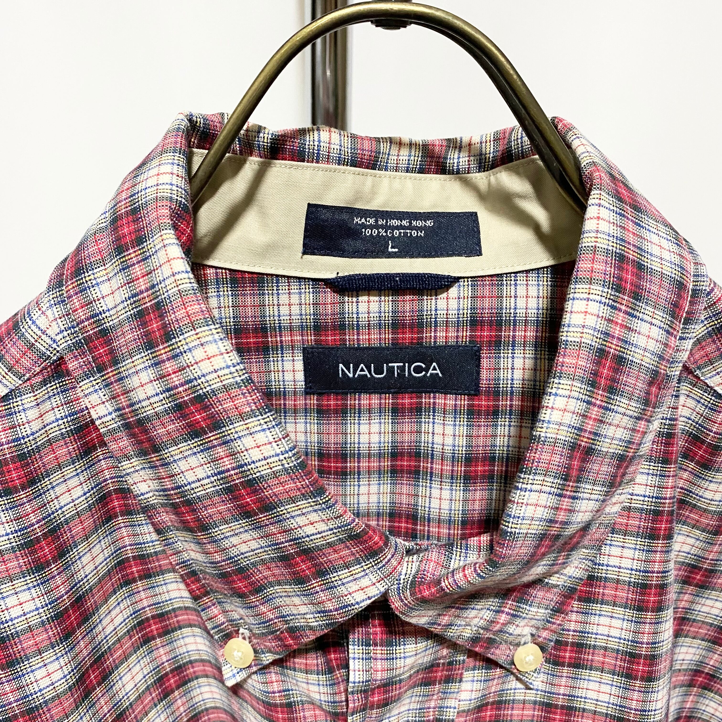 Nautica Micro Tartan CHK B.D Shirt Red 90s 00s