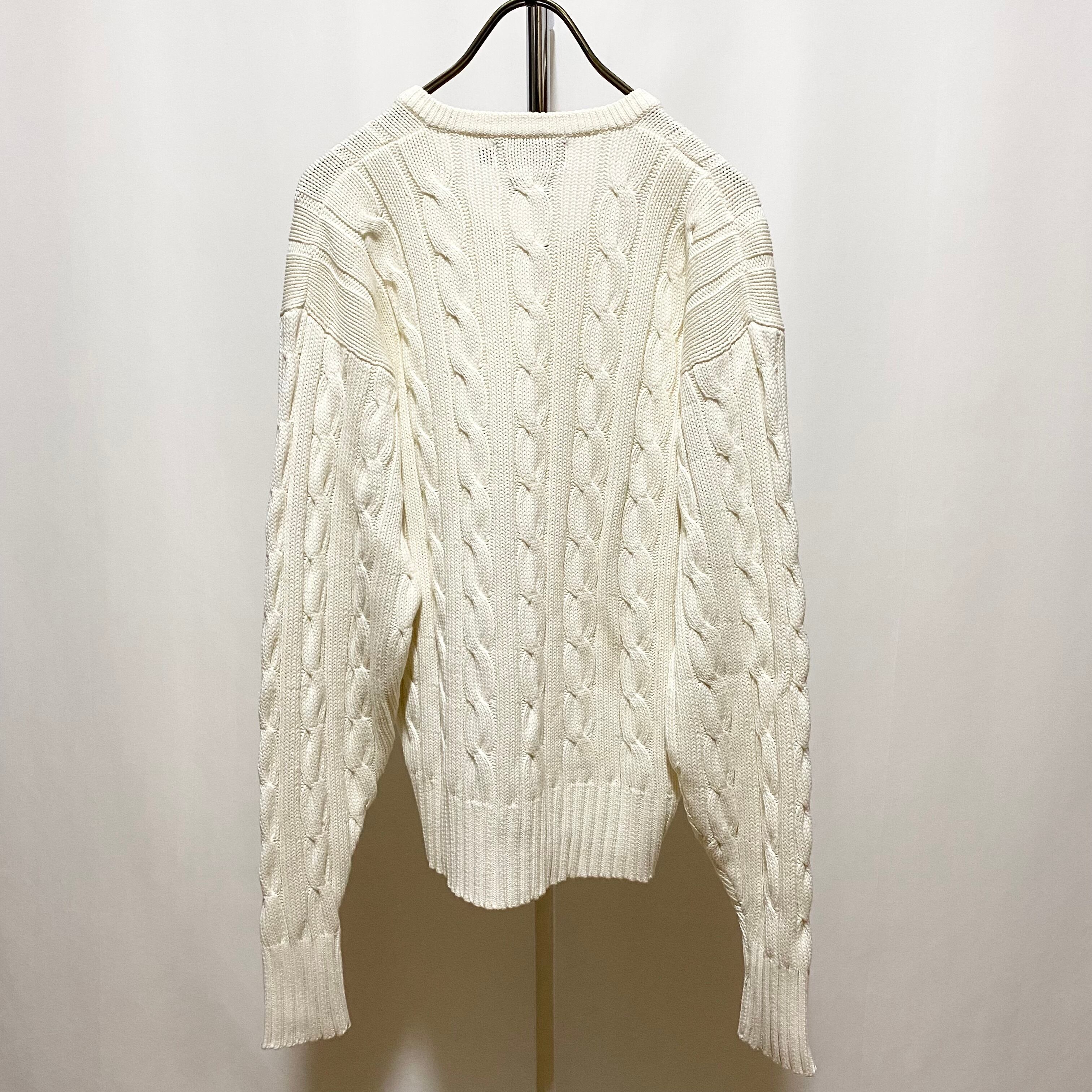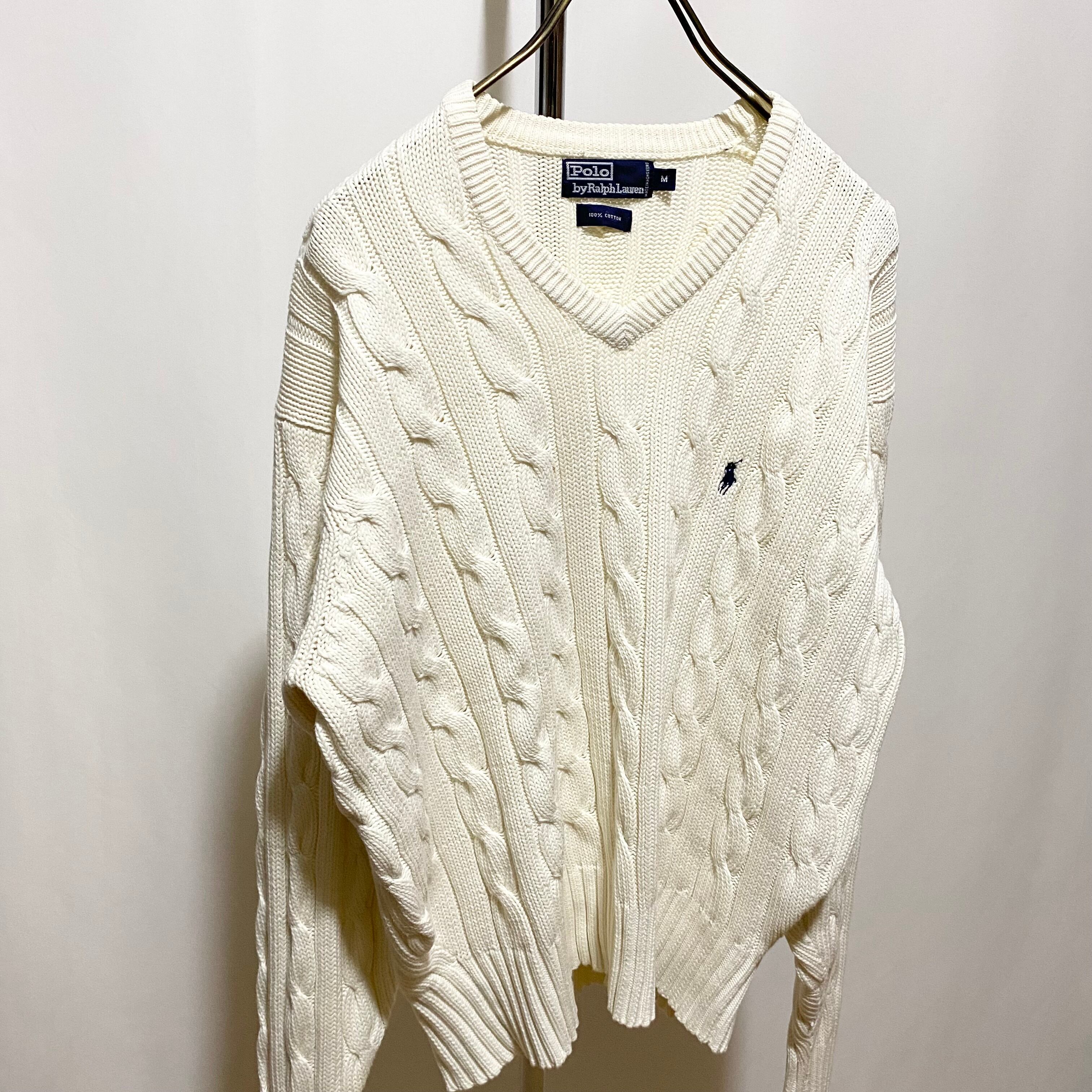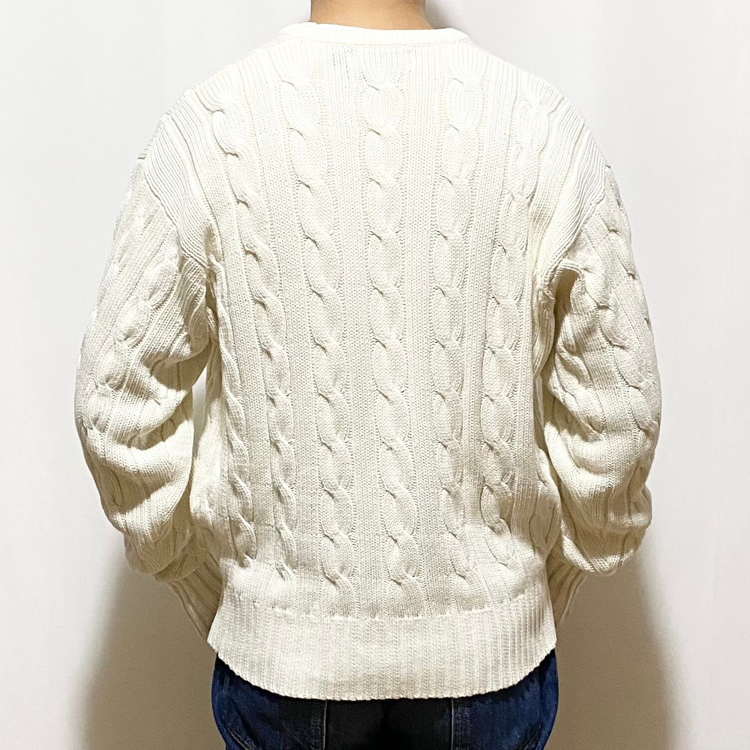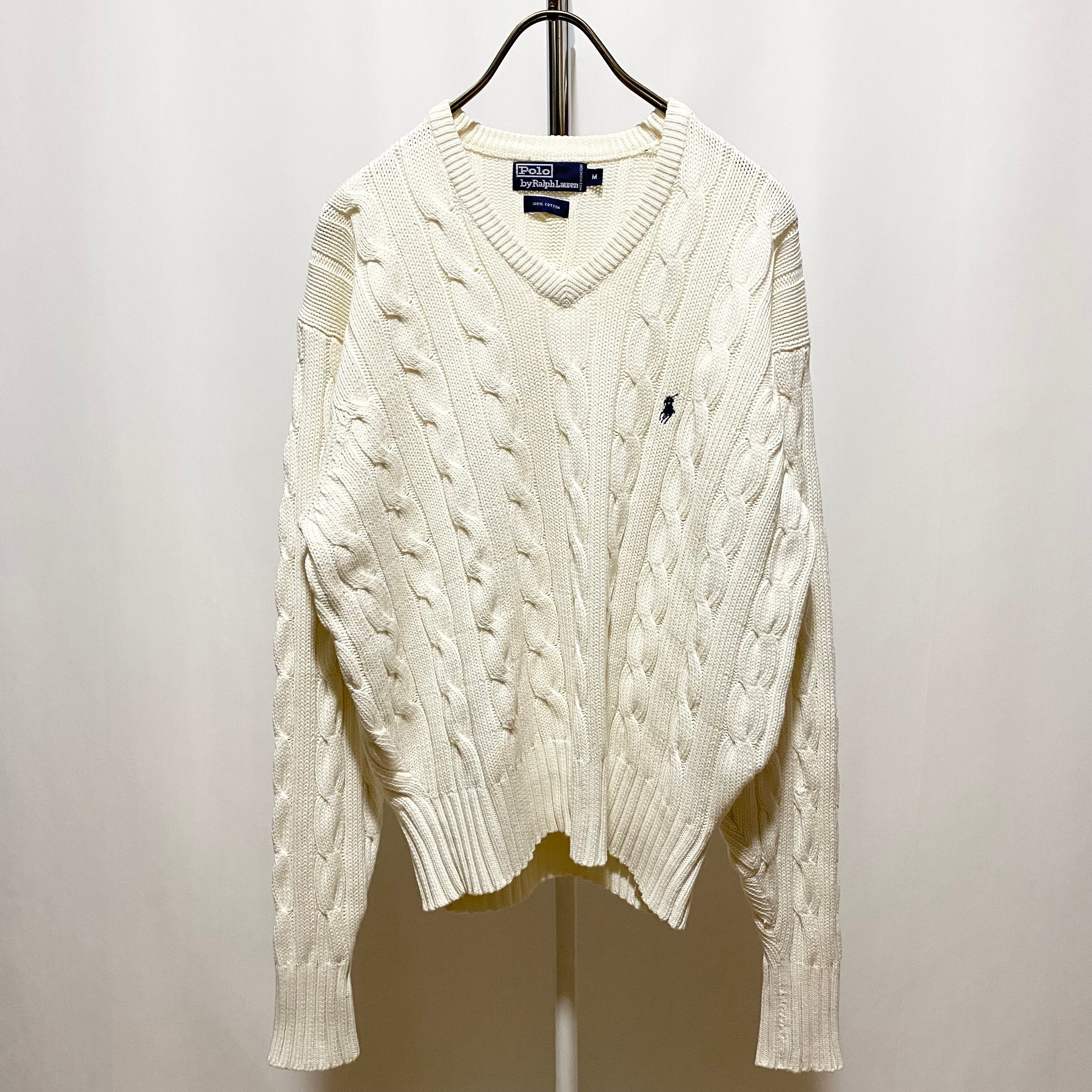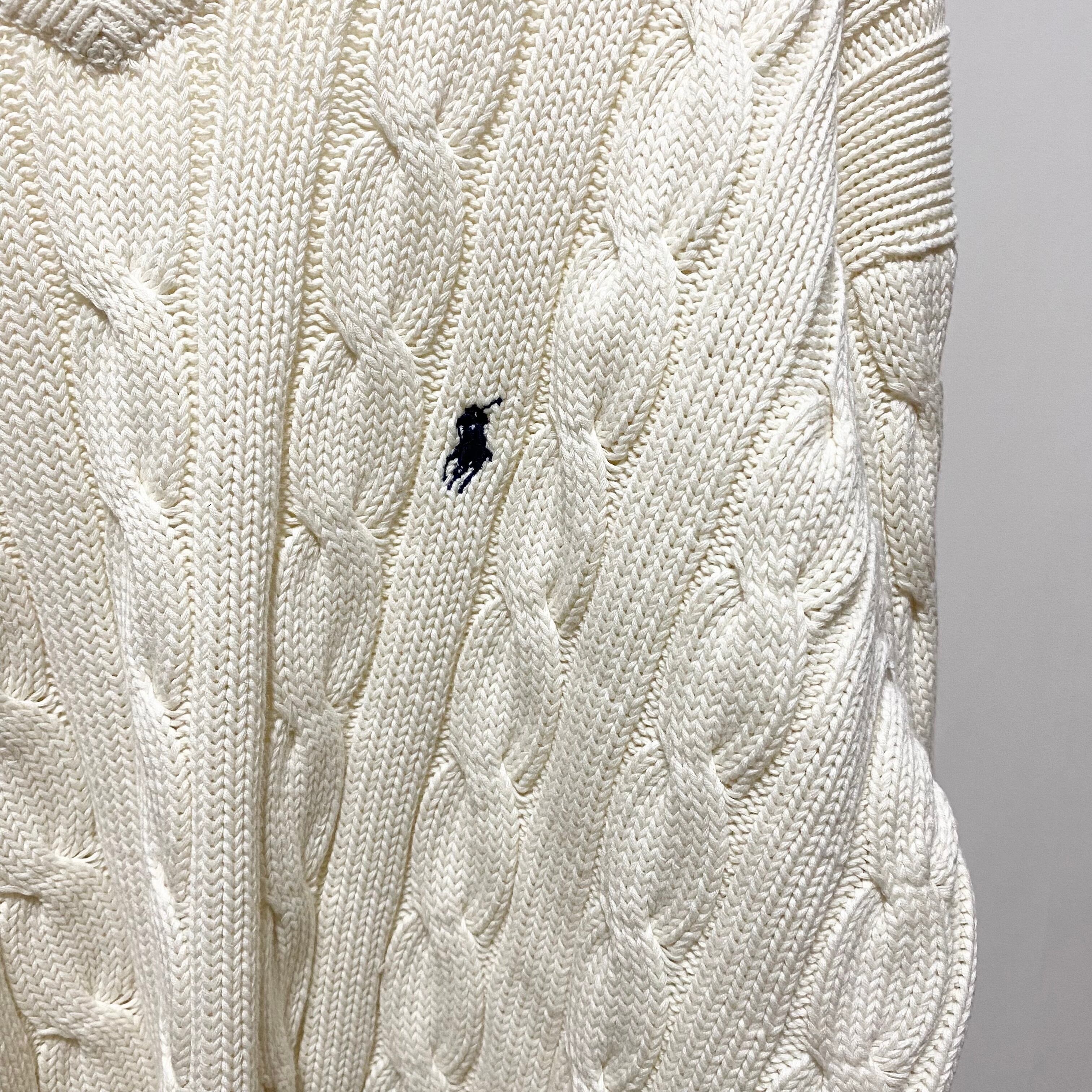 Polo by Ralph Lauren V-Neck Cable CTN Knit White 90s