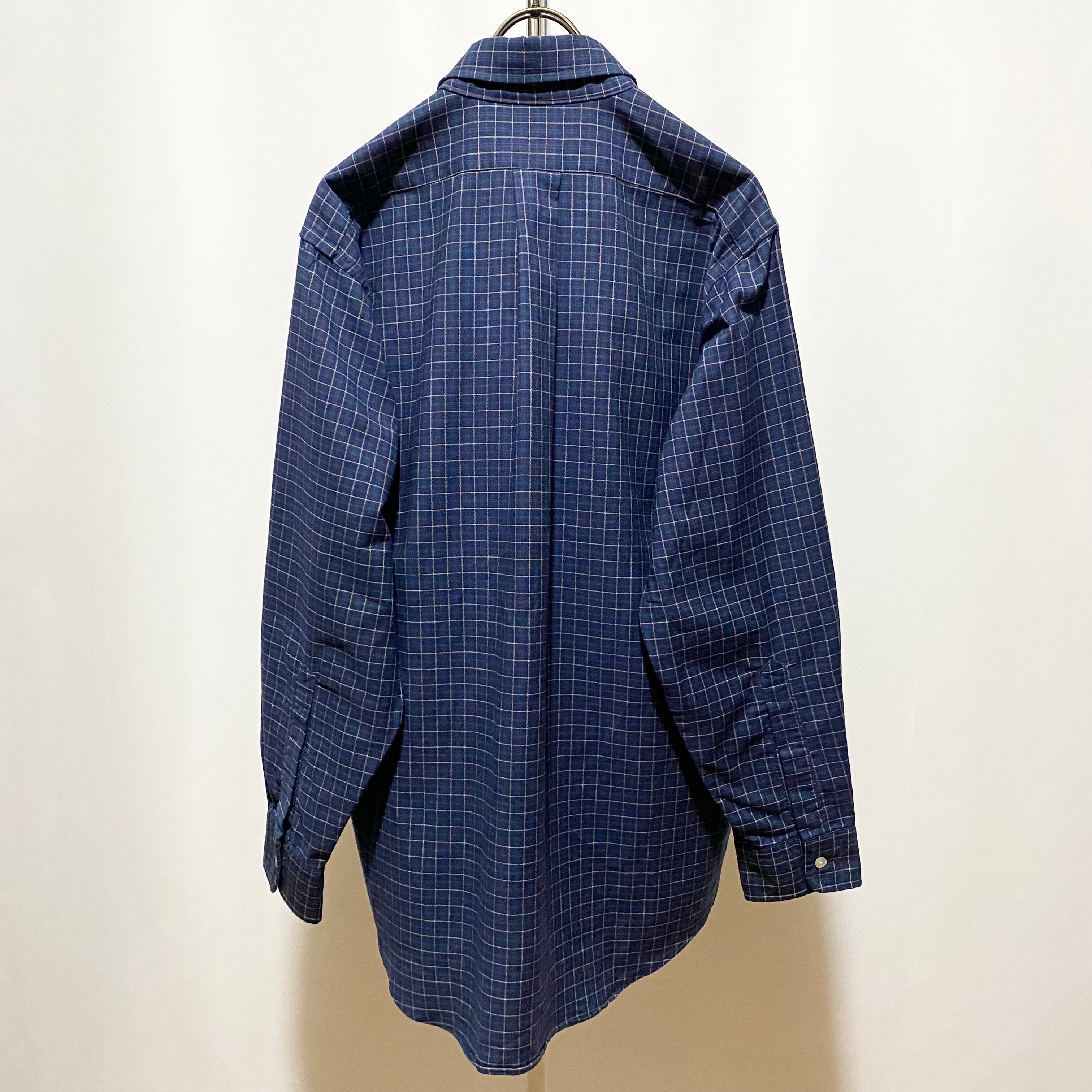 L.L.Bean Tattersall CHK B.D Shirt Navy Made in USA 70s