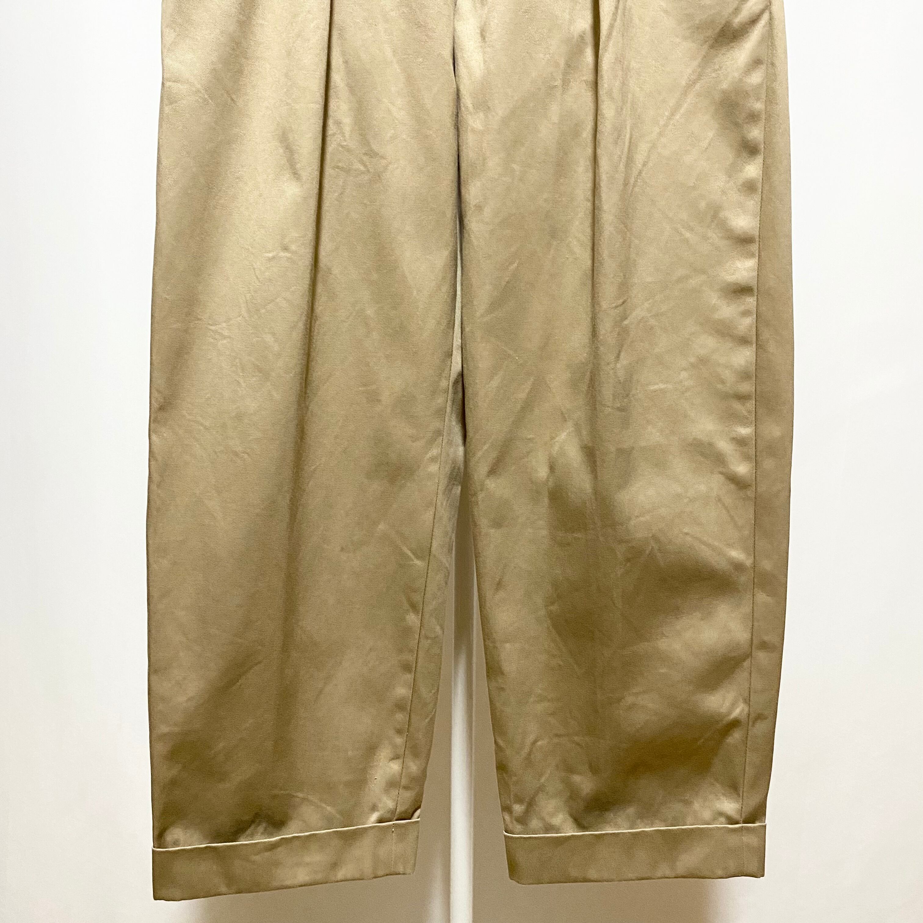 フロントにはタックとダーツを大胆に入れ、股上深めで渡りもたっぷりの太めのシルエットながらテーパードで短丈。少し丸いシルエットは履くだけで絵になる奴です◎◎◎