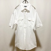 綿ポリのブロード生地にエポーレット、ダブルポケット、ペンホルダーのステッチ(左胸ポケ上)や袖の折り返しなど、所謂ミリタリーもしくは、きちんとしたユニフォームとして作られたであろうこのアイテム。