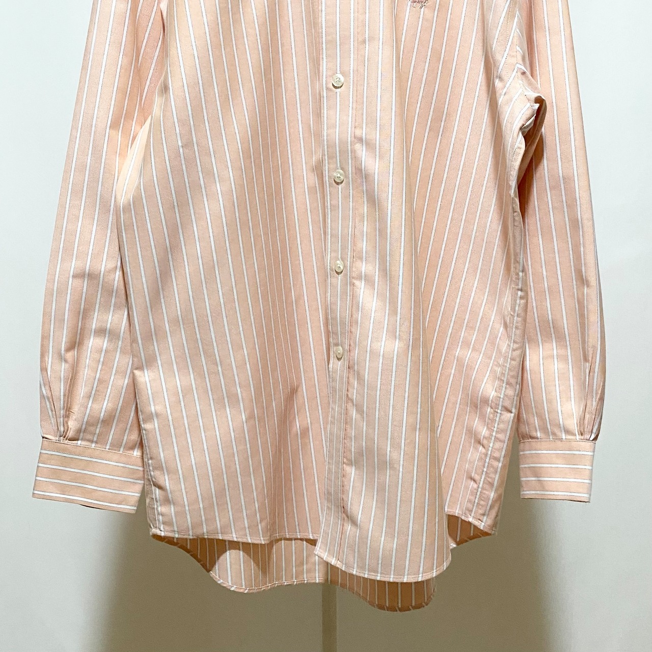 オックスフォード生地のストライプシャツ。しっかりした生地に淡いオレンジ◎◎◎ これはもうバギーなパンツやショーツ、ロングビルやレザーシューズ、ダッドなシューズで思いきりストリートに振って頂ければ幸いです◎◎◎