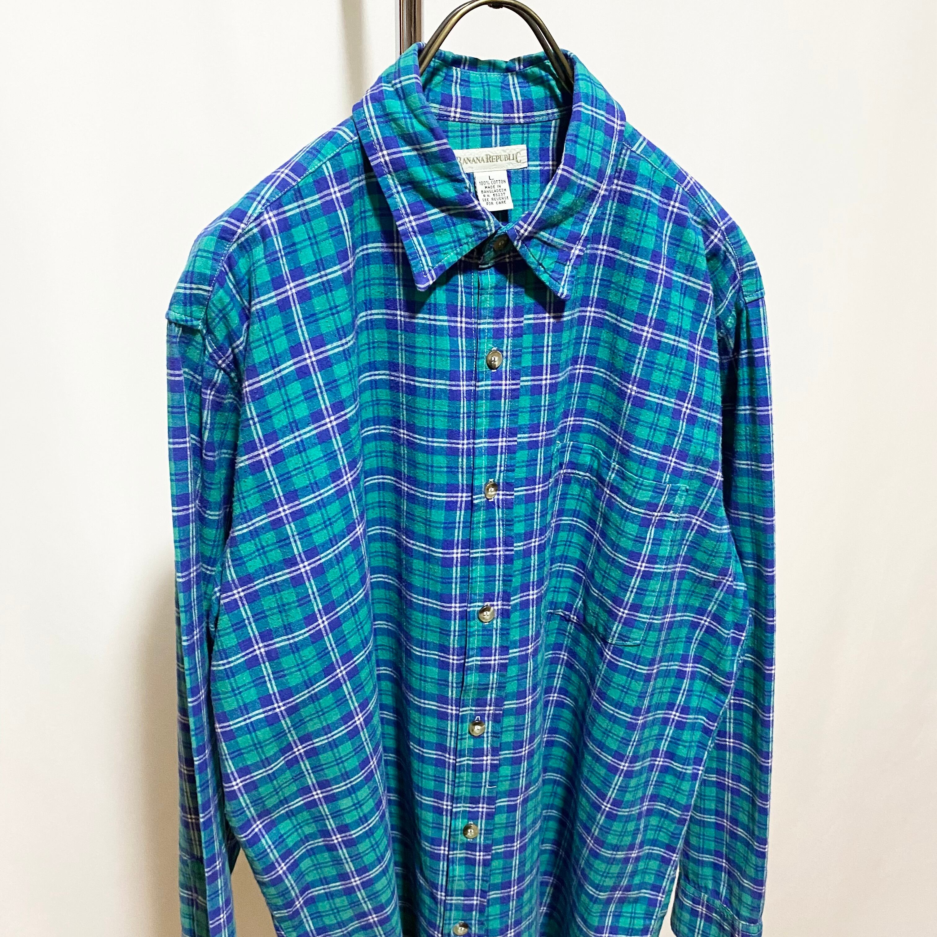 Banana Republic Light Nel CHK Shirt Green Blue 90s