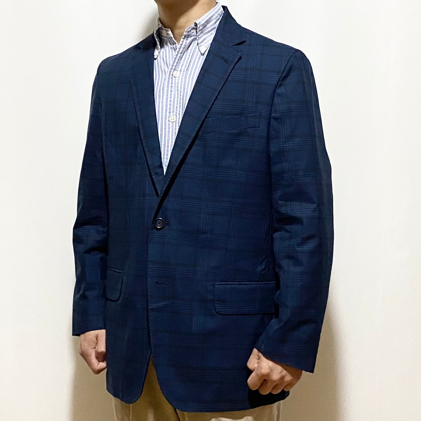 ブラックウォッチよりも濃いい感じのチェックでコットン。肩パッドが入らずナチュラルなショルダーに裏地無し。軽いけれどもしっかりさを残したテーラードです◎◎◎