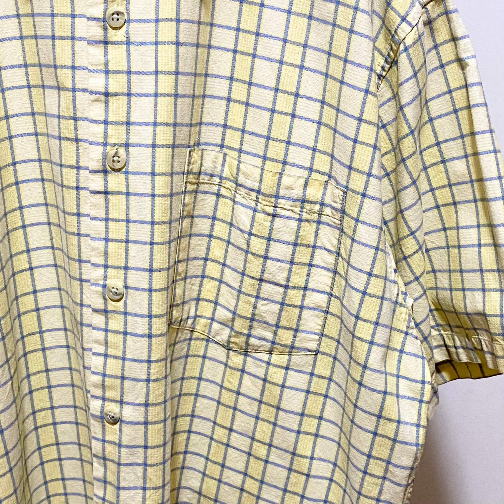 Eddie Bauer CHK Regular Collar Shirt S/S Yellow Blue 90s 00s