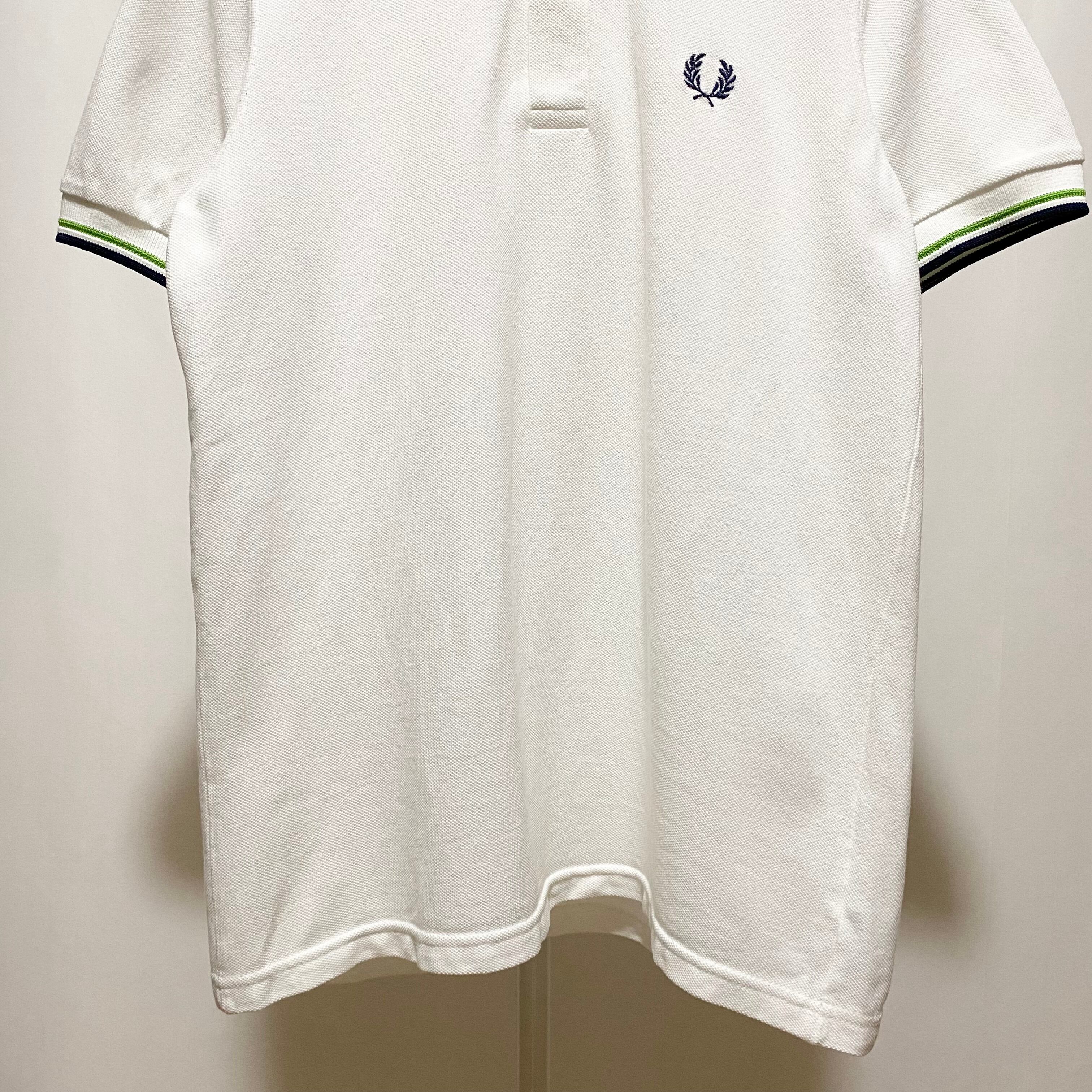 Fred Perry Lined Polo Shirt S/S White Green Made in England