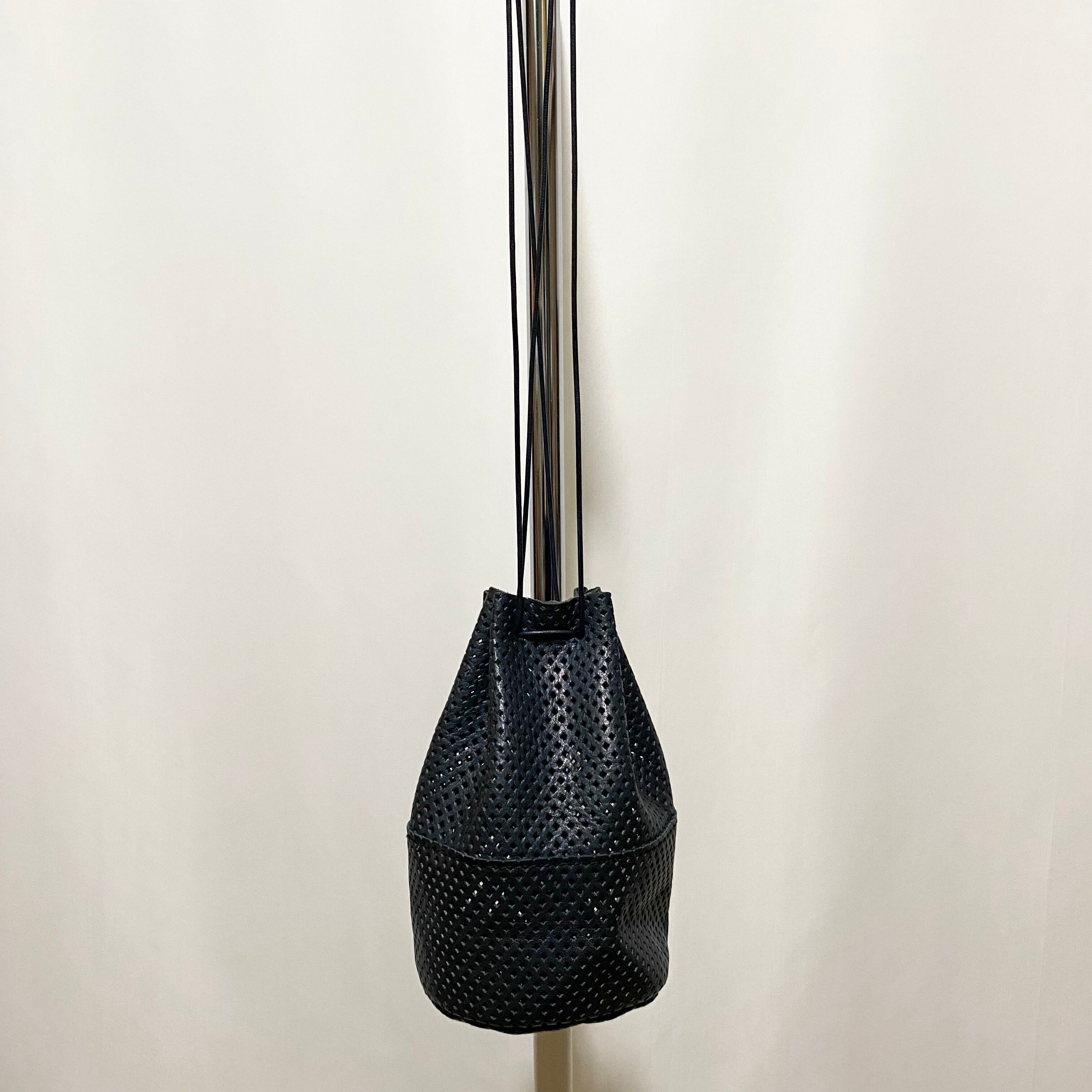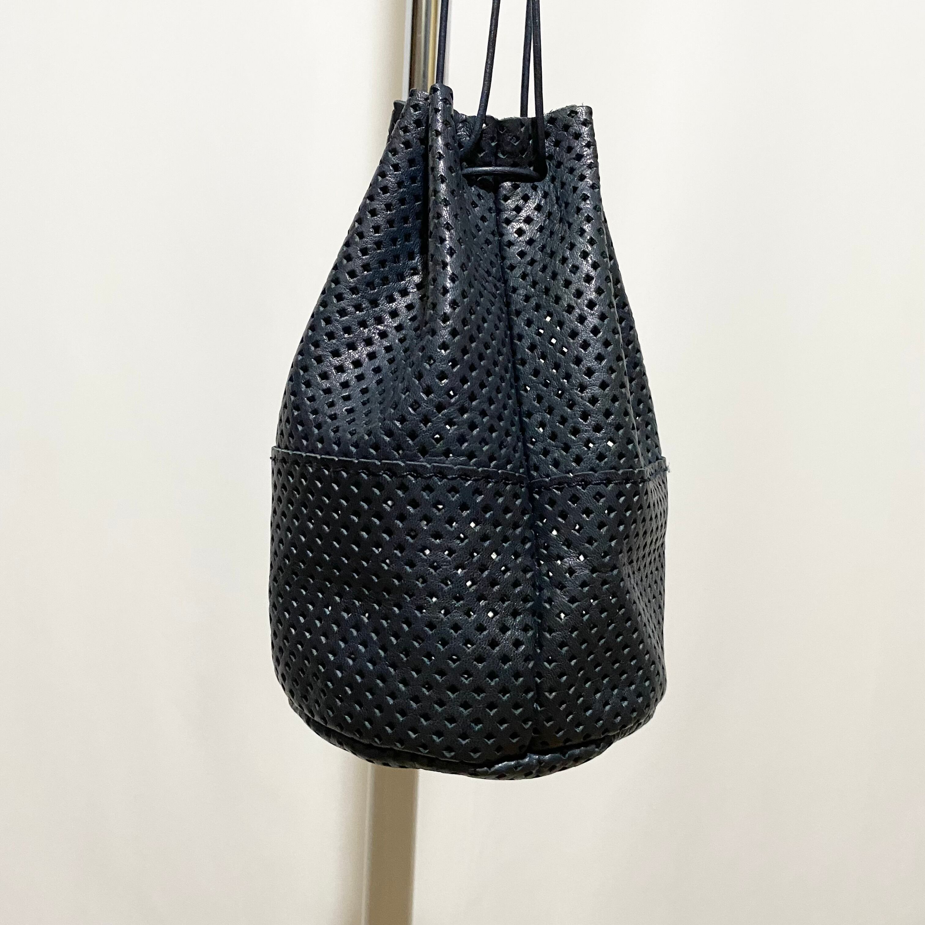 ARTS&CRAFTS Punching Horse Leather Draw Strings Pouch S Navy