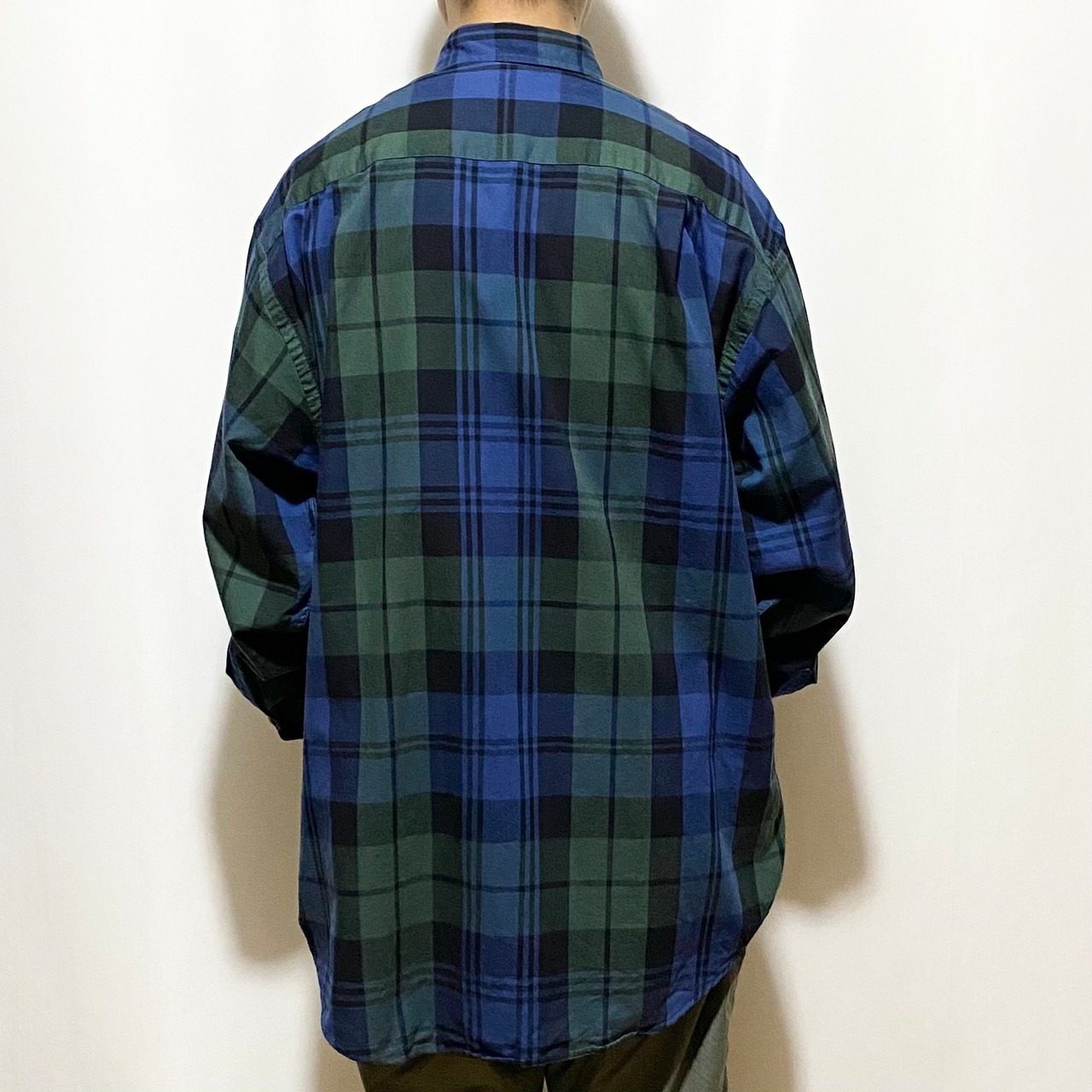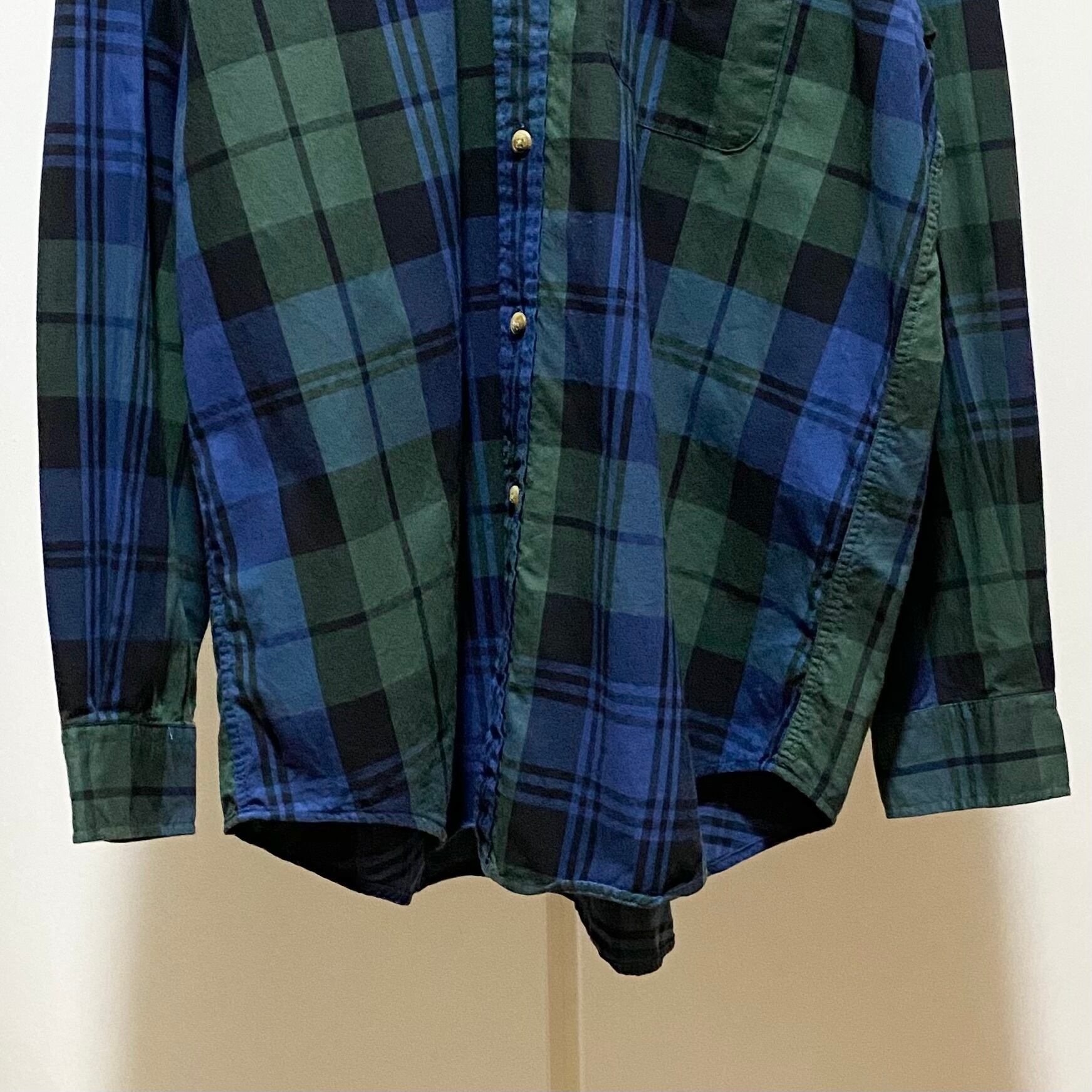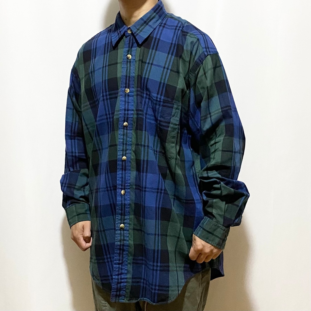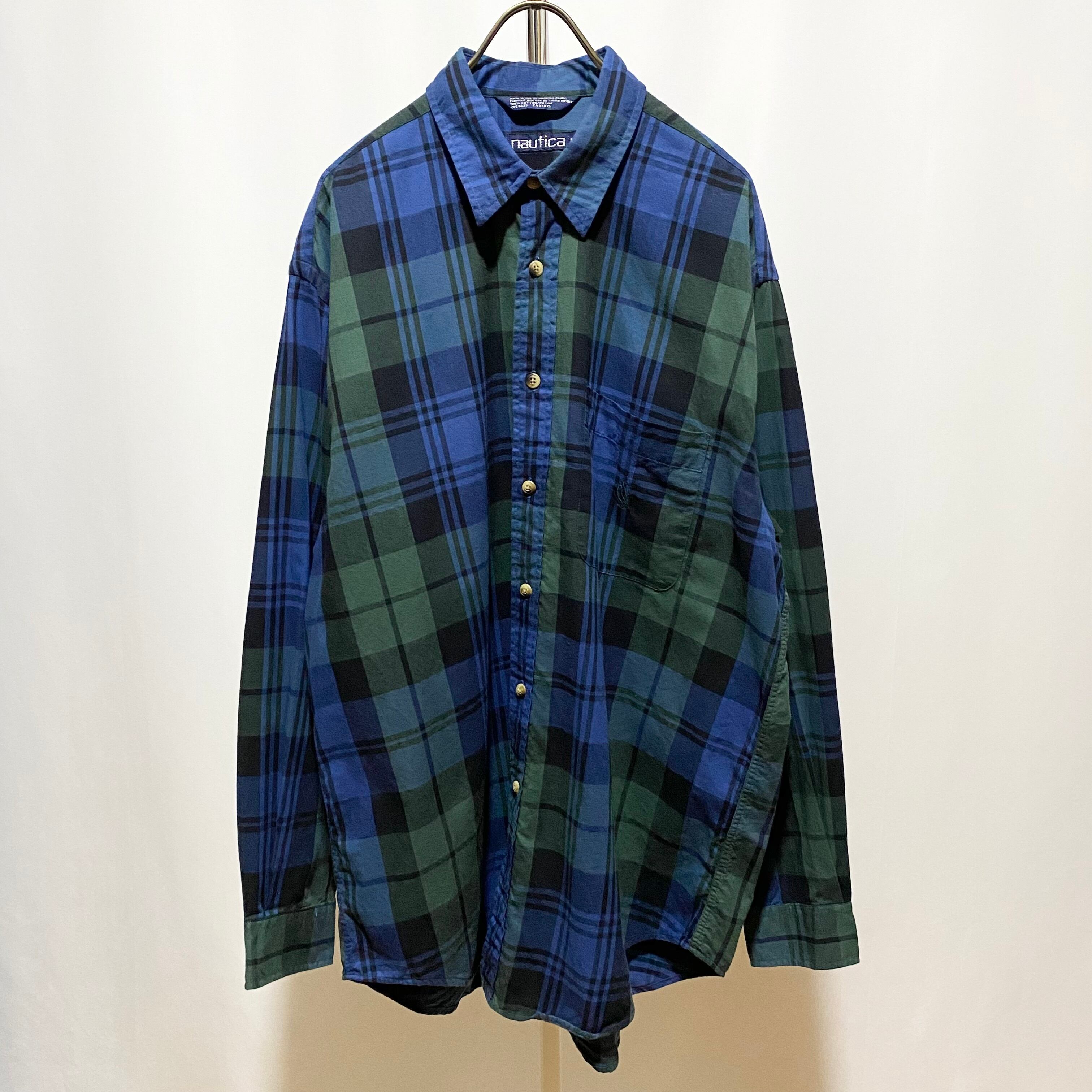 Nautica Big CHK Shirt Navy Green Made in USA 90s