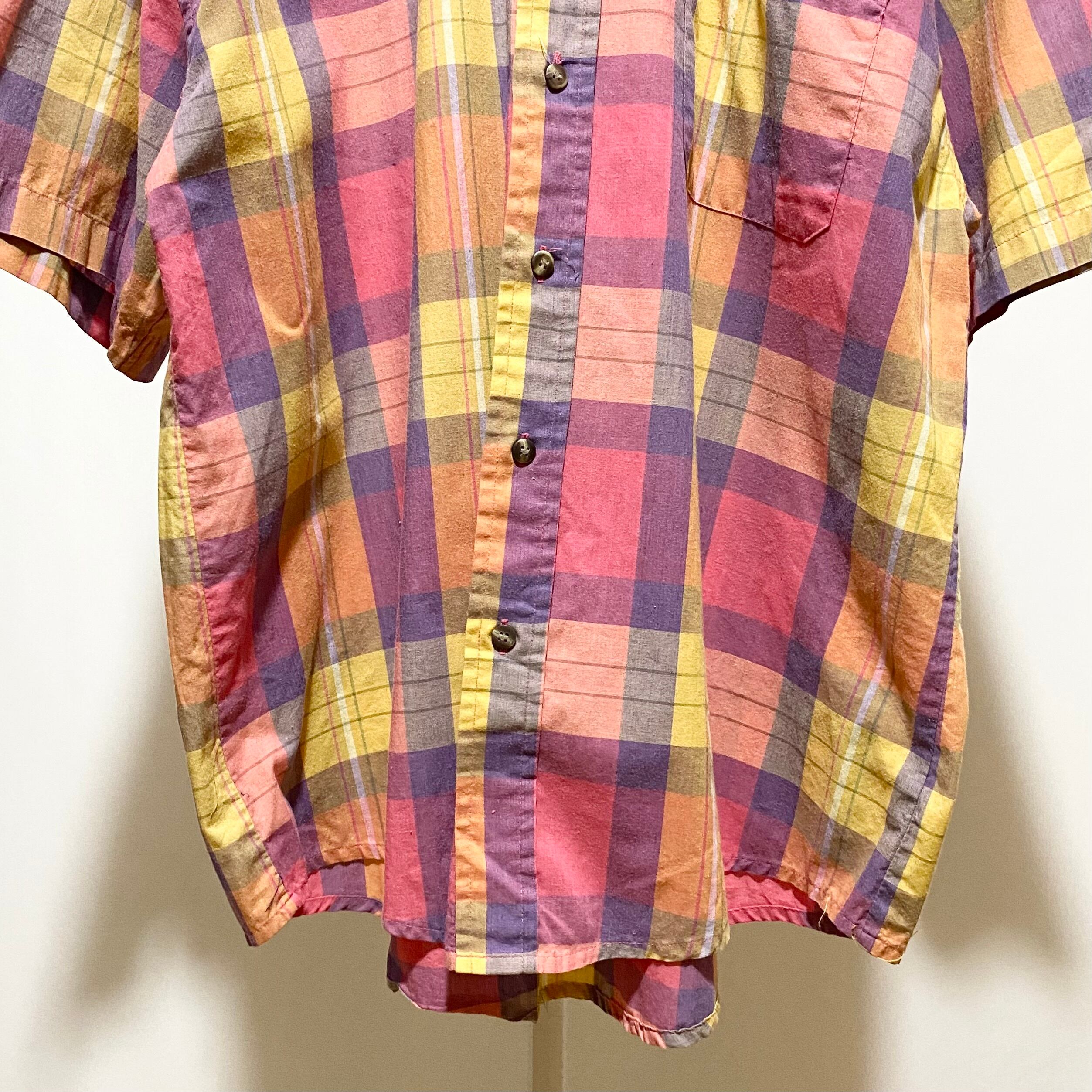 London Fog Madras CHK B.D Shirt S/S Purple Pink Yellow