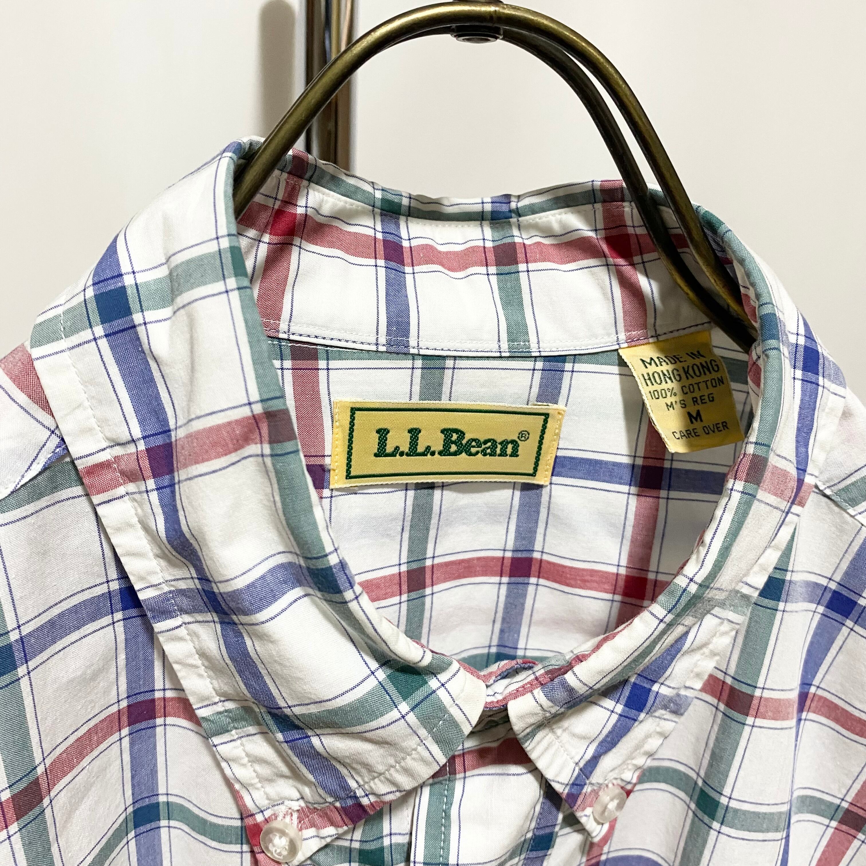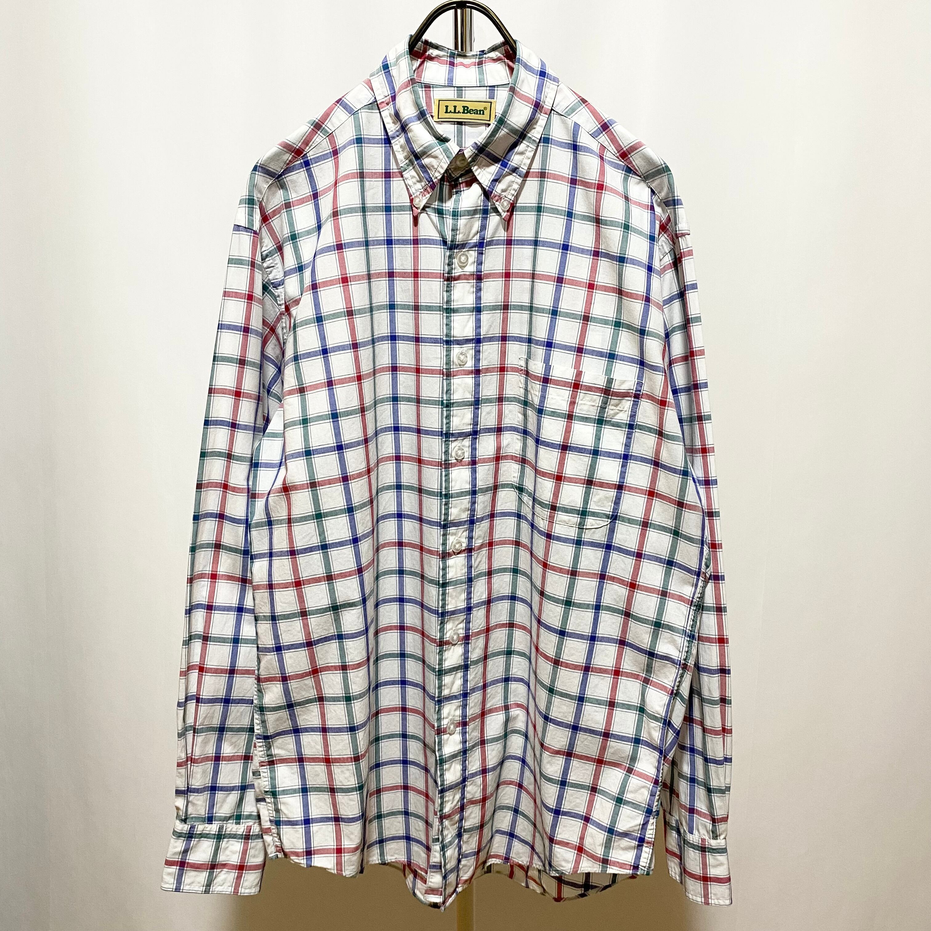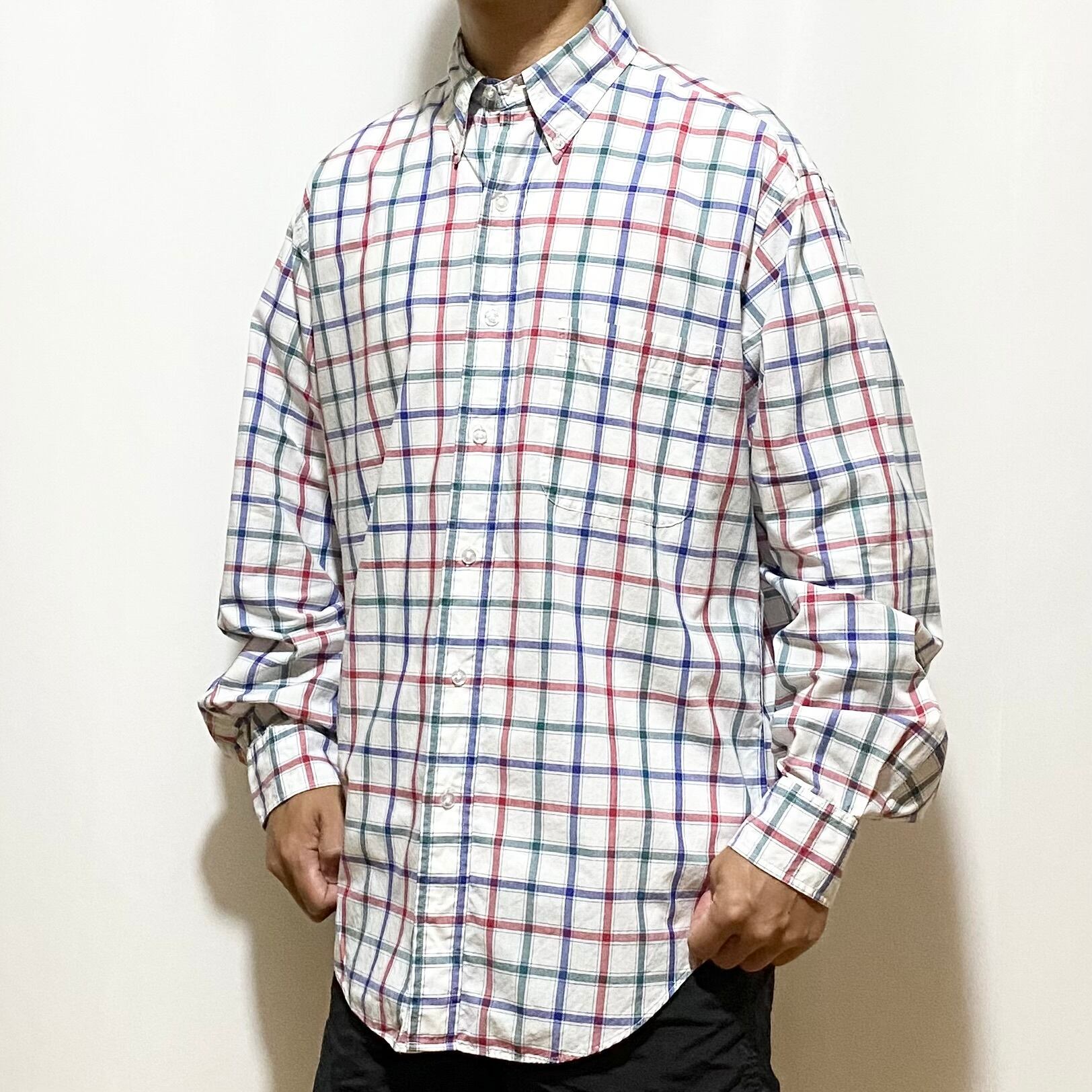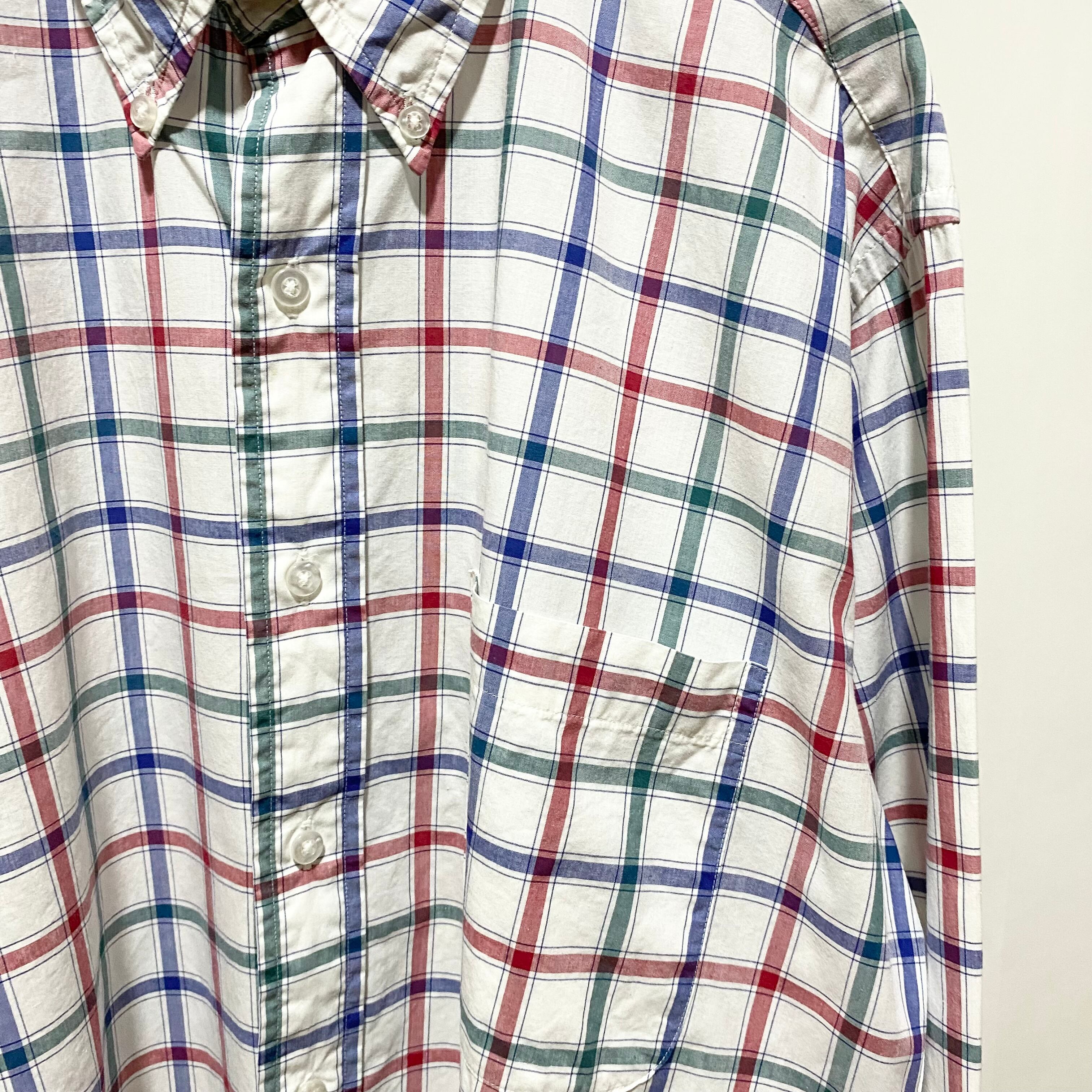 L.L.Bean CHK B.D Shirt White Blue Red Green 80s 70s