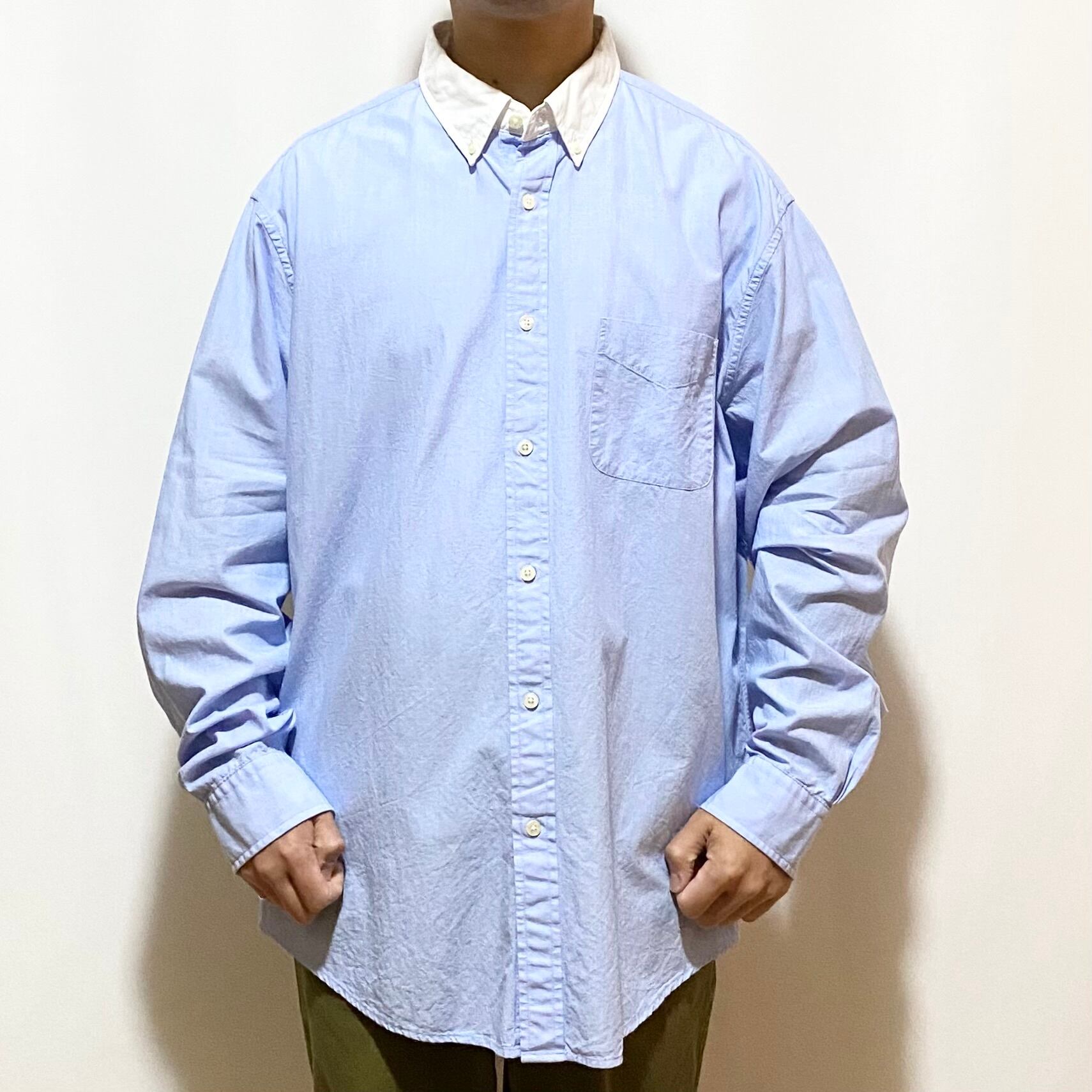 シャツが心地良い季節にサラッと着ても良いし、ビッグサイズならではのレイヤードを楽しむのも良し。意外とありそうでないクレリックタイプのボタンダウン。カフは白のブロード生地に切り替えていない辺りが個人的に好きです◎◎◎(汚れも目立ちにくいし)