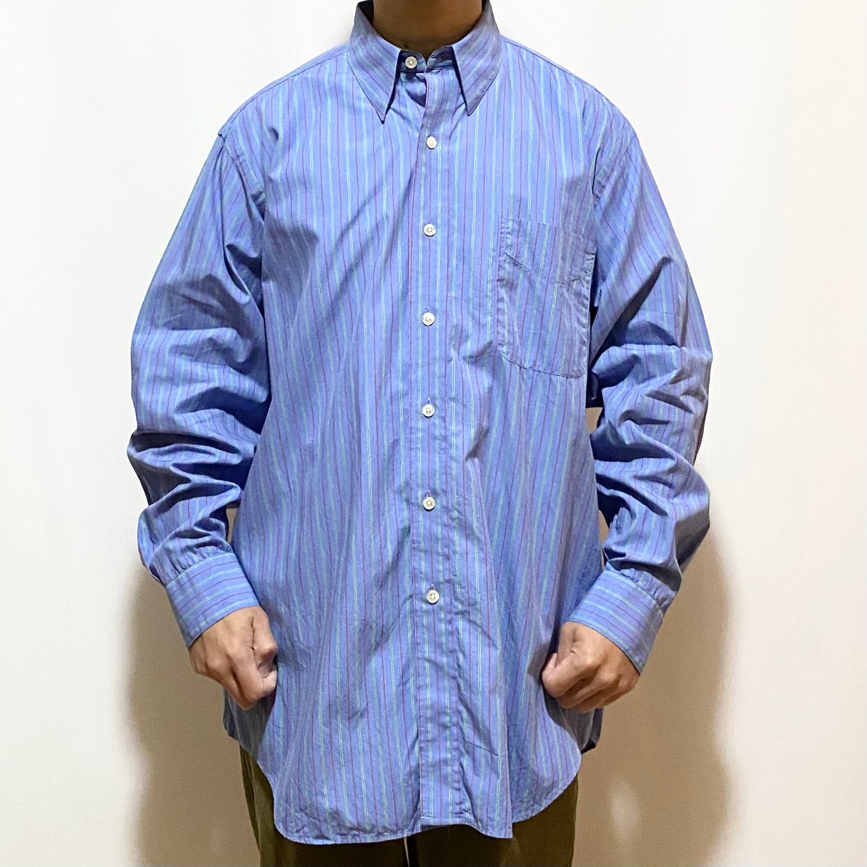 ボタンが隠れているシークレットなボタンダウンで非常にドレッシー+印象的でも悪目立ちしないストライプ&ビッグサイズのドレスシャツって事で、これは当店で言うギャルソンシャツ的な奴です◎◎◎