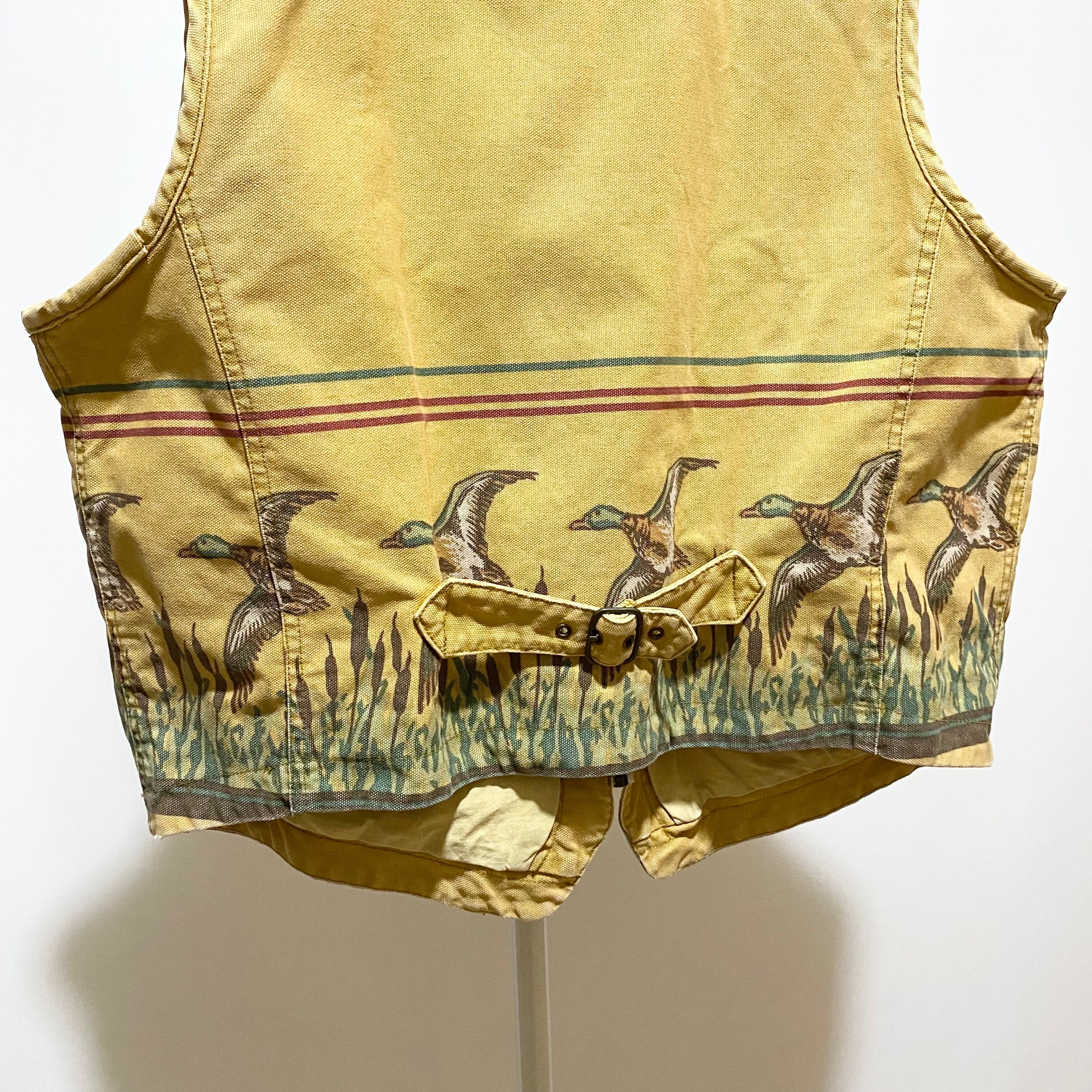 ブラウンダック生地にハンティング的なモチーフのプリントを大胆に施したこのベスト◎◎◎