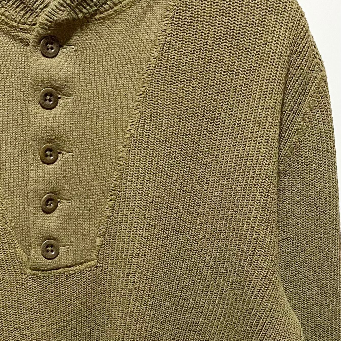 そもそもミリタリーの実物のニットっていうのは往々にしてヘヴィーですし、ヴィンテージで探すとなるとコンディションの問題が有ります。上質な素材云々では無く暖かさ重視の傾向があるので、重くて硬くて厚い(暑い) 物がほとんど。日本のような気温気候でファッションとして楽しむならば、チクチク感も皆無なコットンベースのこんなニットが最高◎◎◎