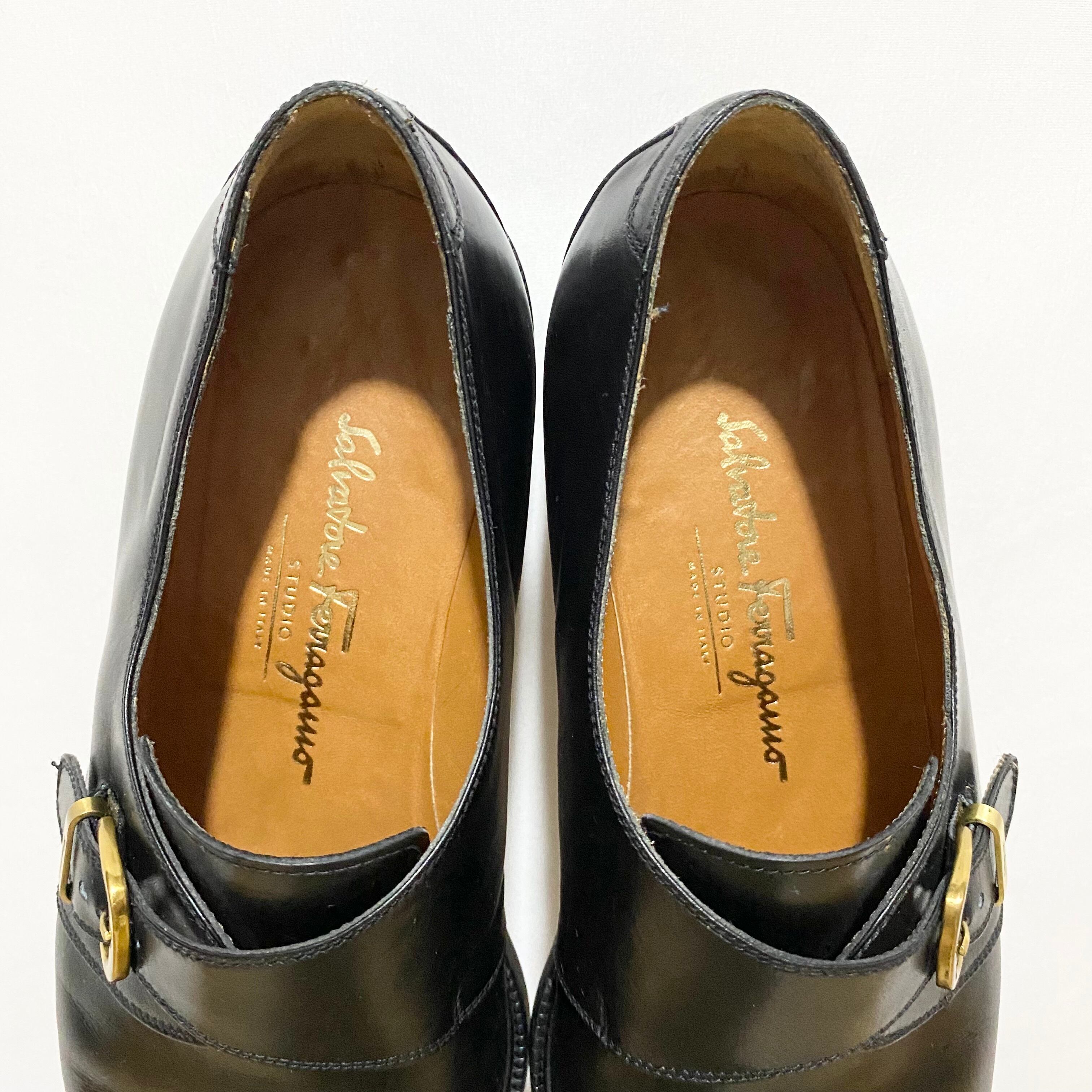 Salvatore Ferragamo Studio Monk Strap Black Gold Made in Italy