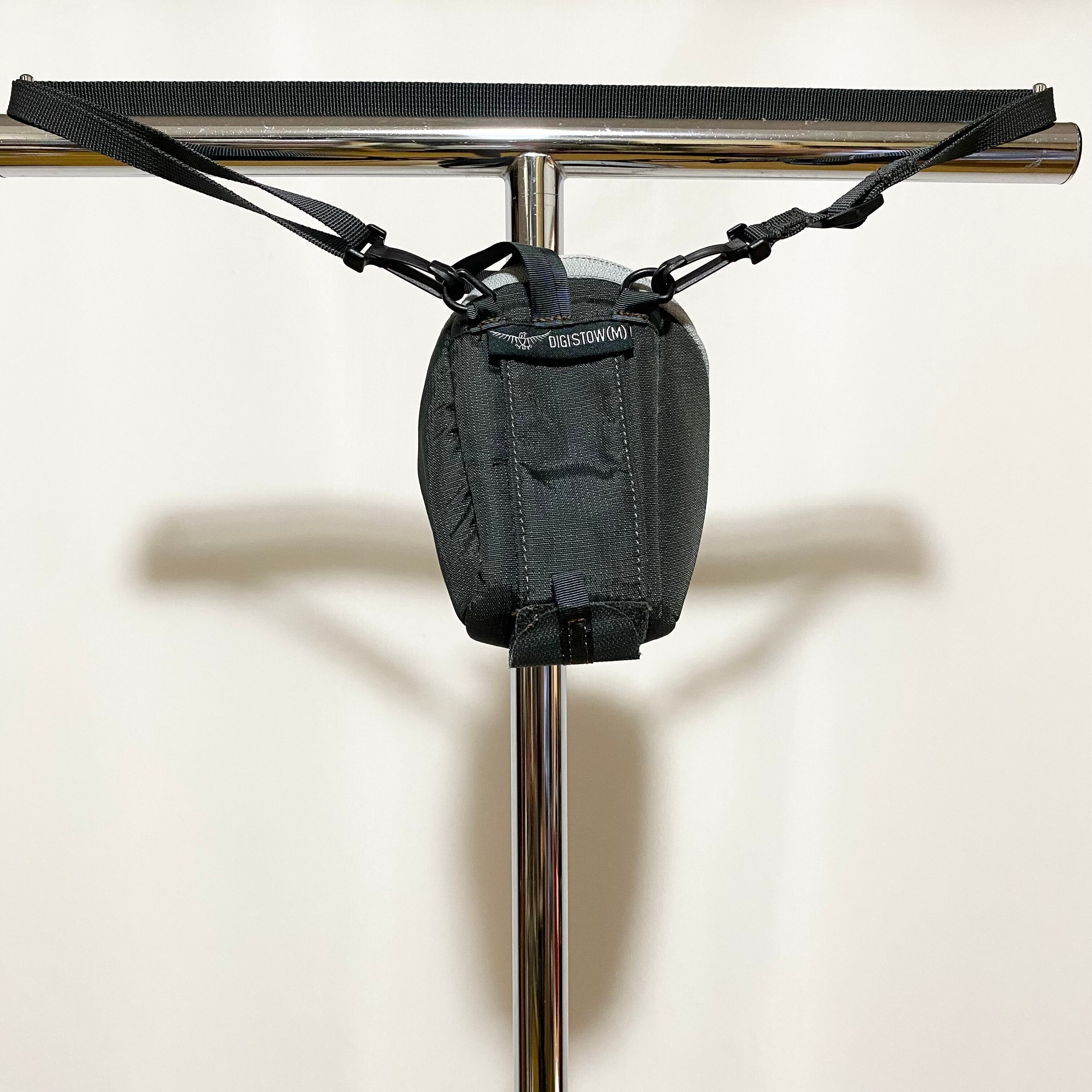 めっちゃ小さいサイズなのでiPhoneは入らない 笑 でもしっかり内張りがしてあって立体的な作り。後ろのベルクロで鞄やベルトに取り付けも出来る。申し訳程度の華奢なストラップもコレはコレでイイ感じ。