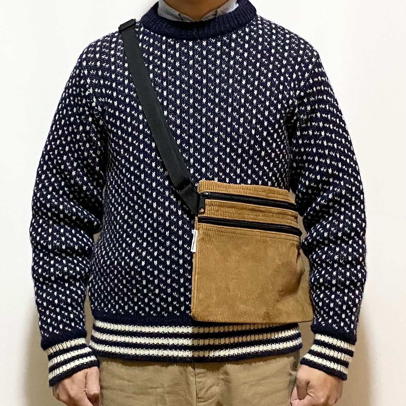 安心安定のアメリカ製で温かみのある中畝なコーデュロイのこのサコッシュ。