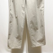お馴染みのワイドなシルエットにほんのちょいテーパードが効いたシューズの上にギリ乗る感じのこのタイプ。この手のは昔から100%使えるチノーズだと思っております。