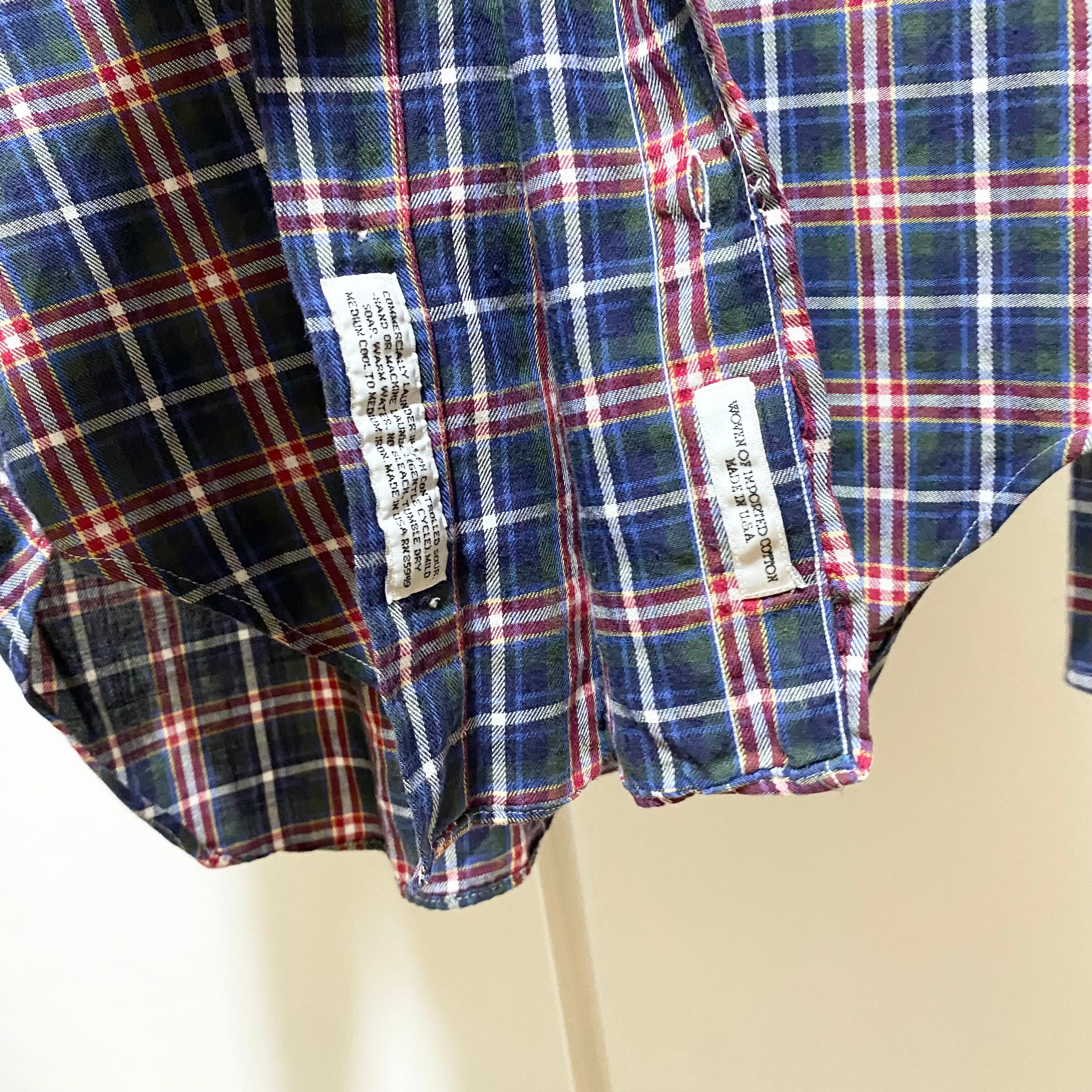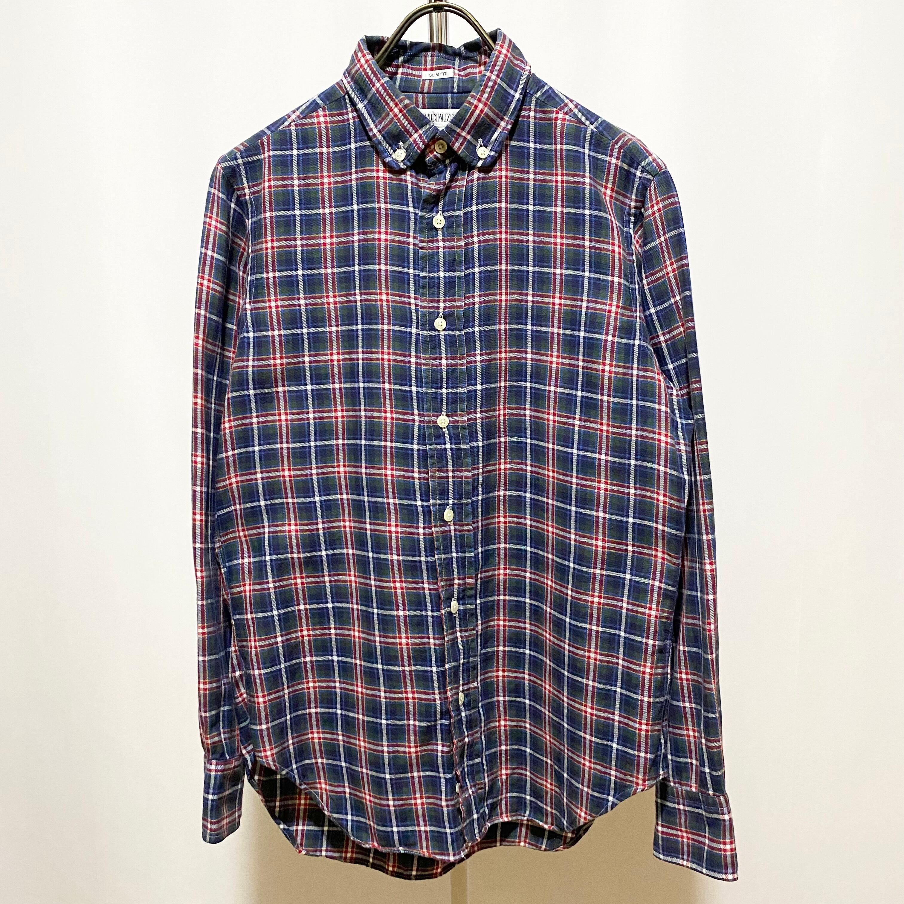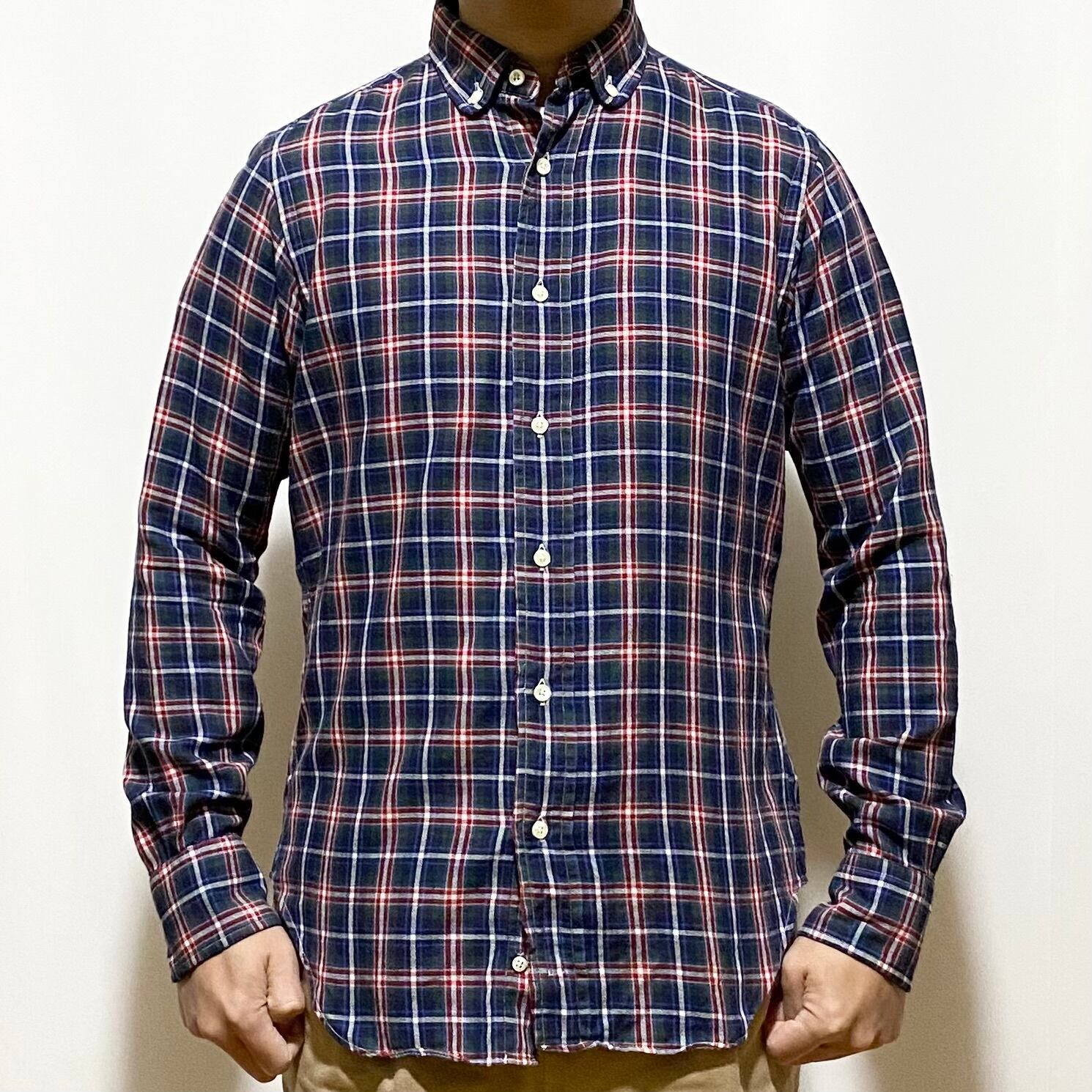 スタンダードかつ少し落ち着いた色味のタータン系のチェックは起毛感も少なくサラッとした印象。そしてスリムなシルエットはトムブラウン以降のアメリカ製のボタンダウンって感じがします◎◎◎ アームが特徴的に細く、腰回りはかなりスッキリ。